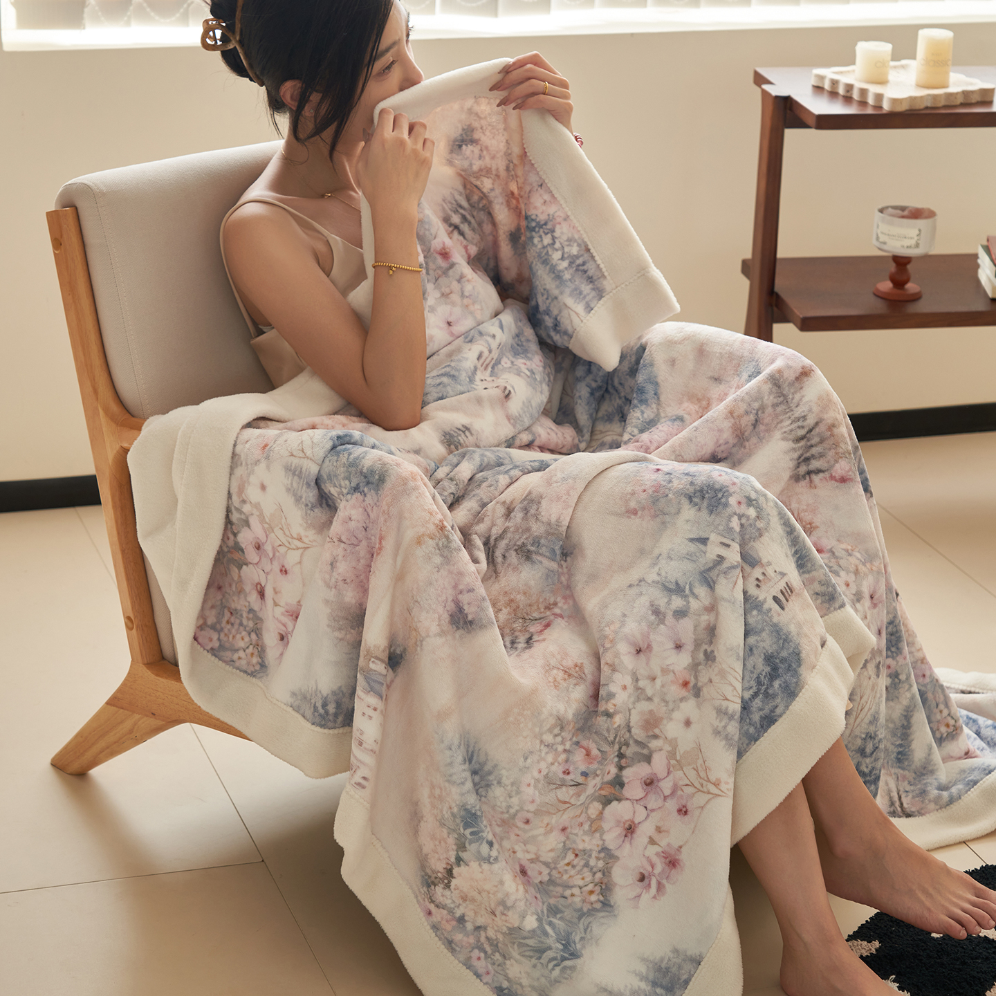 寐绸家纺 2025新款牛奶绒数码印花毛毯 数码毛毯-芊芊如意
