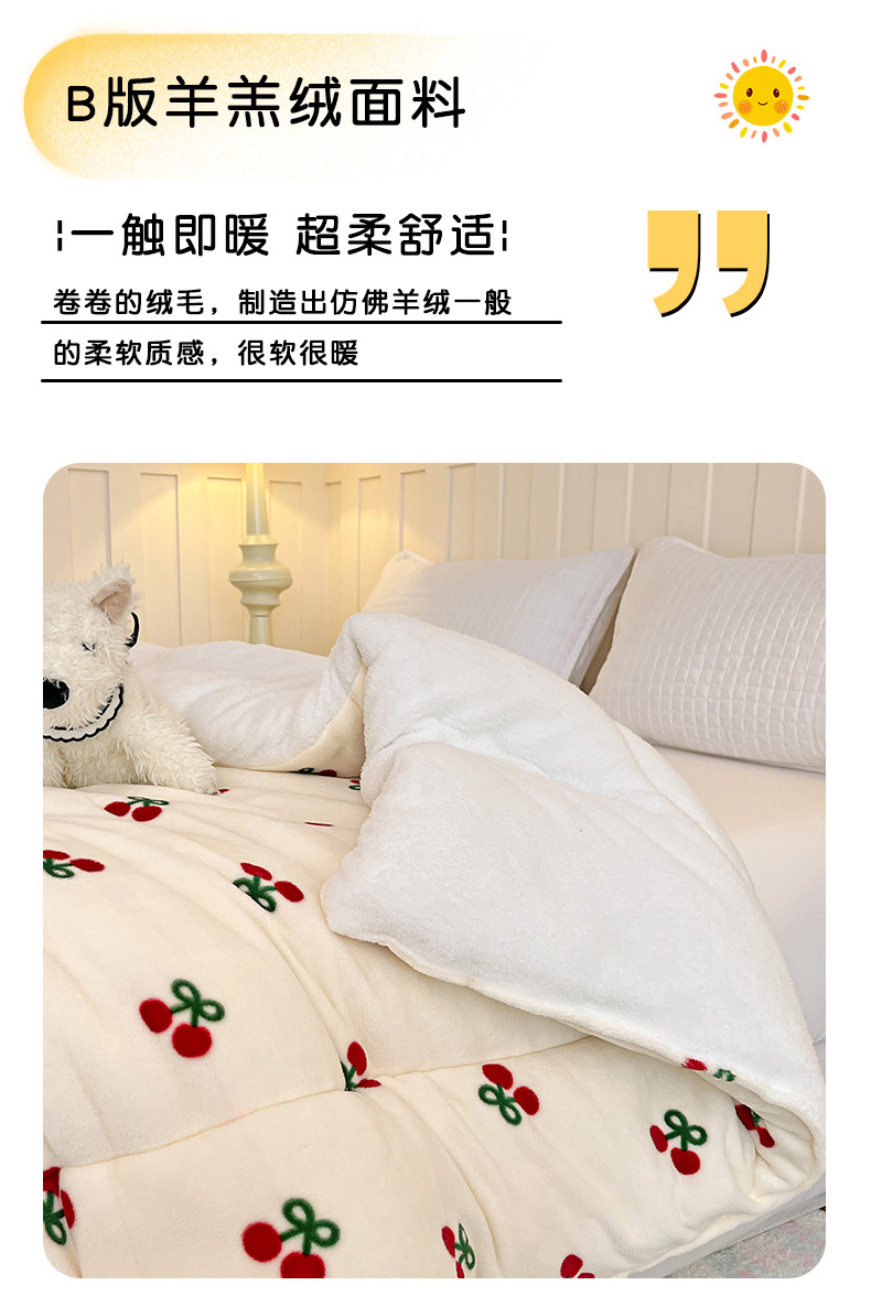 当前位置: 91家纺网 > 商品网购 > 被子 > 冬被 > 铺尚美家纺 2025新款牛奶绒羊羔绒印花清新款冬被子被芯 草莓软心