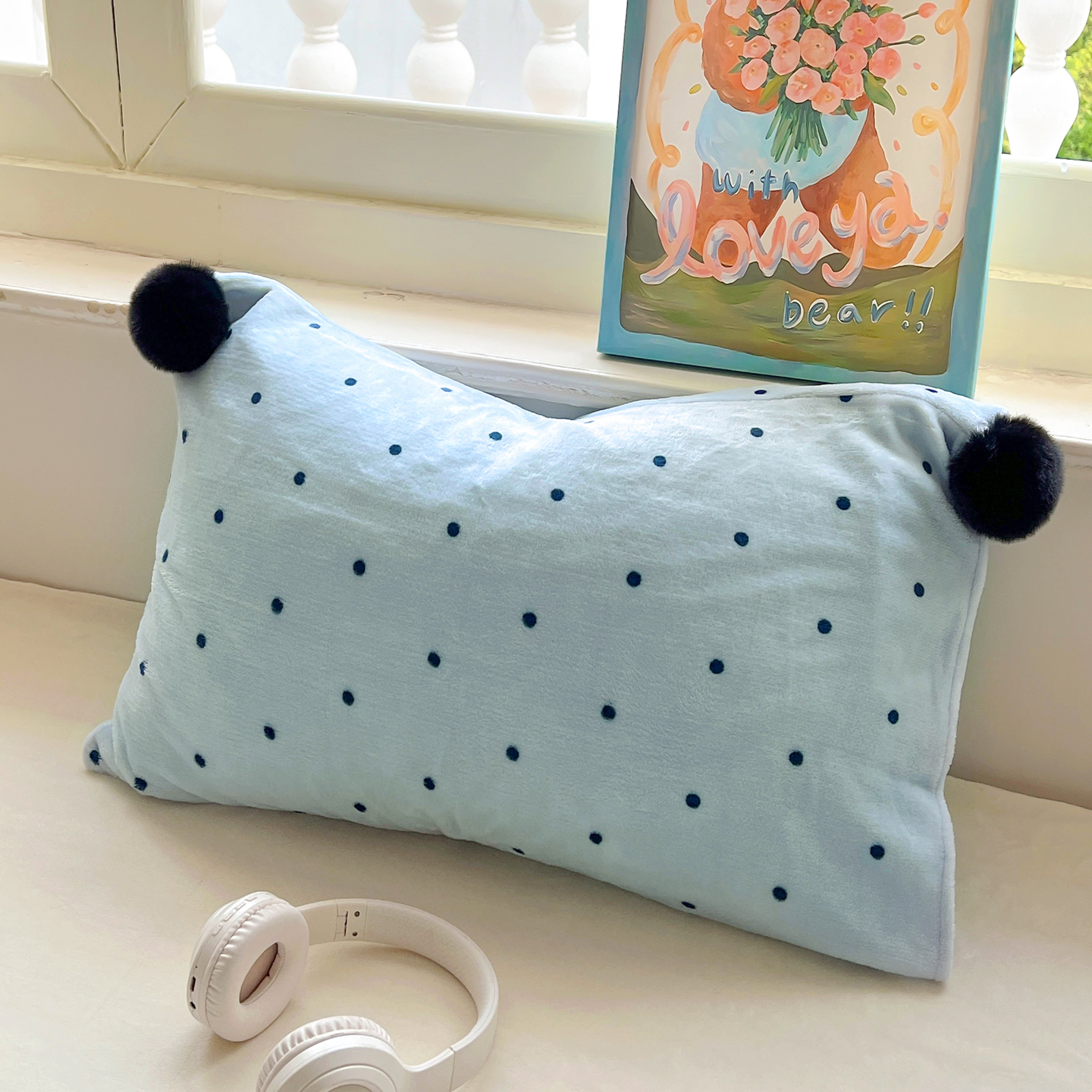 商品名称:丽涵家纺 2025新品全工艺牛奶绒印花枕套-波点球球款 波点-蓝色