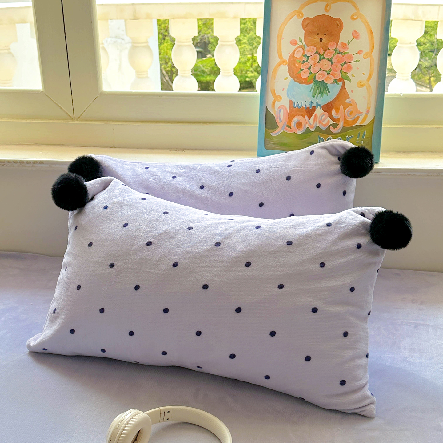 (总)丽涵家纺 2025新品全工艺牛奶绒印花枕套-波点球球款,波点-奶白,波点-粉色,波点-蓝色,波点-紫色