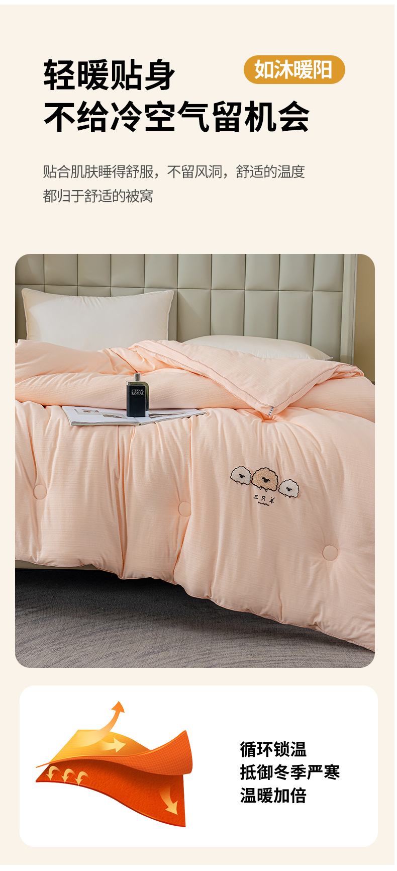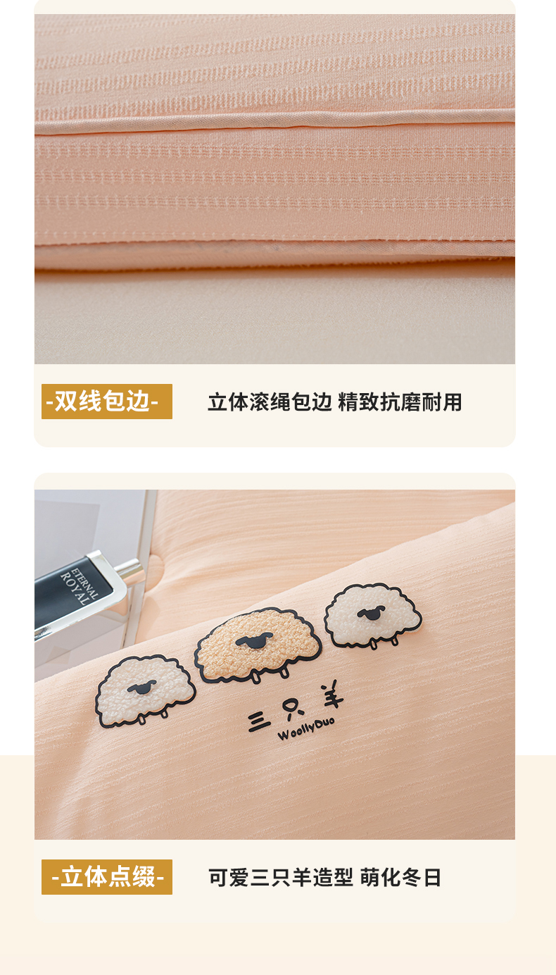 • 91家纺网 家纺一手货源 找家纺 蓝冰家纺 2025新款羊提花被被子被芯 三只羊-米白色