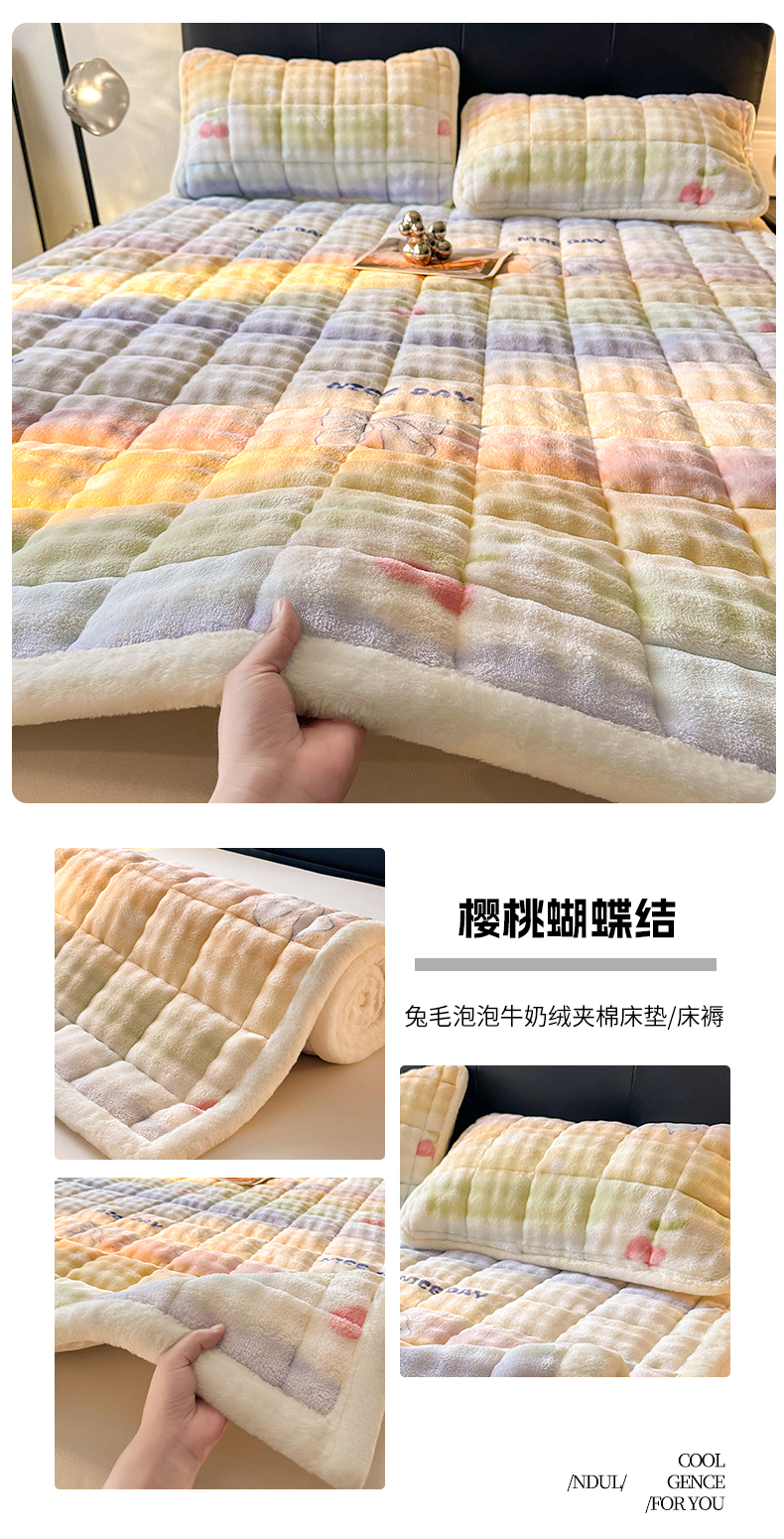 当前位置: 91家纺网 > 商品网购 > 床垫/床褥 > 普通床垫 > 梵朴 2025新款牛奶绒泡泡兔毛绒床垫学生宿舍床褥子床护垫(大床款印花系列)-场景二 爱心蝴蝶结绿