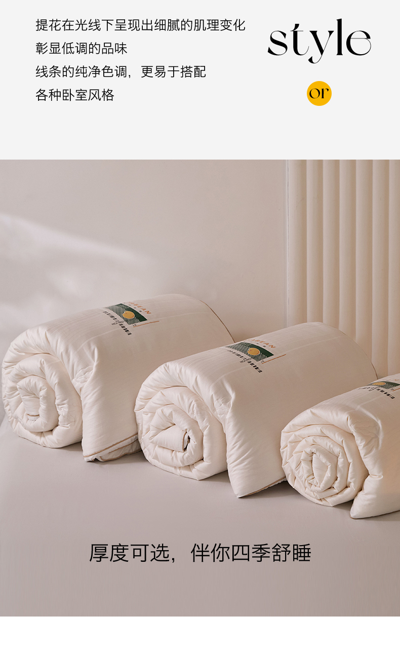 • 91家纺网 家纺一手货源 找家纺 (总)头等舱 2025新款天棉缎大提花55莱赛尔大豆7A抗菌秋冬被(模特图),卡布丽娜,慕斯,配包装