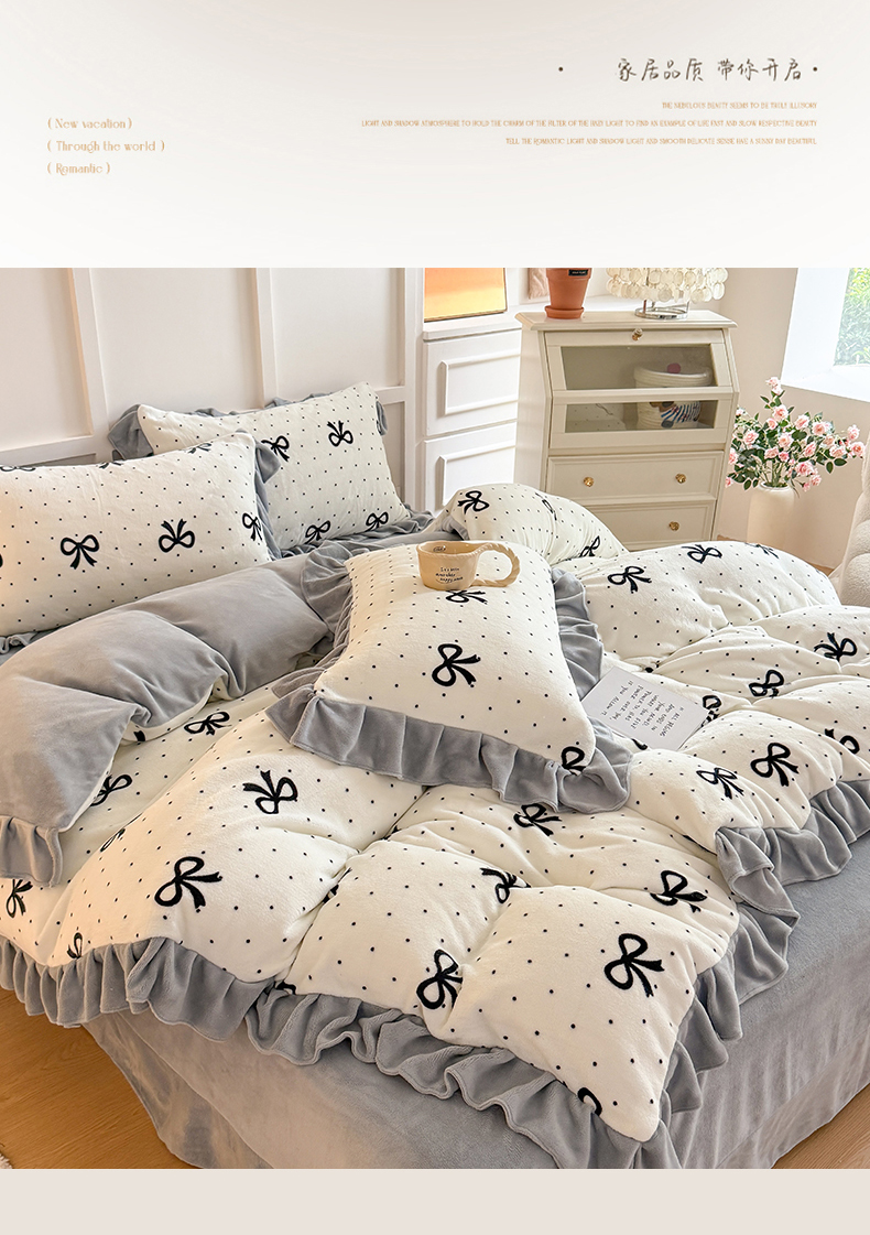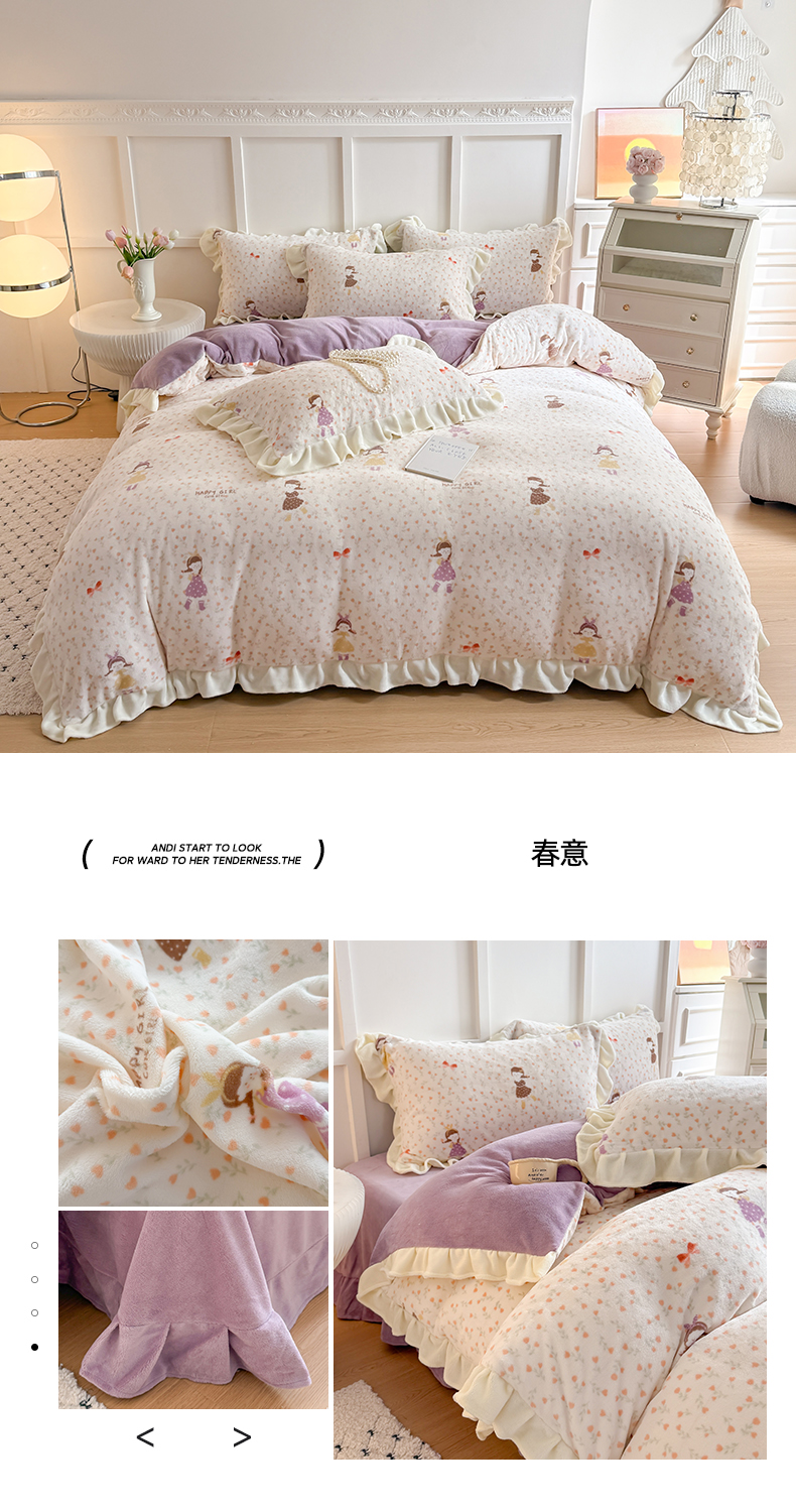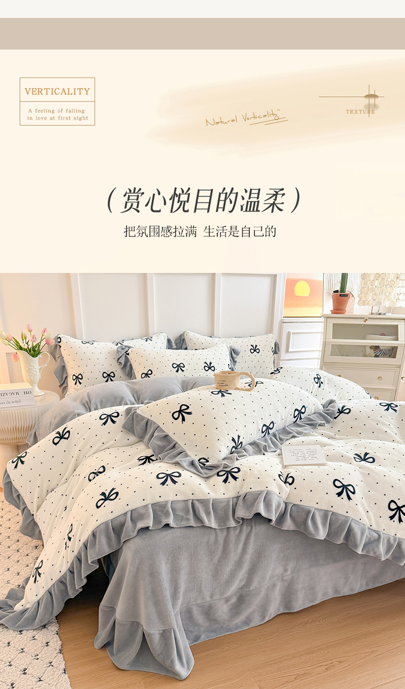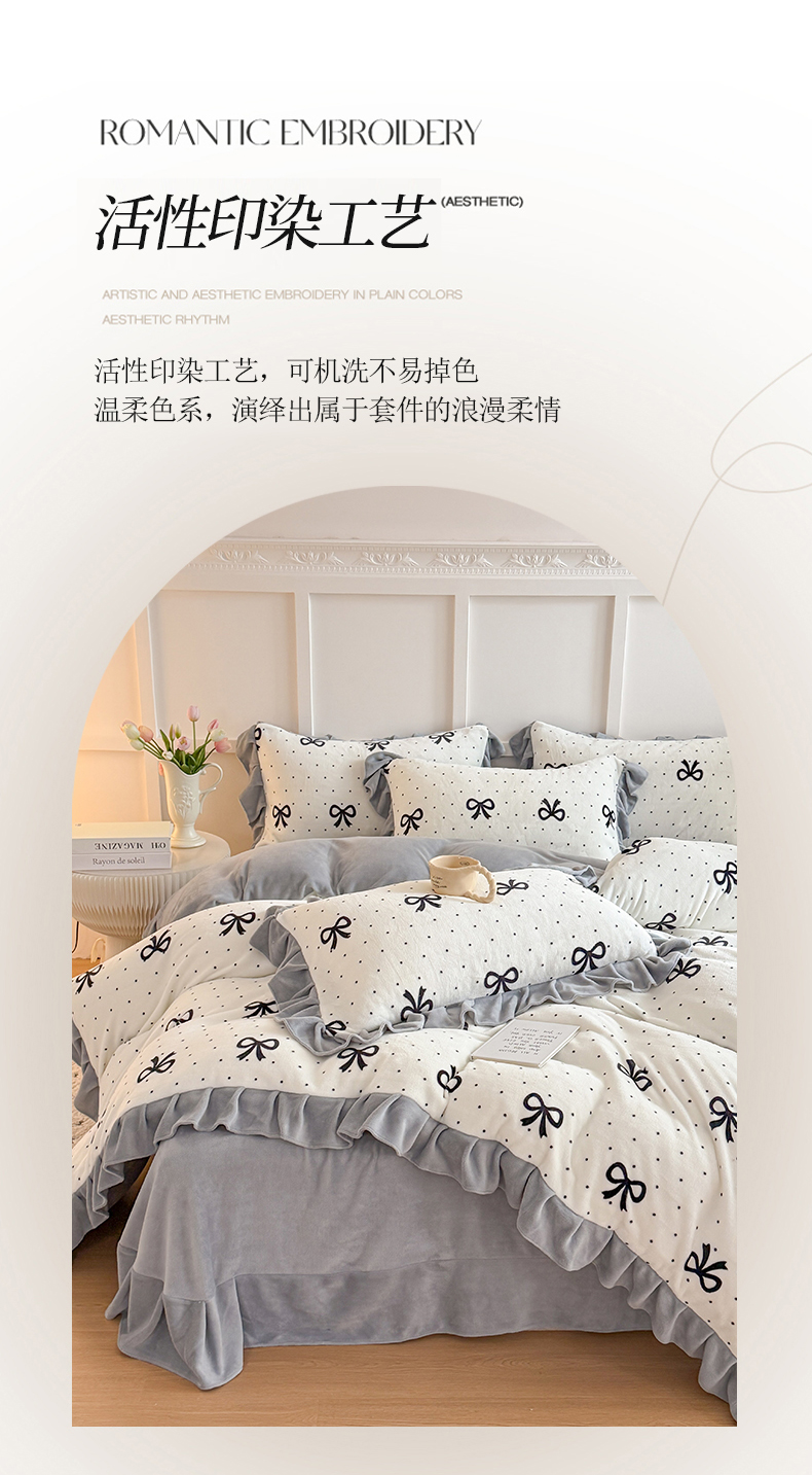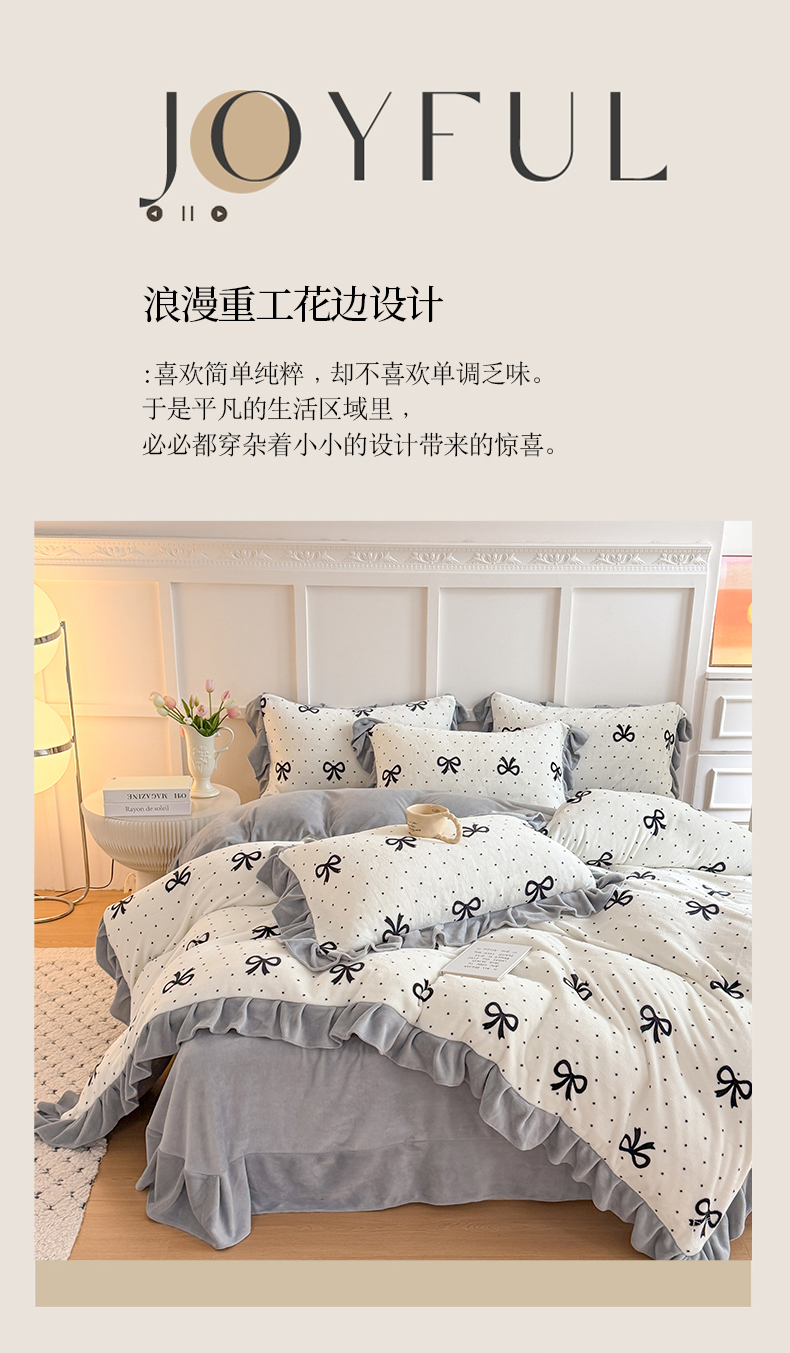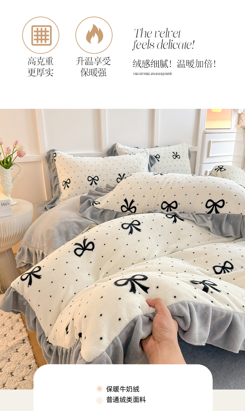 当前位置: 91家纺网 > 商品网购 > 床品套件 > 四件套 > 牛奶绒四件套 > 艾特你 2025新款200g全工艺牛奶绒花边款四件套吊边床单 花边绒-简单格调