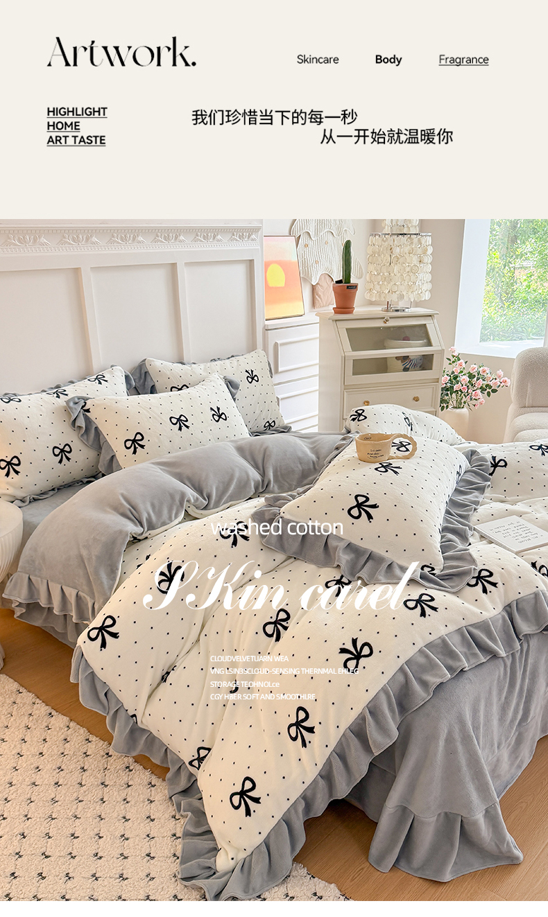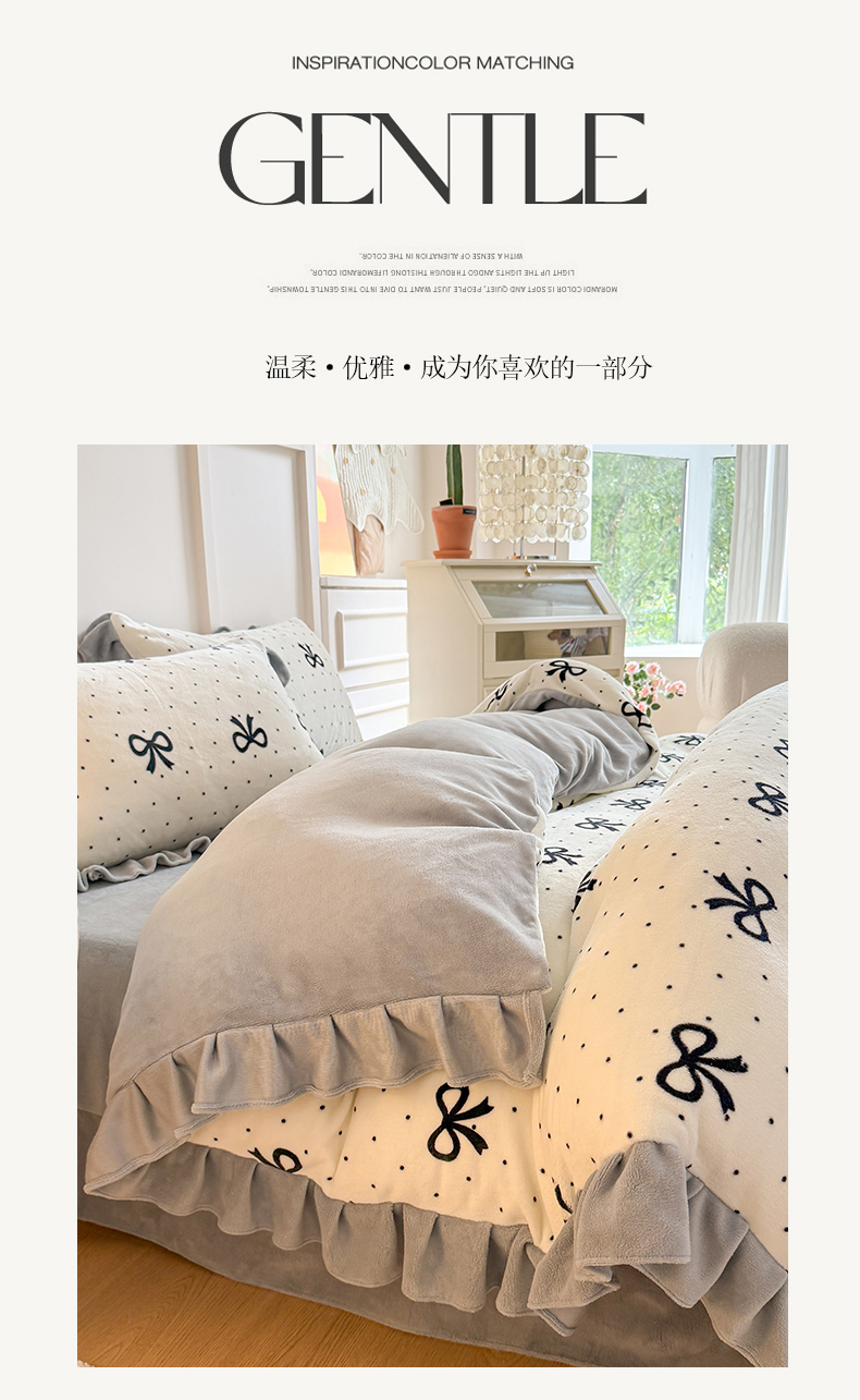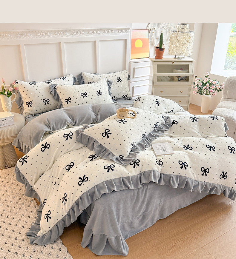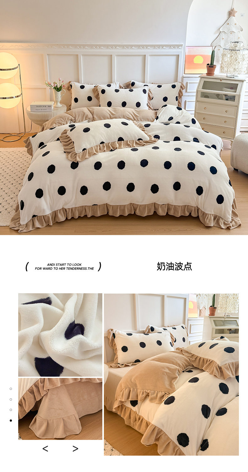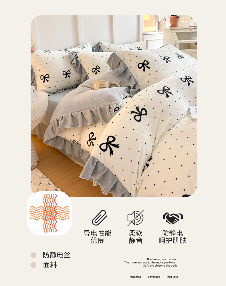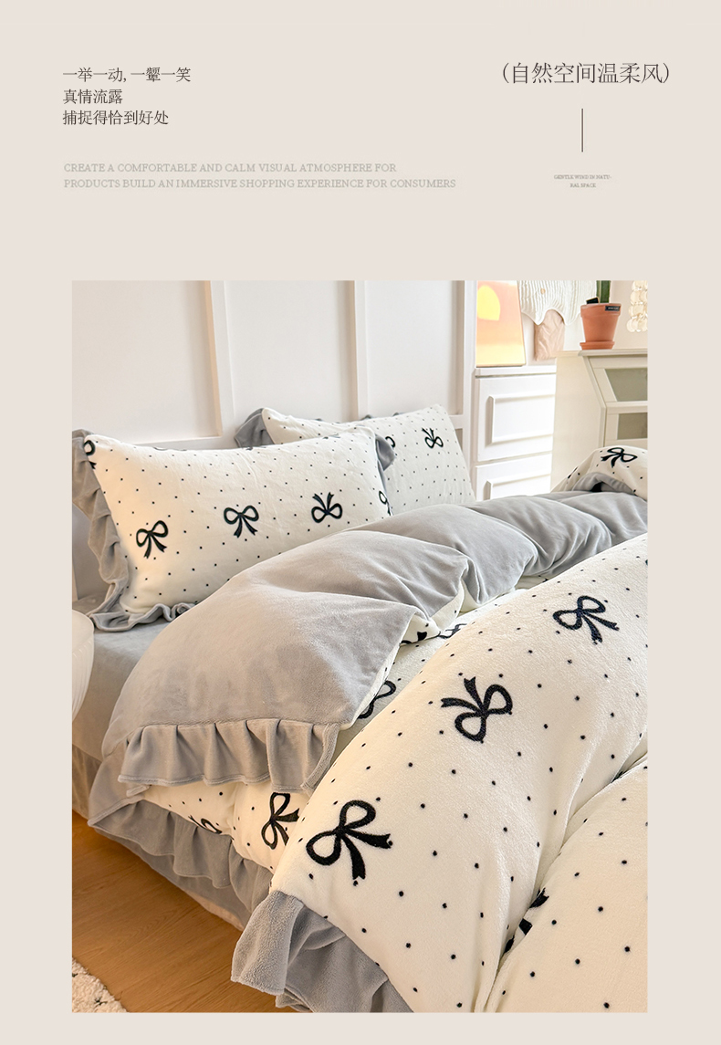 当前位置: 91家纺网 > 商品网购 > 床品套件 > 四件套 > 牛奶绒四件套 > 艾特你 2025新款200g全工艺牛奶绒花边款四件套吊边床单 花边绒-简单格调