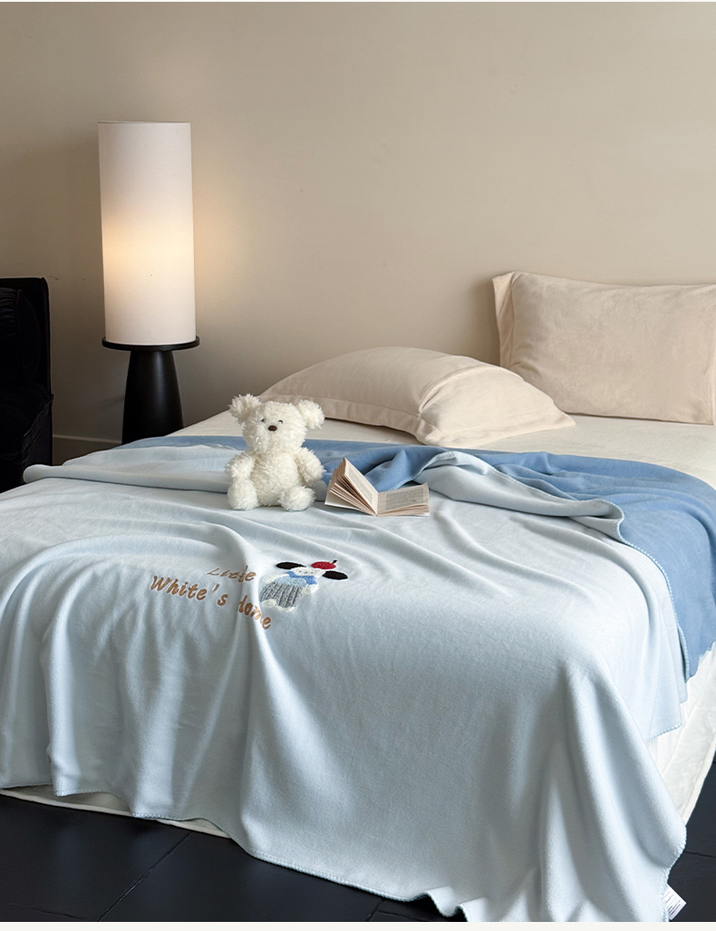 云栖家居 2025新品双层加厚高克重消光沙发毯仿羊绒纯色刺绣盖毛毯毯子 小狗查理-蓝
