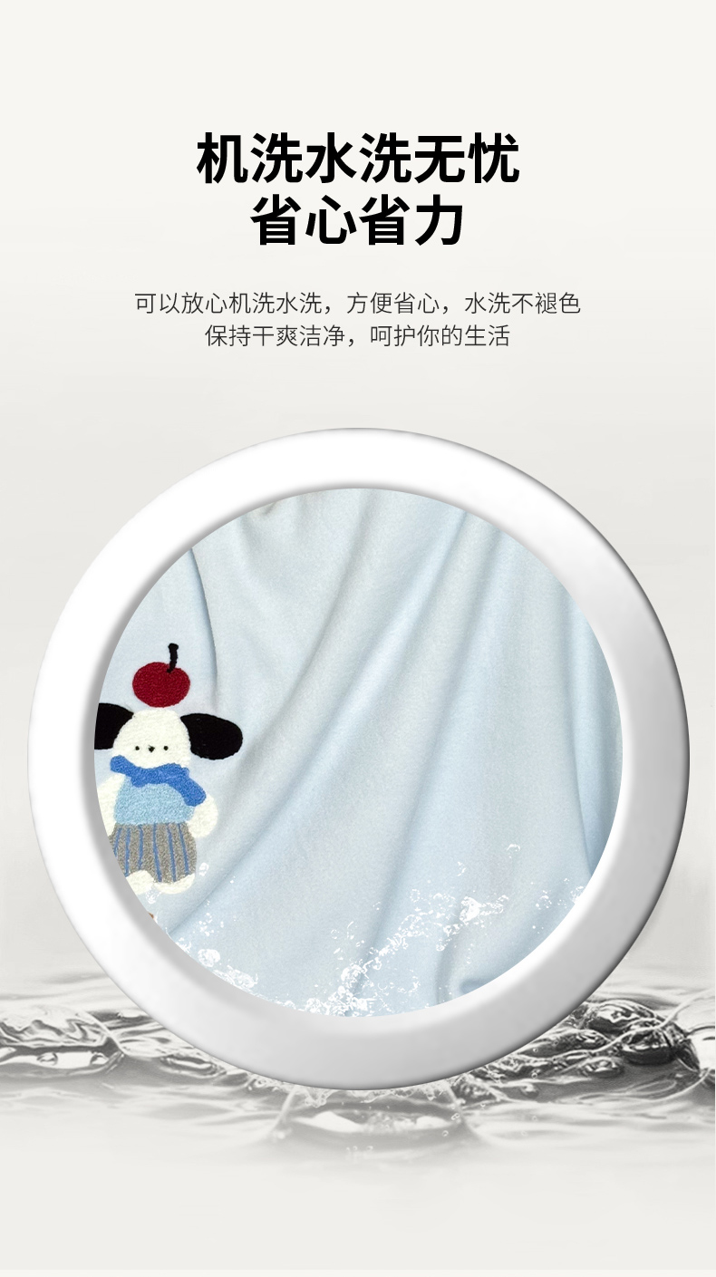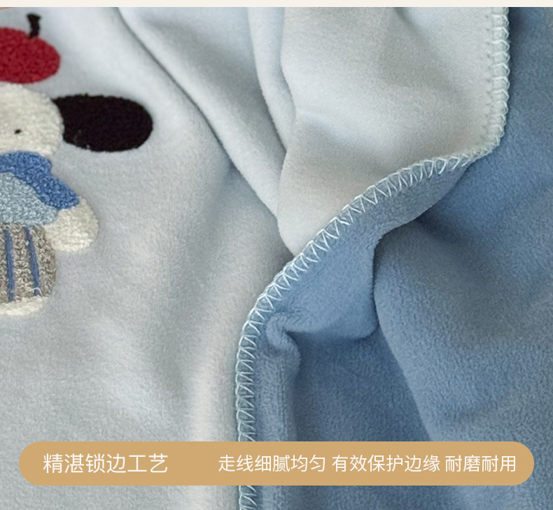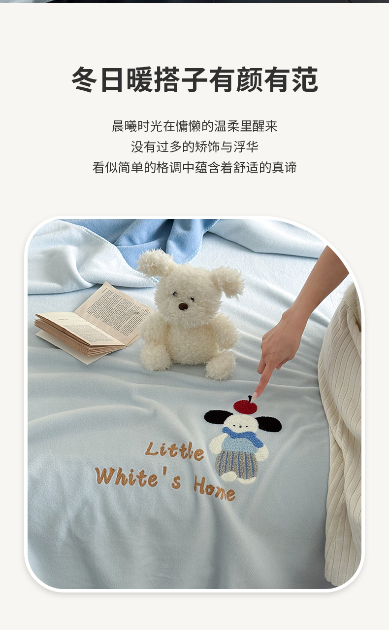 商品名称:云栖家居 2025新品双层加厚高克重消光沙发毯仿羊绒纯色刺绣盖毛毯毯子 小狗查理-蓝