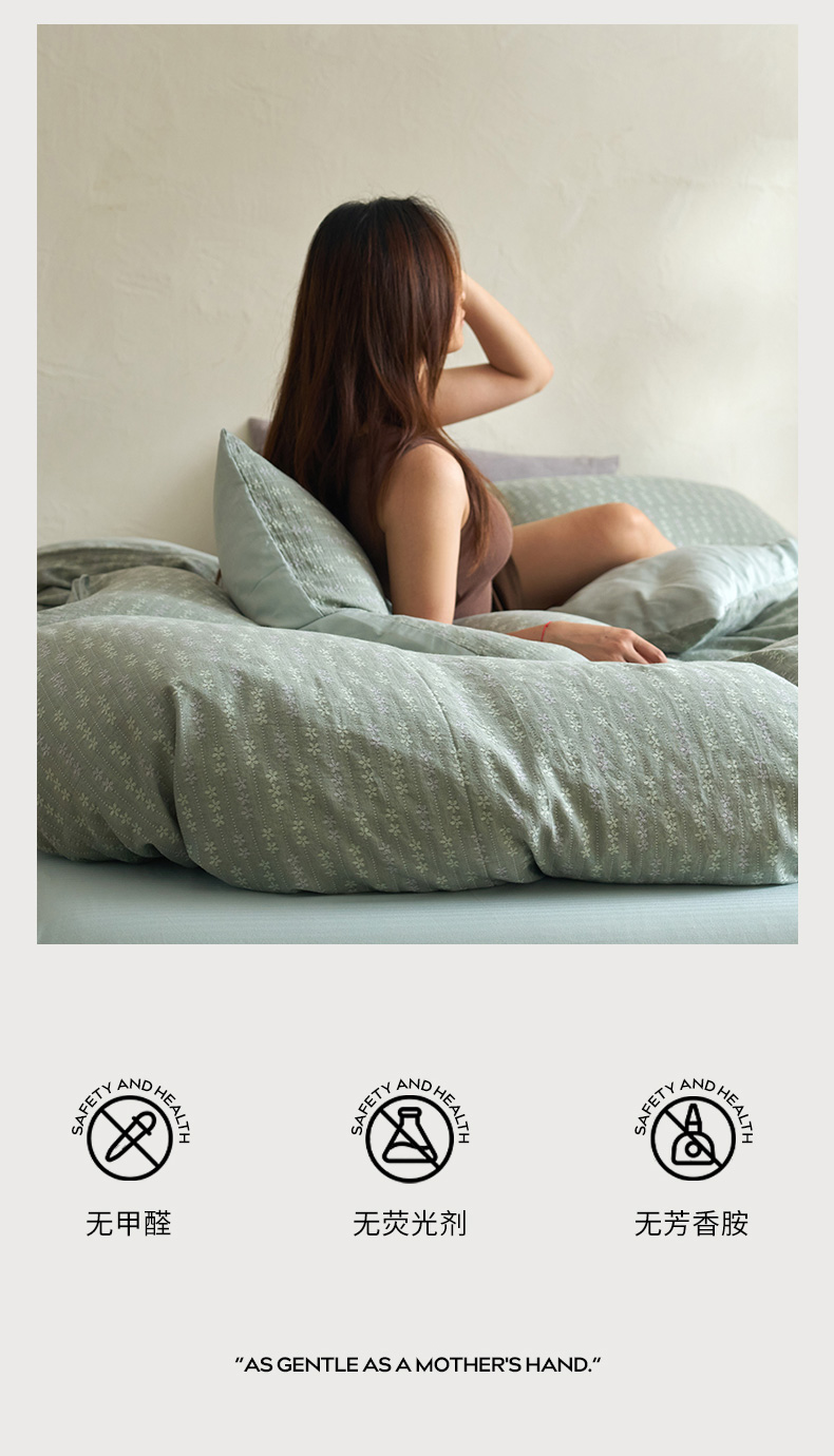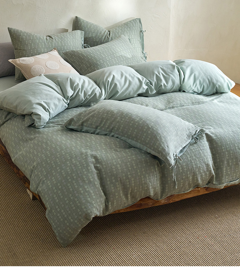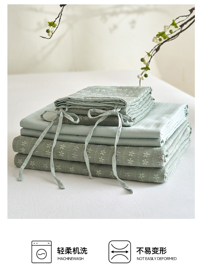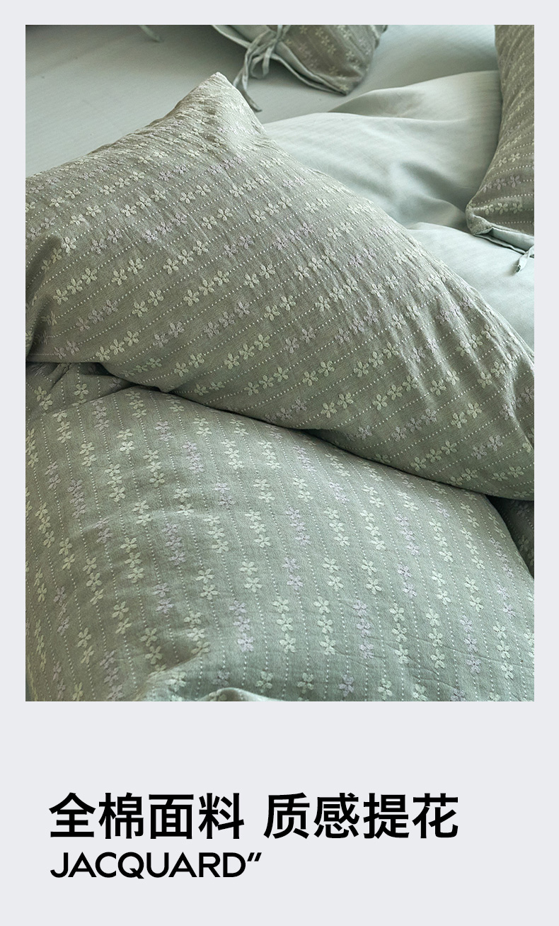 久典家居 2025新款全棉色织提花系带款四件套-花锦系列(买家秀找客服) 花锦-绿