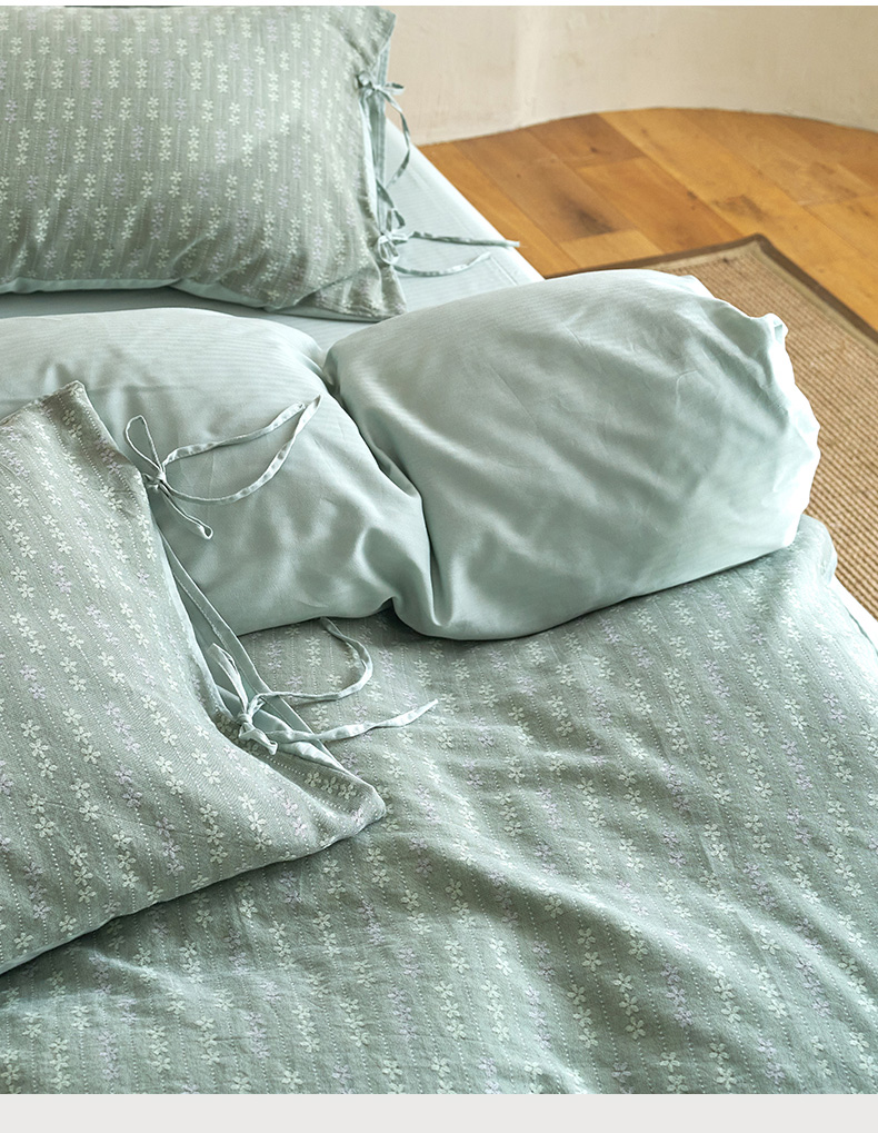 商品名称:久典家居 2025新款全棉色织提花系带款四件套-花锦系列(买家秀找客服) 花锦-绿