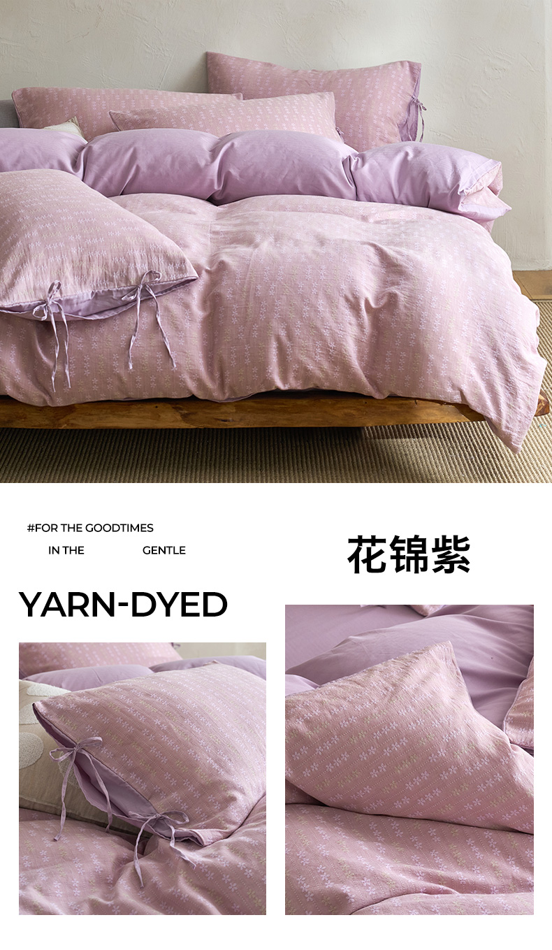 (总)久典家居 2025新款A类全棉色织提花系带款四件套-梦屿系列三色(买家秀加客服),梦屿紫,梦屿粉,梦屿米黄
