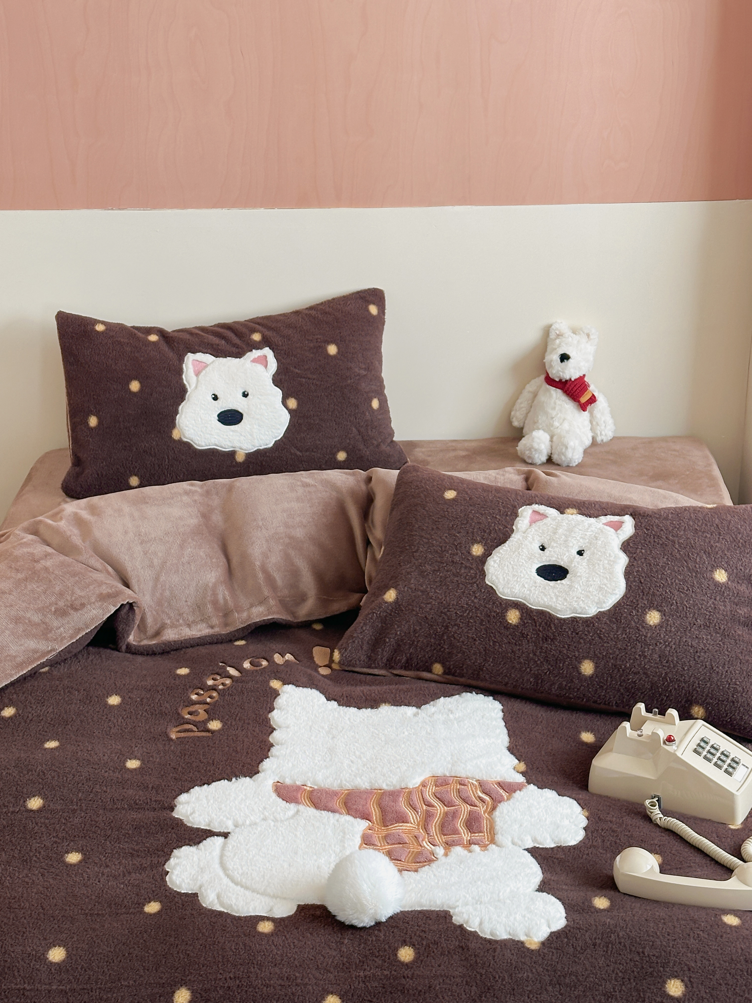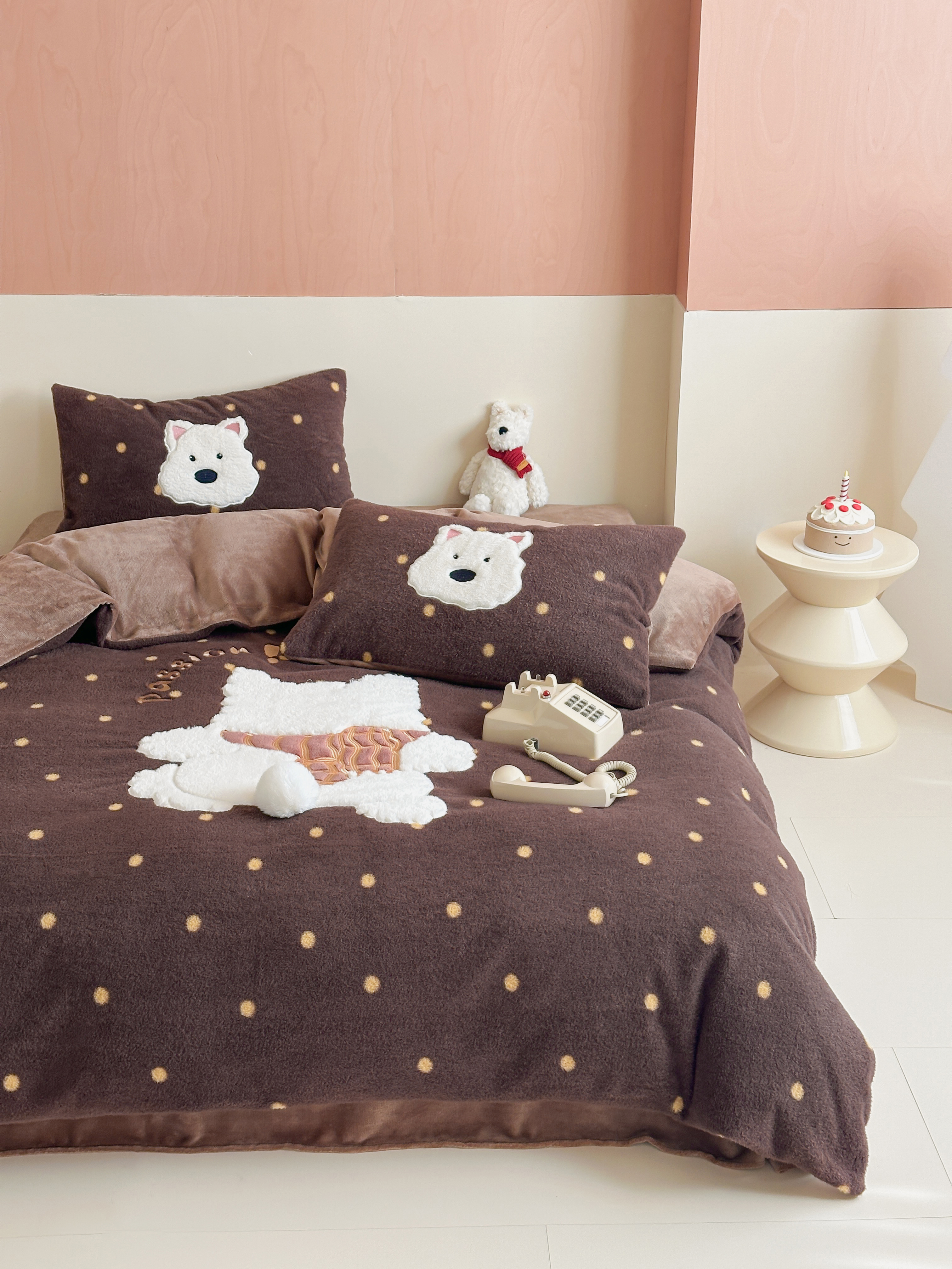 商品名称:桃喜 2025新款仿羊绒贴布绣四件套(会员-5) 咖格围巾小熊