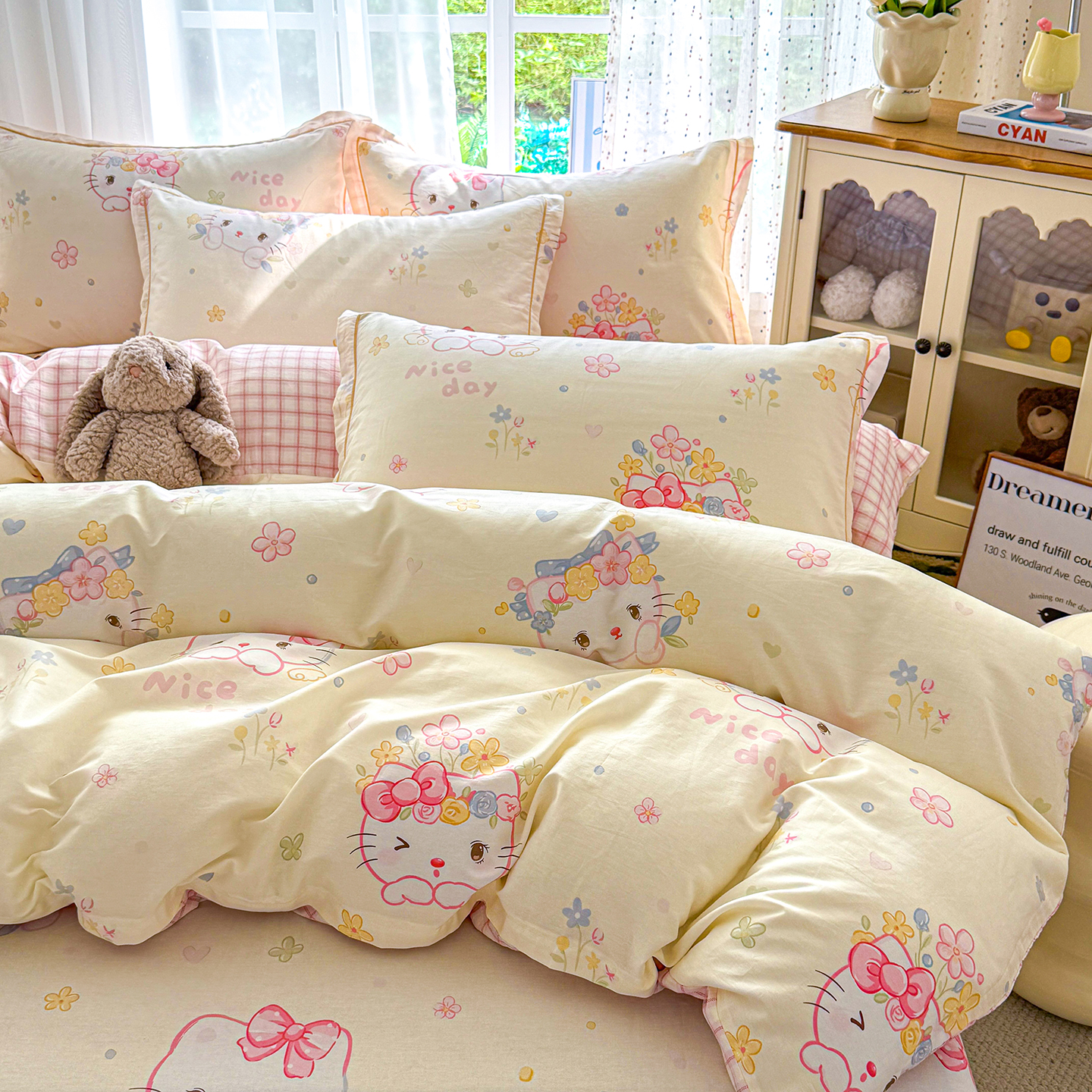 红粉佳人家纺 2025新款12868纯棉系列全棉单床单 花花猫咪