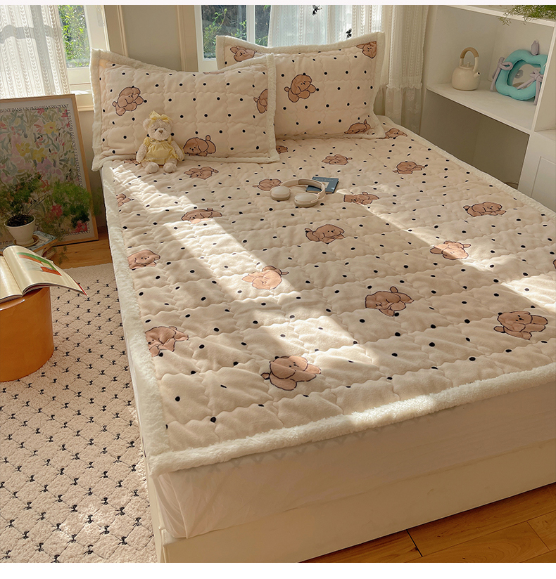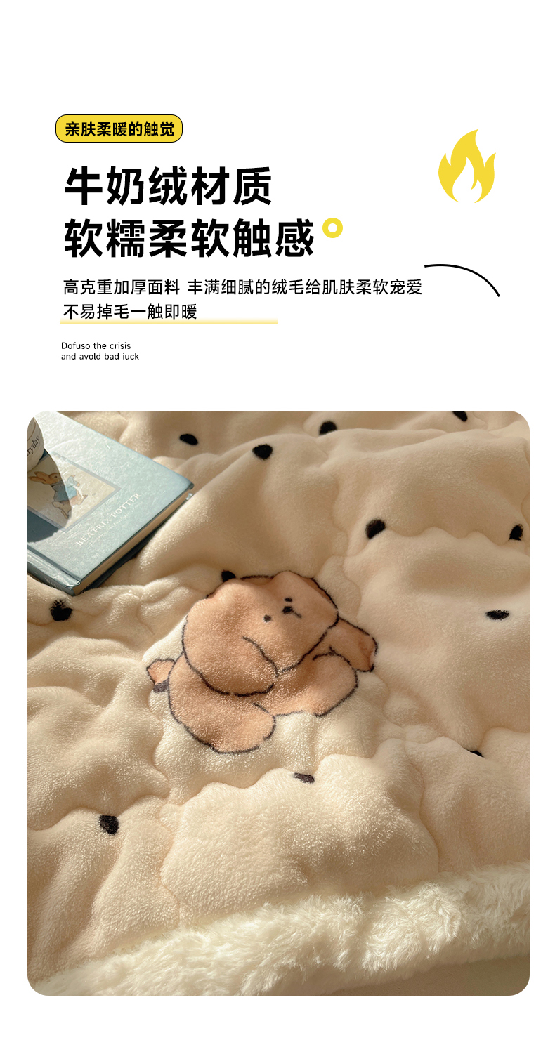 红嘴企鹅 2025新款高克重牛奶绒印花床护垫床褥 波点狗