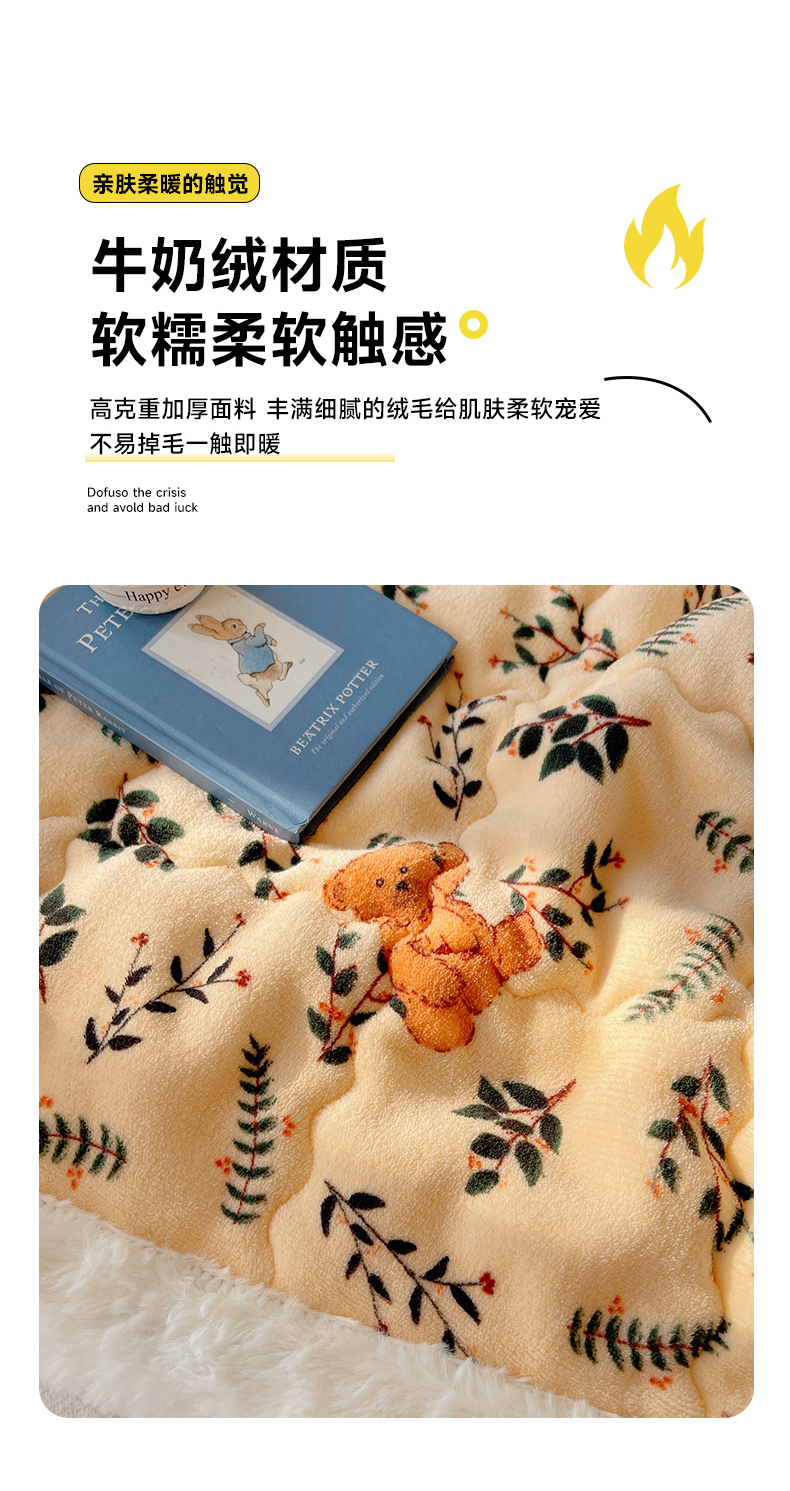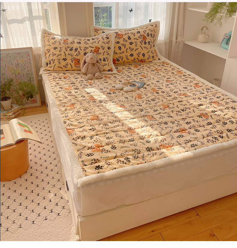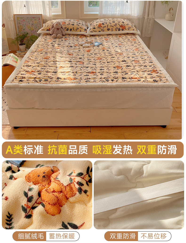 红嘴企鹅 2025新款高克重牛奶绒印花床护垫床褥 摩卡熊