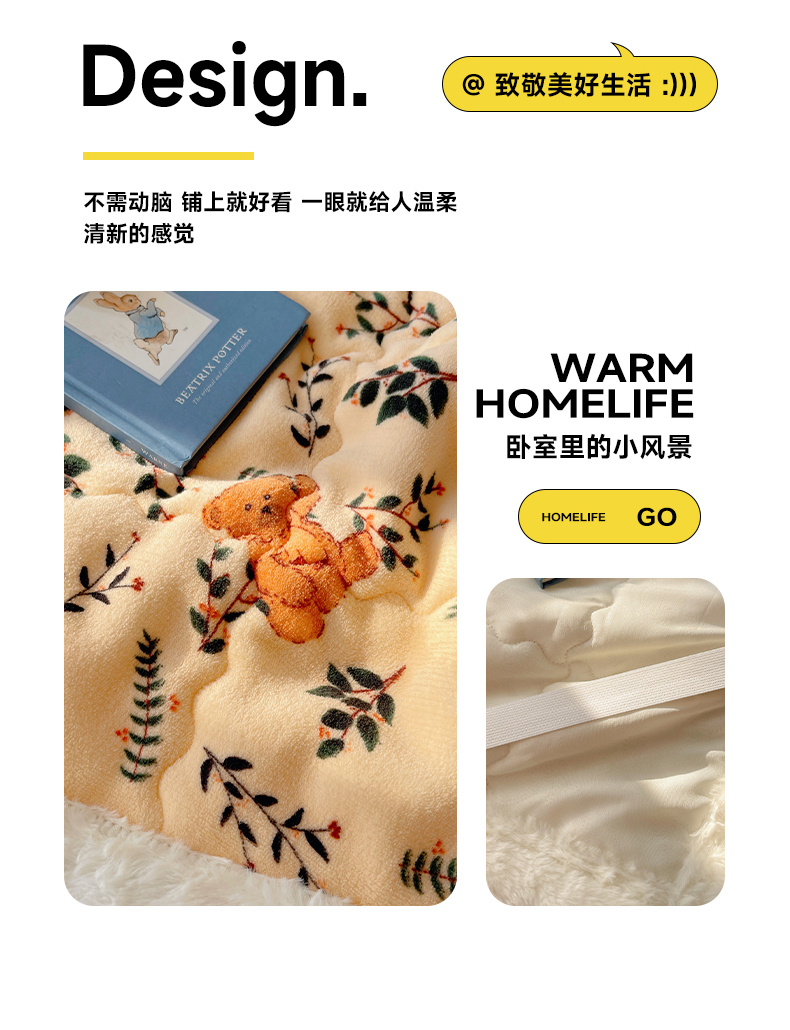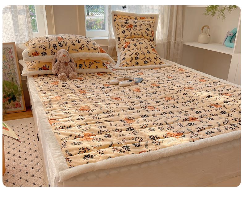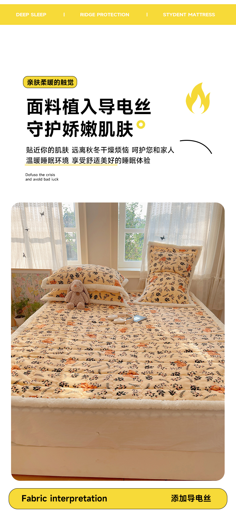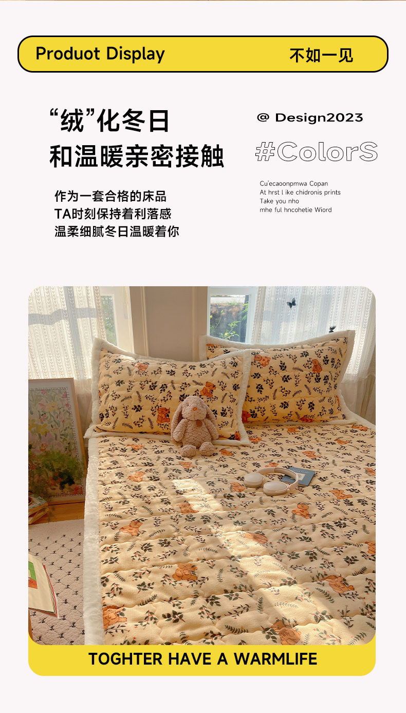 红嘴企鹅 2025新款高克重牛奶绒印花床护垫床褥 摩卡熊