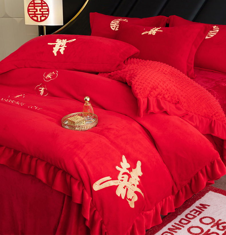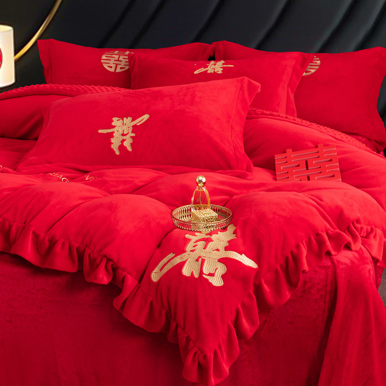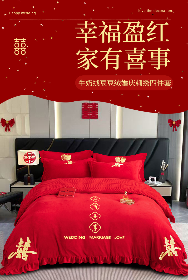 商品名称:(总)卓缦家纺 2025新款牛奶绒豆豆绒婚庆四件套