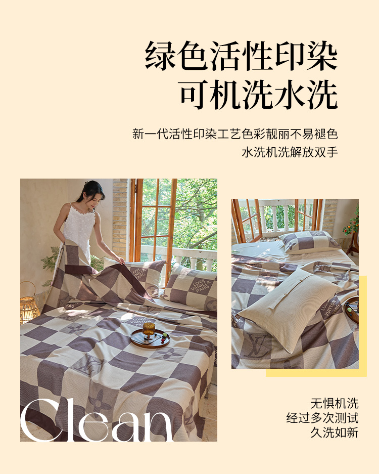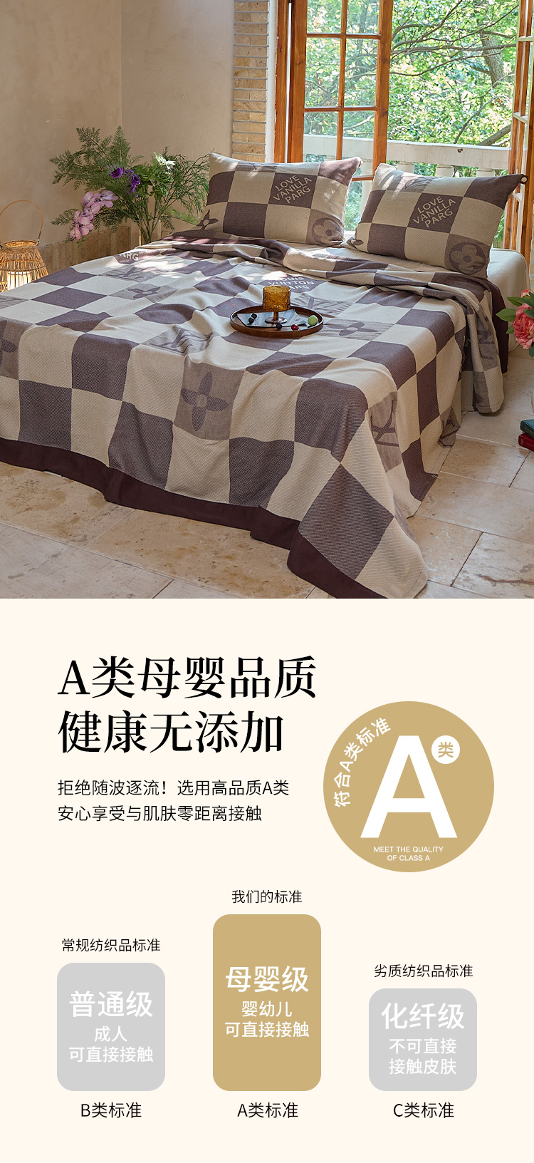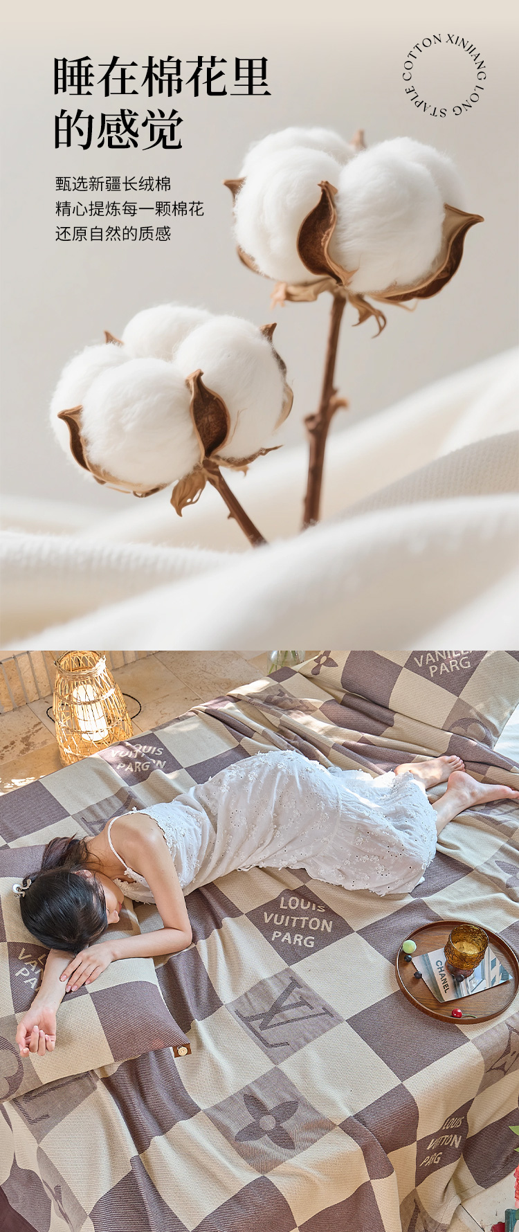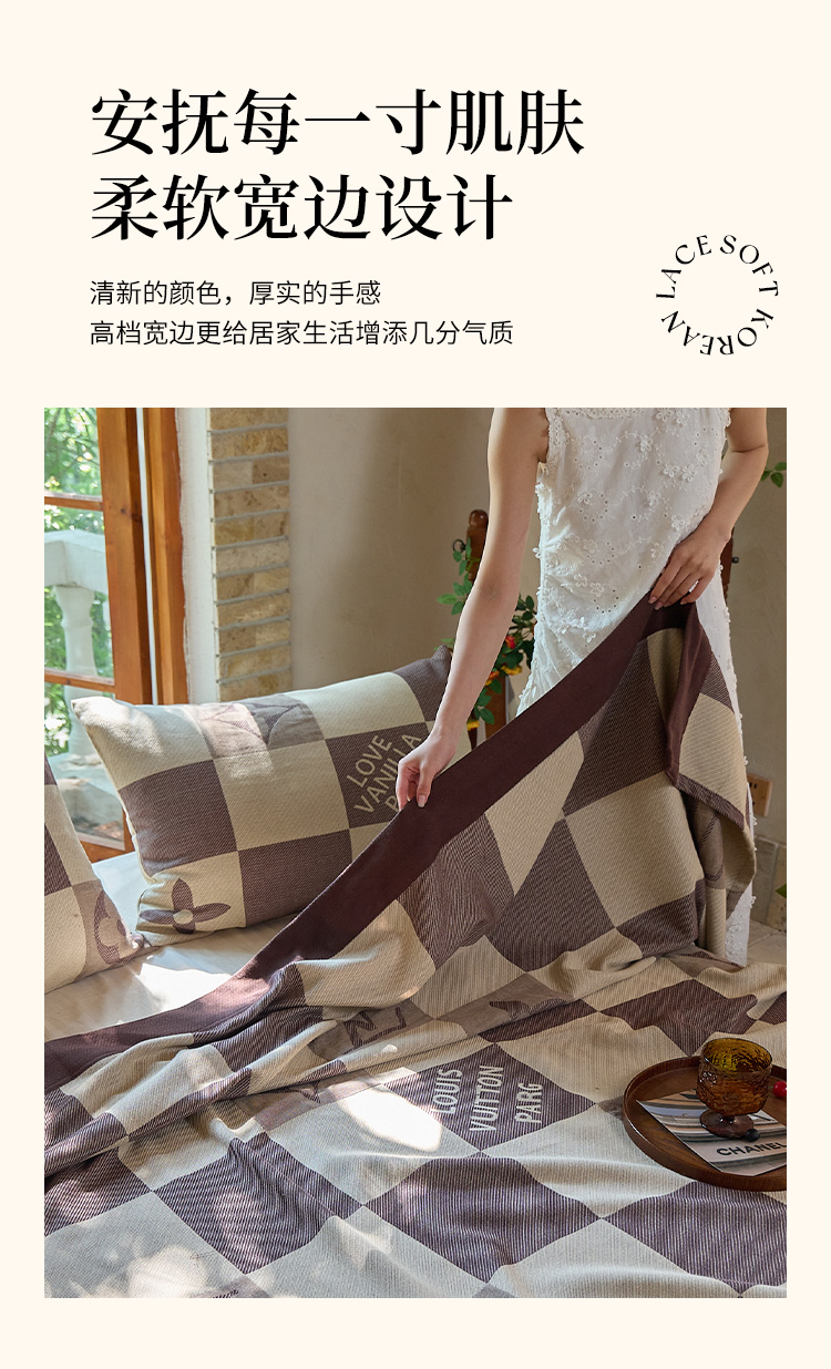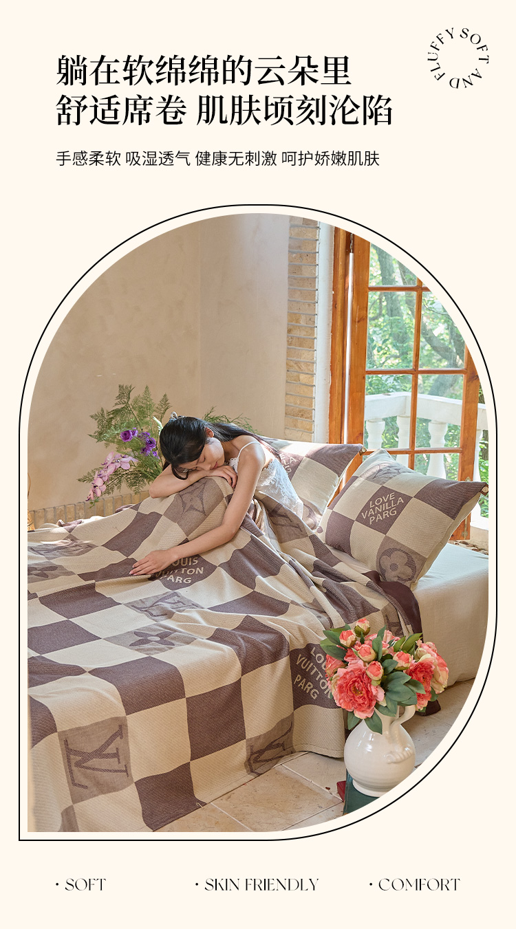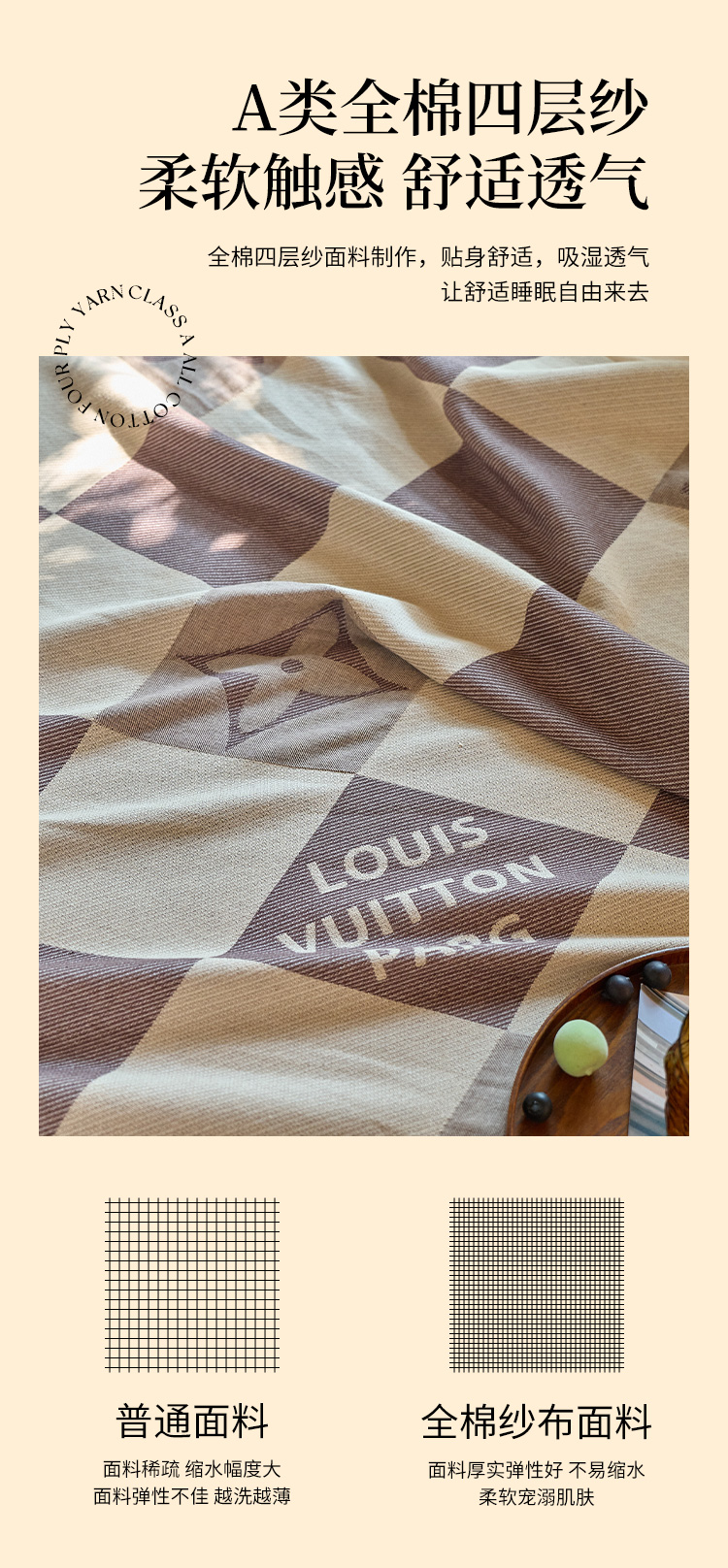商品名称:沐瑟家纺 2025新款全棉纱布细纱布大床盖毯子床盖三件套LV系列 LV咖色