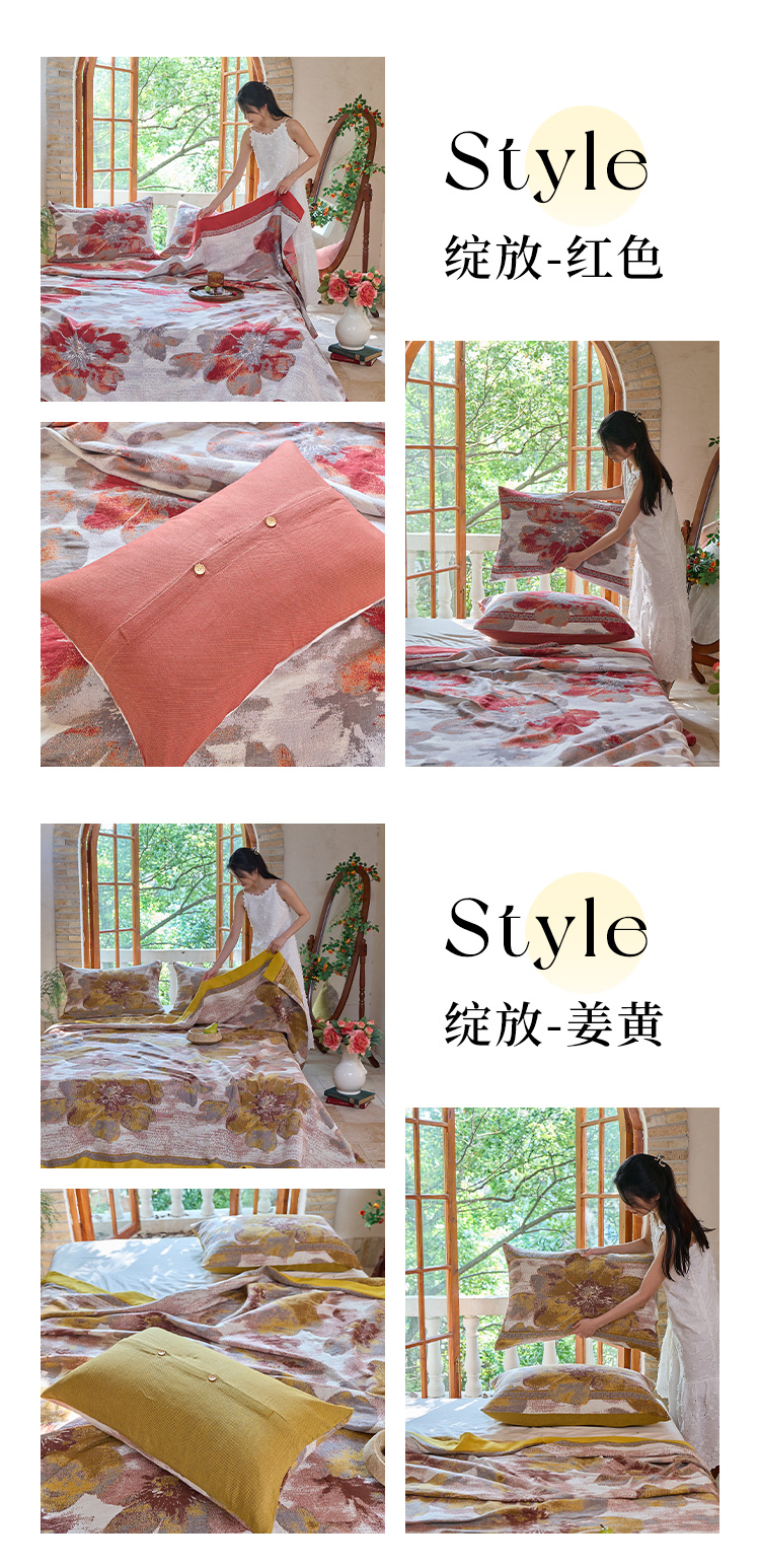 (总)沐瑟家纺 2025新款全棉纱布细纱布大床盖毯子床盖三件套LV系列,LV咖色,春意浓,玫瑰之约,小天鹅-绿,绽放-红色,绽放-姜黄