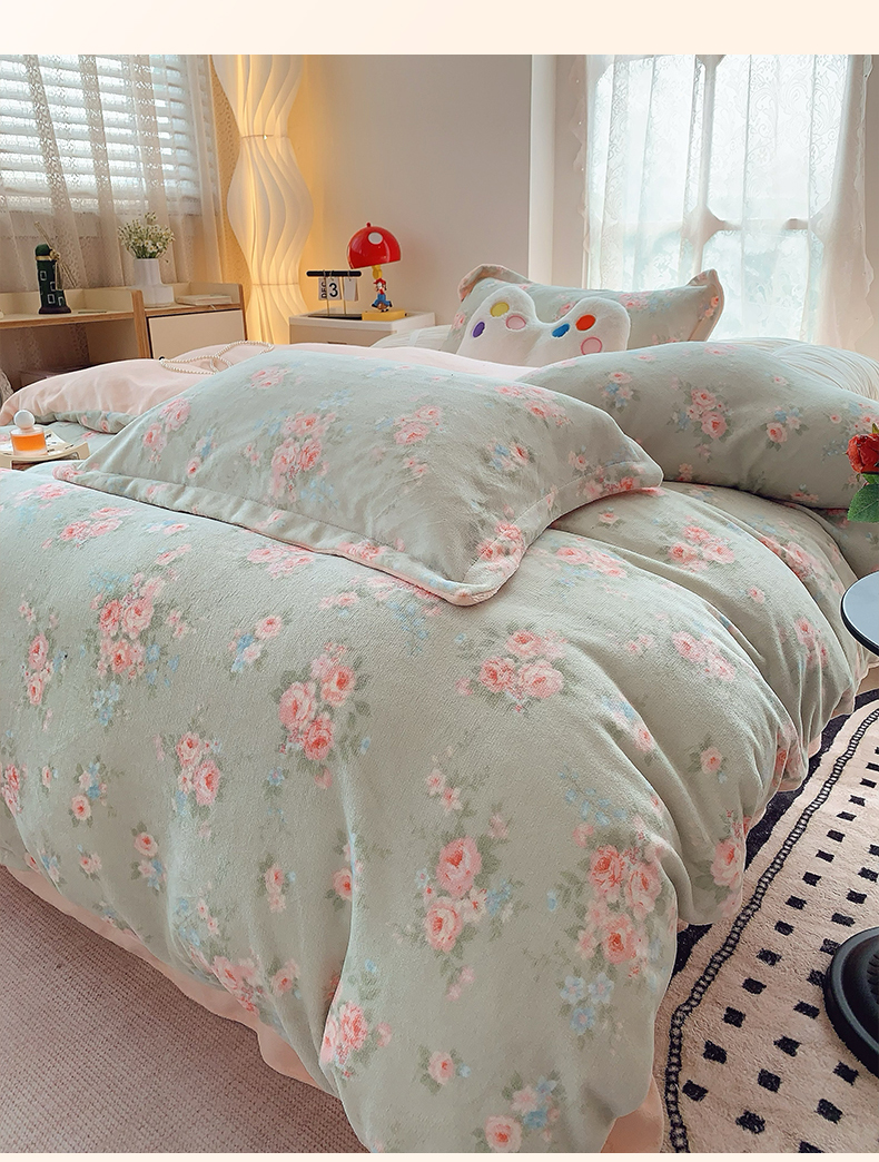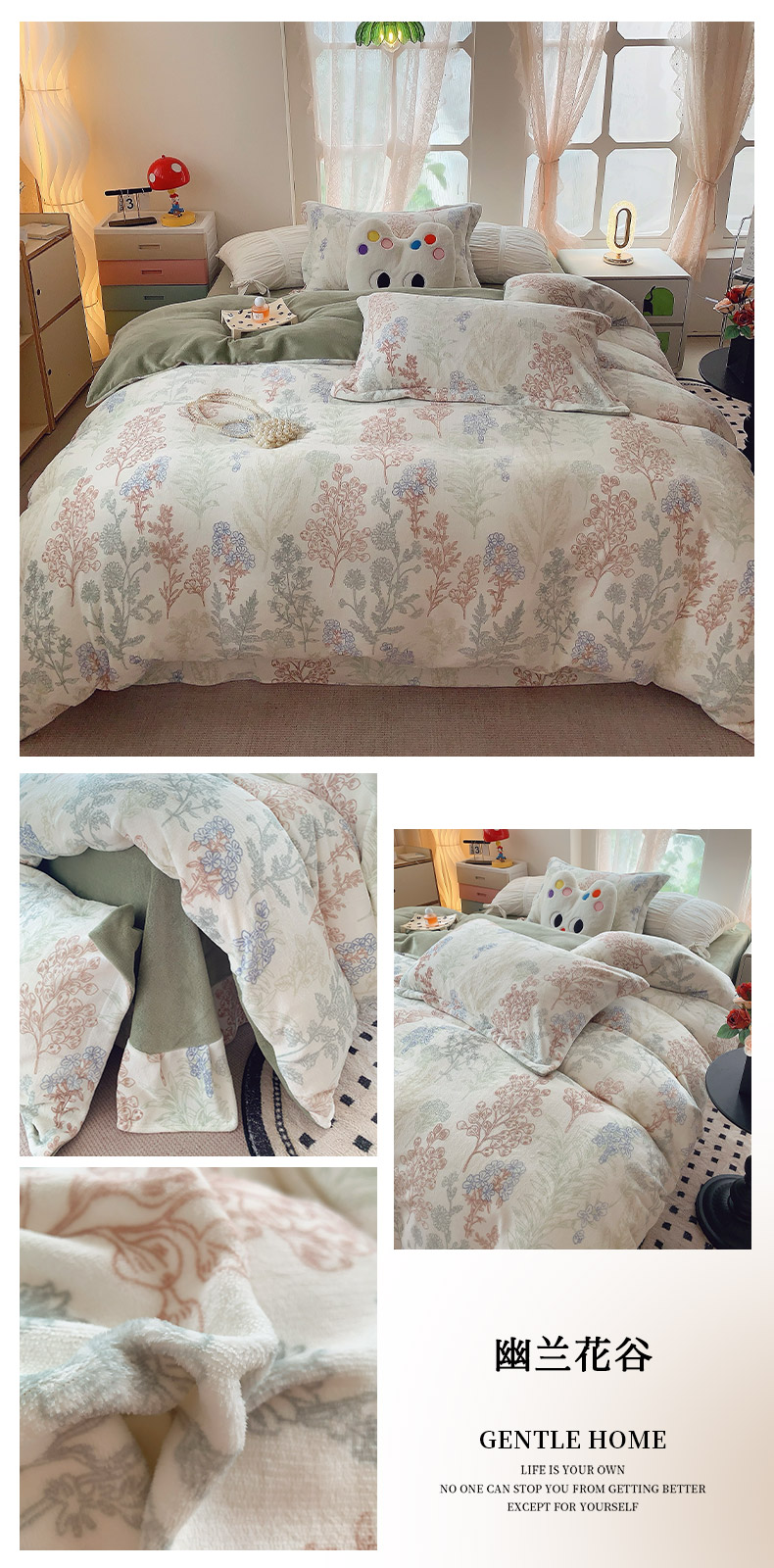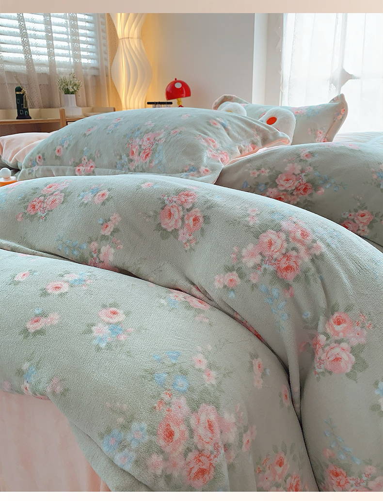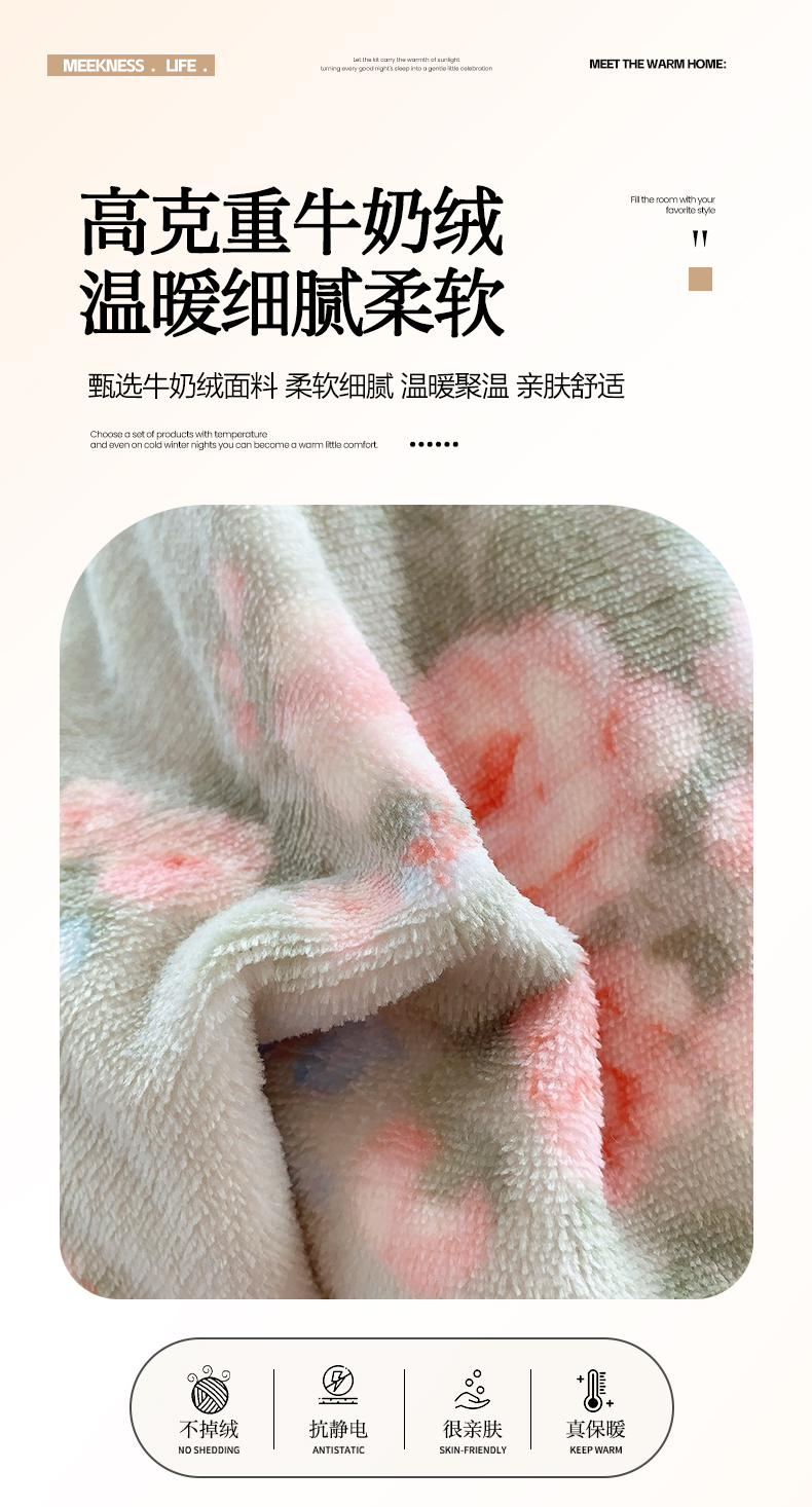 商品名称:奈萝家纺 2025新款加厚小清新印花牛奶绒三件套四件套 茉莉