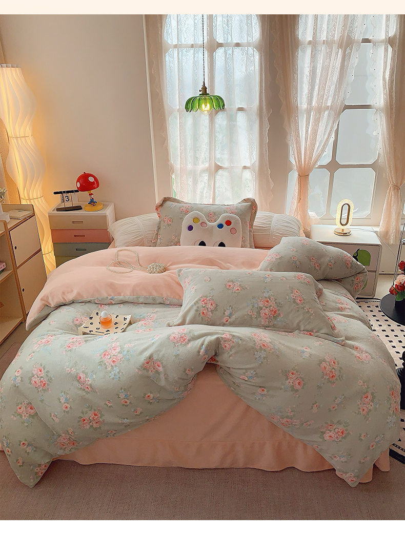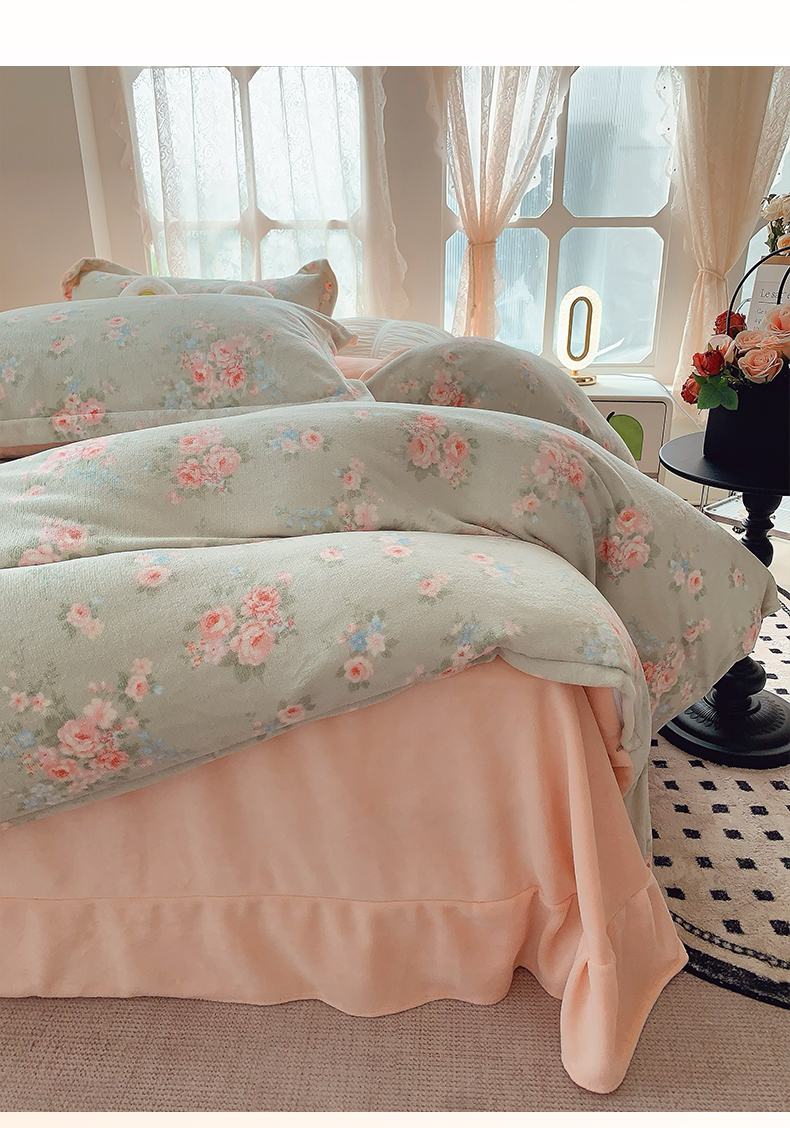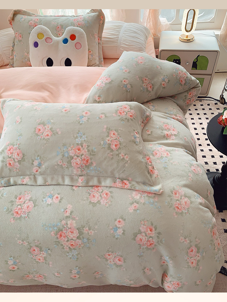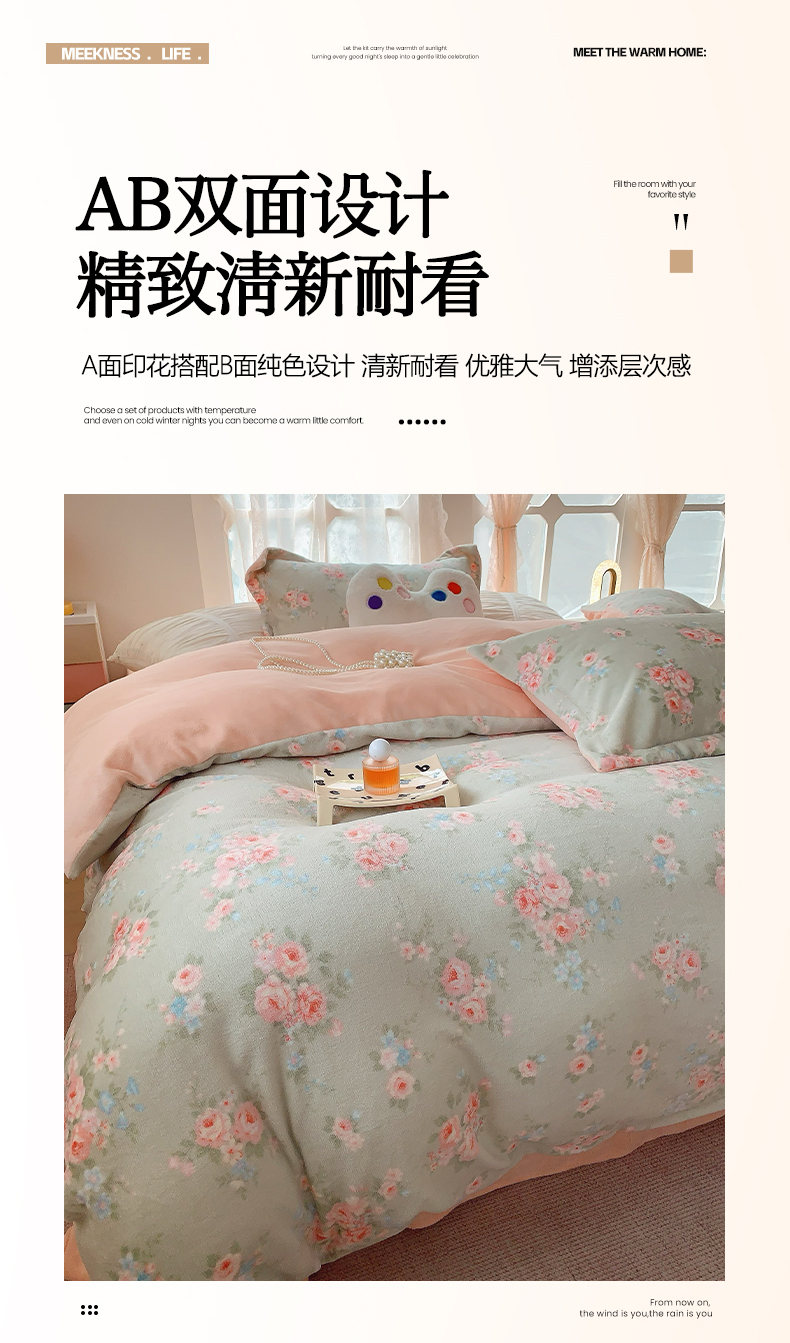 商品名称:奈萝家纺 2025新款加厚小清新印花牛奶绒三件套四件套 茉莉