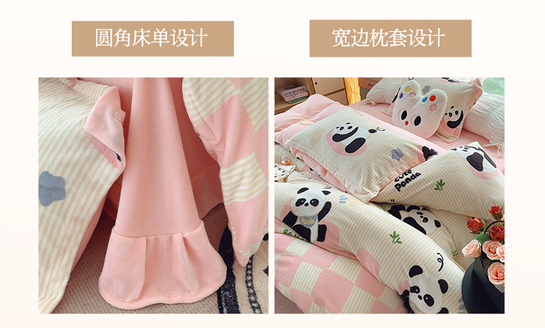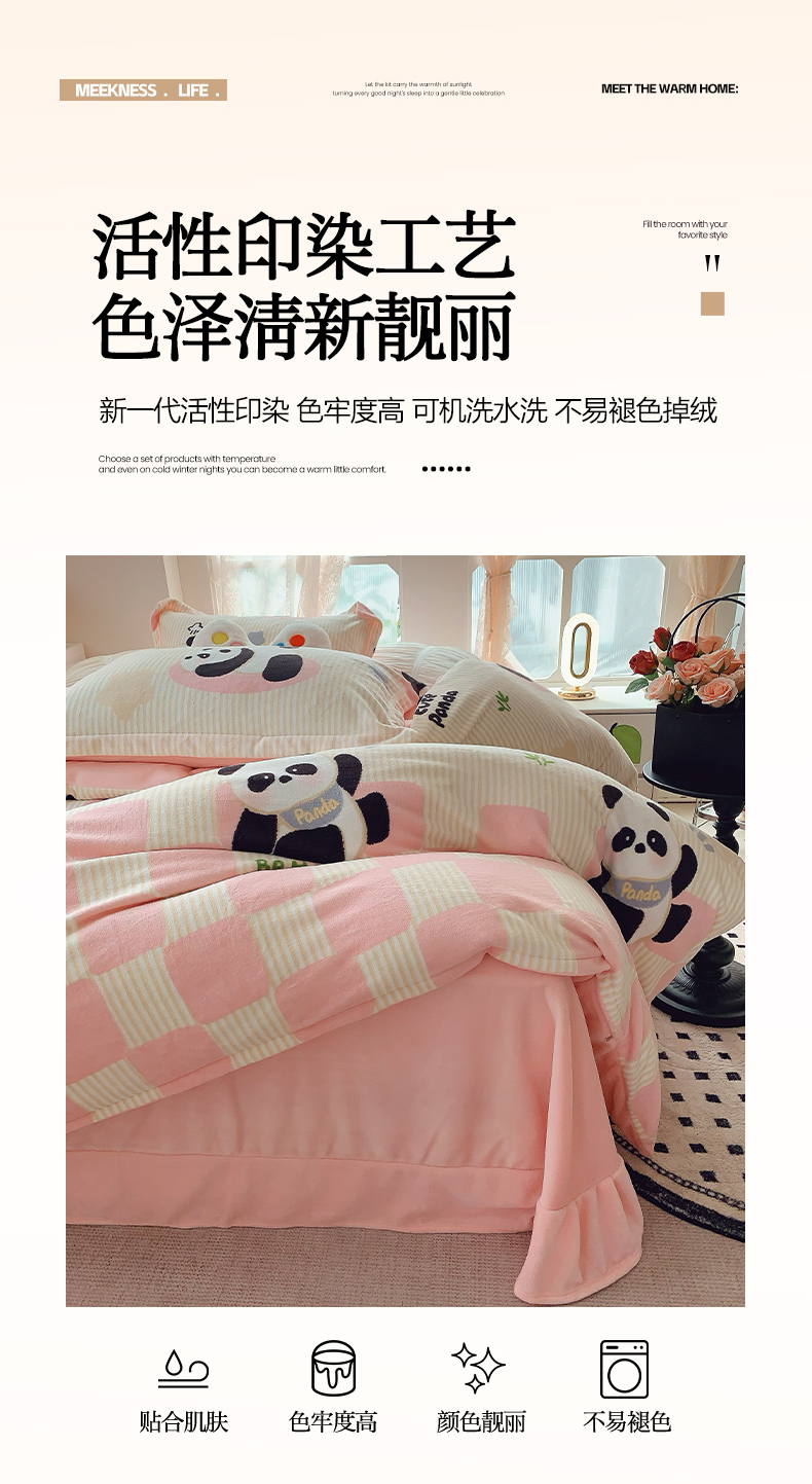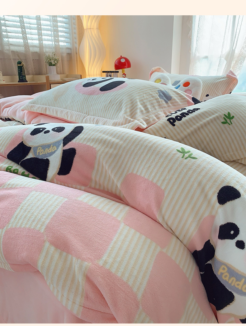 商品名称:奈萝家纺 2025新款加厚小清新印花牛奶绒三件套四件套 小熊猫粉