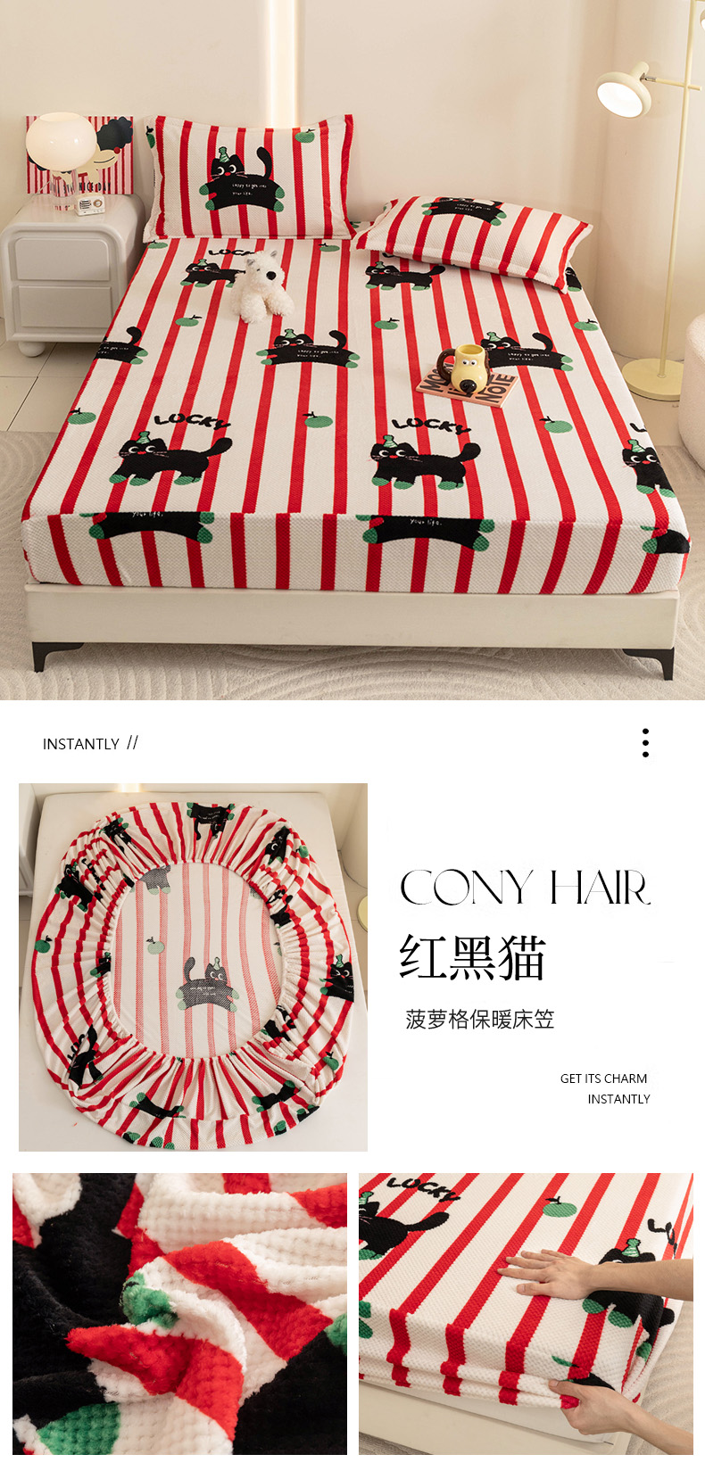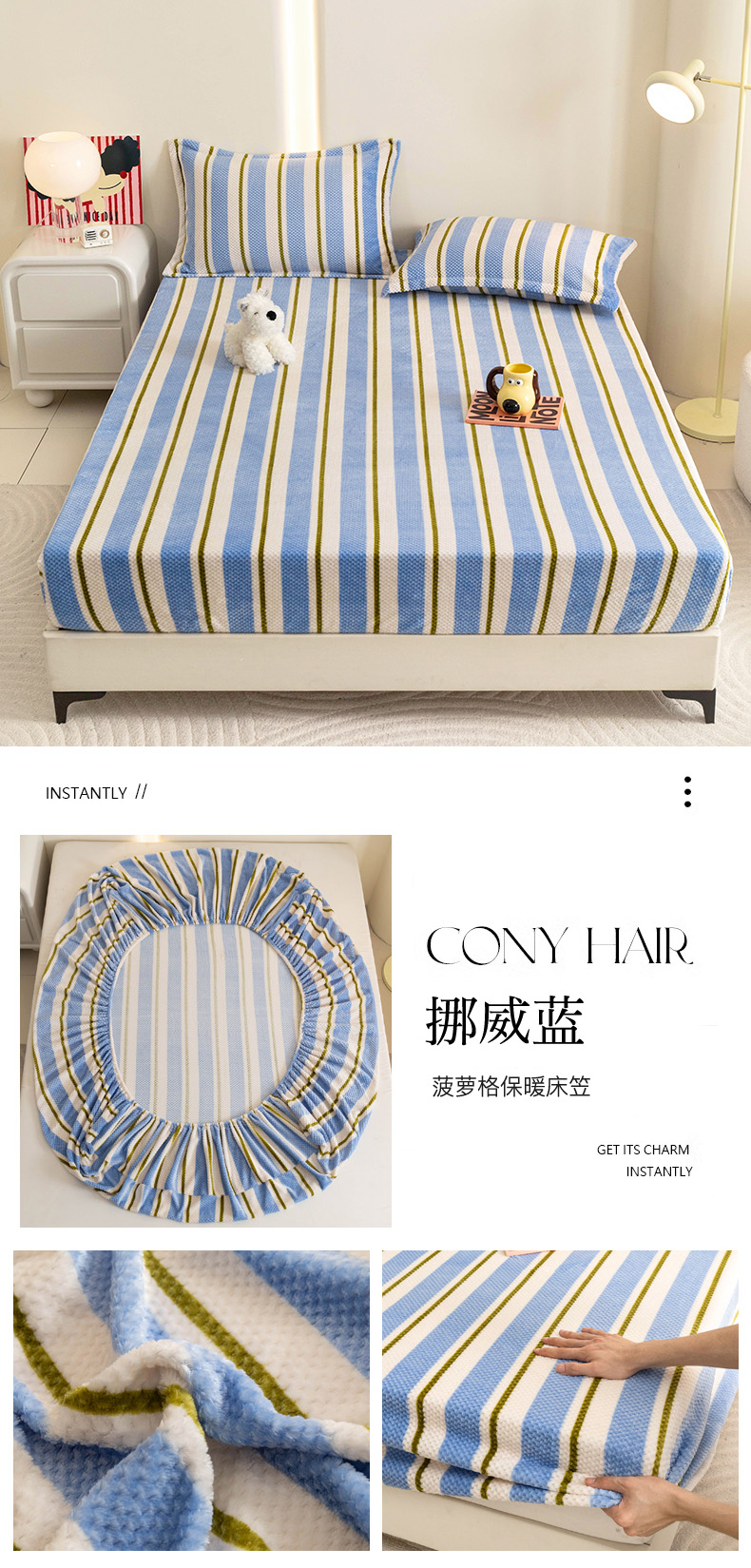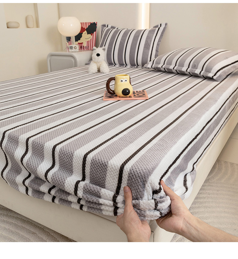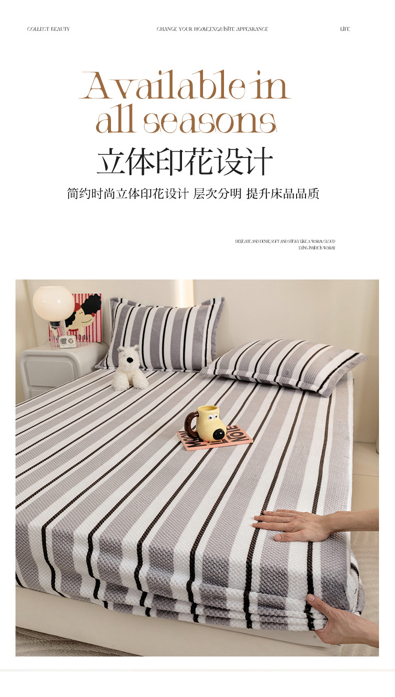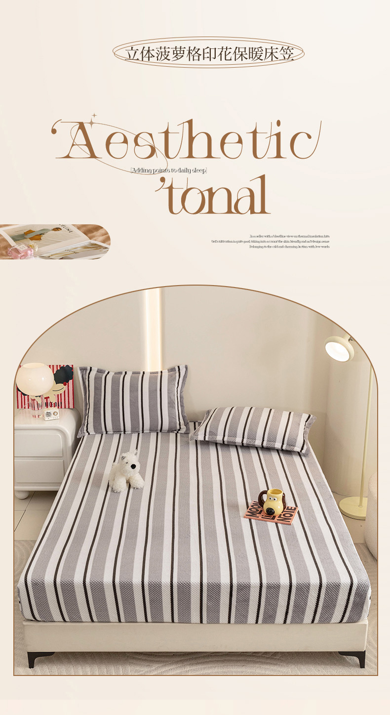 倾慕家纺 2026新款立体菠萝格印花保暖床笠 挪威灰