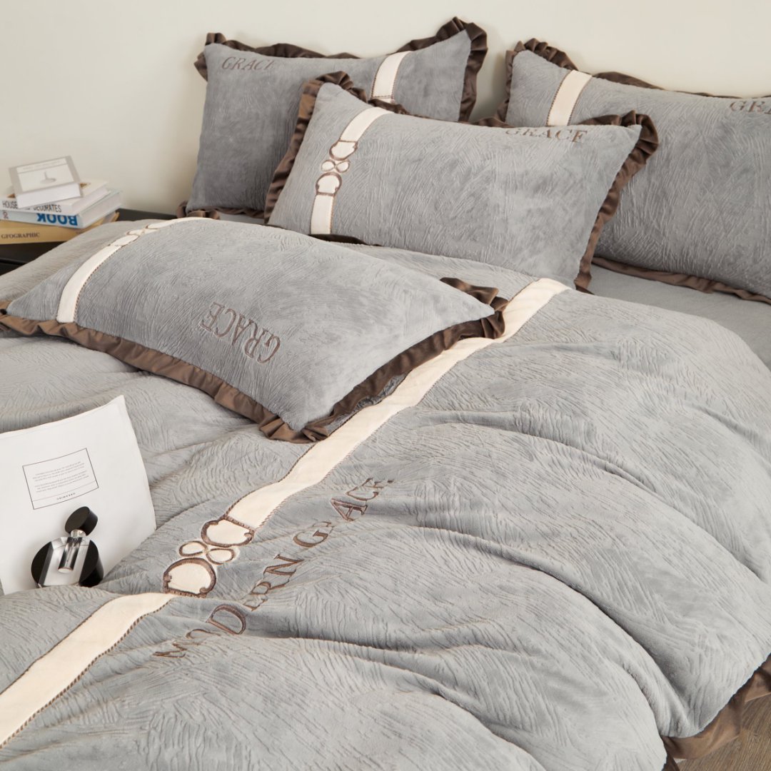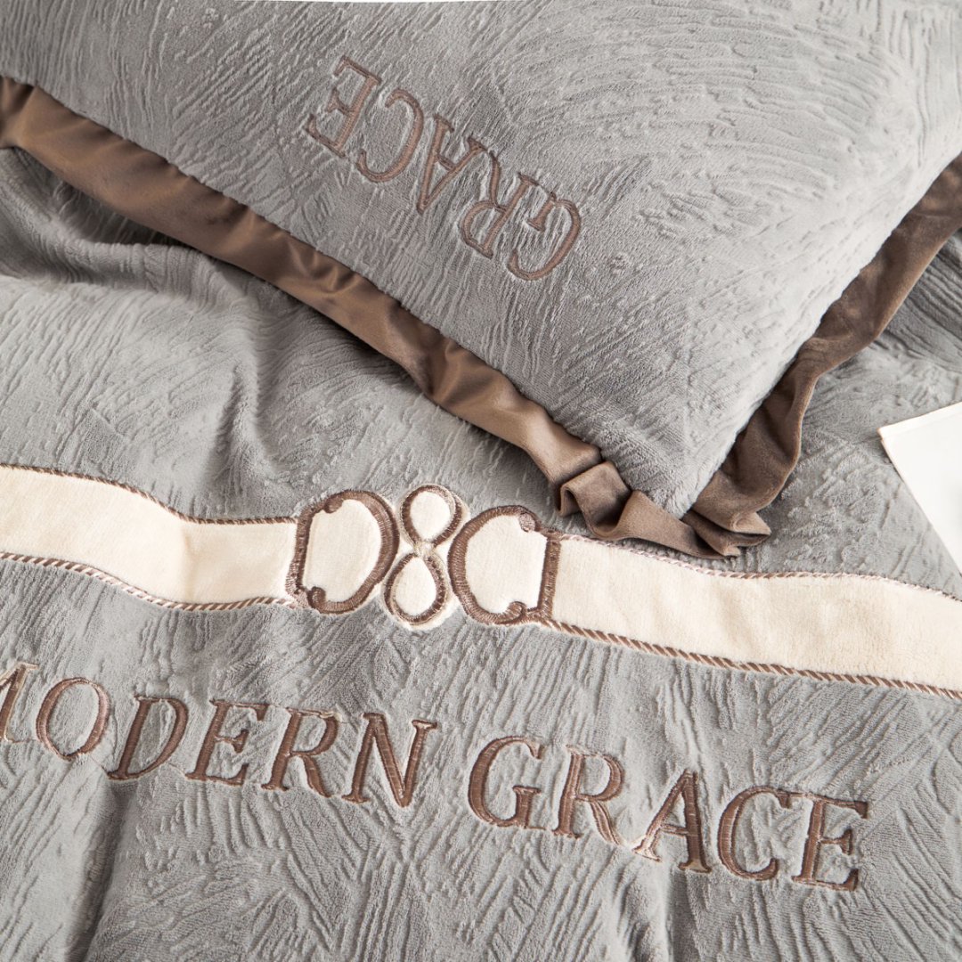 七里香 2025新款雕花绒牛奶绒刺绣四件套-云锦系列 云锦-灰色