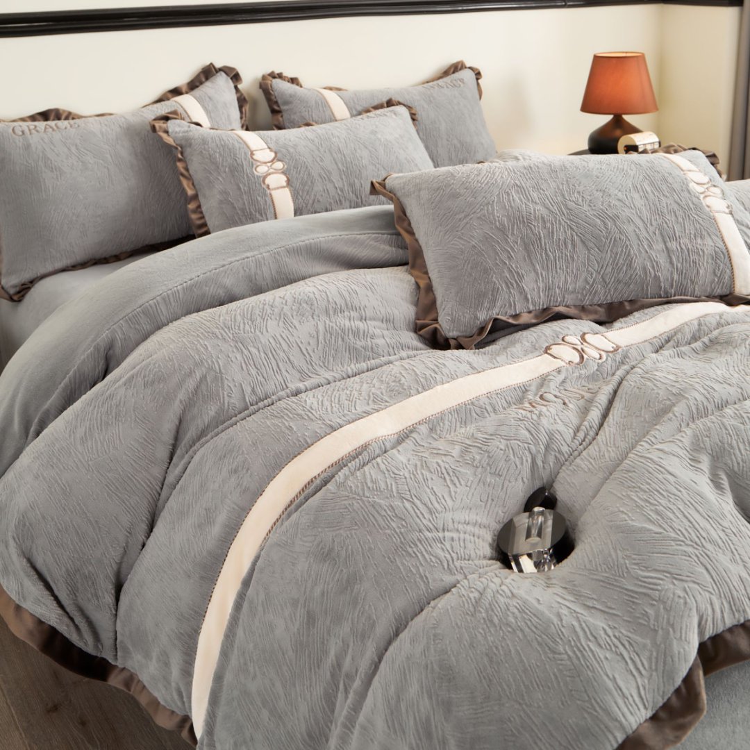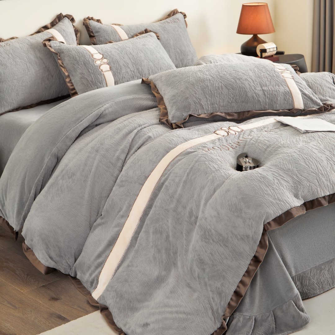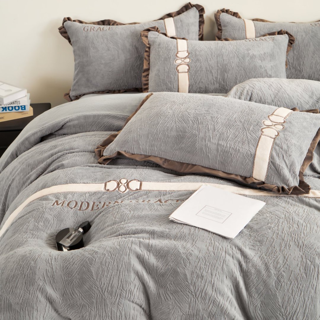 商品名称:七里香 2025新款雕花绒牛奶绒刺绣四件套-云锦系列 云锦-灰色