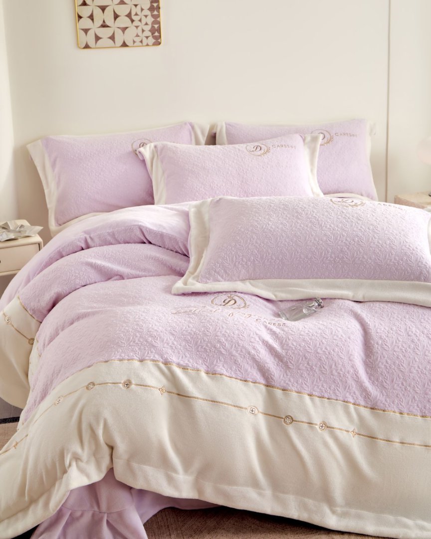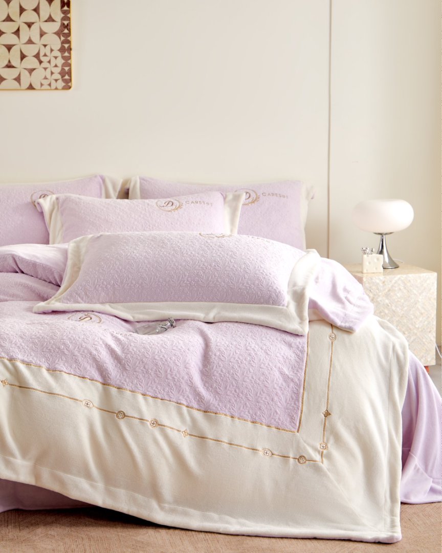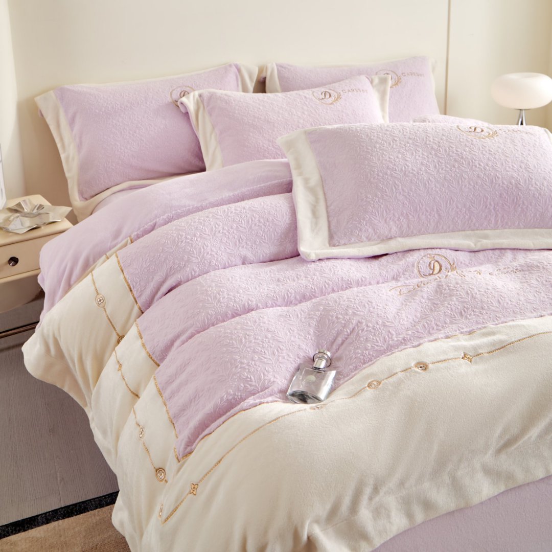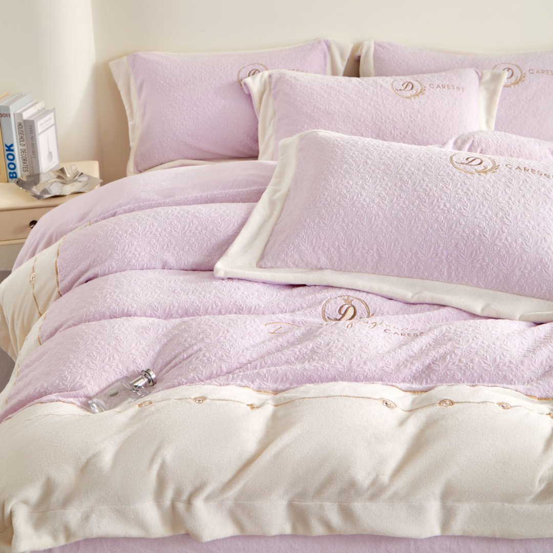(总)七里香 2025新款雕花绒牛奶绒工艺款四件套-偏爱系列,偏爱-粉玉,偏爱-蓝色,偏爱-米黄,偏爱-紫色