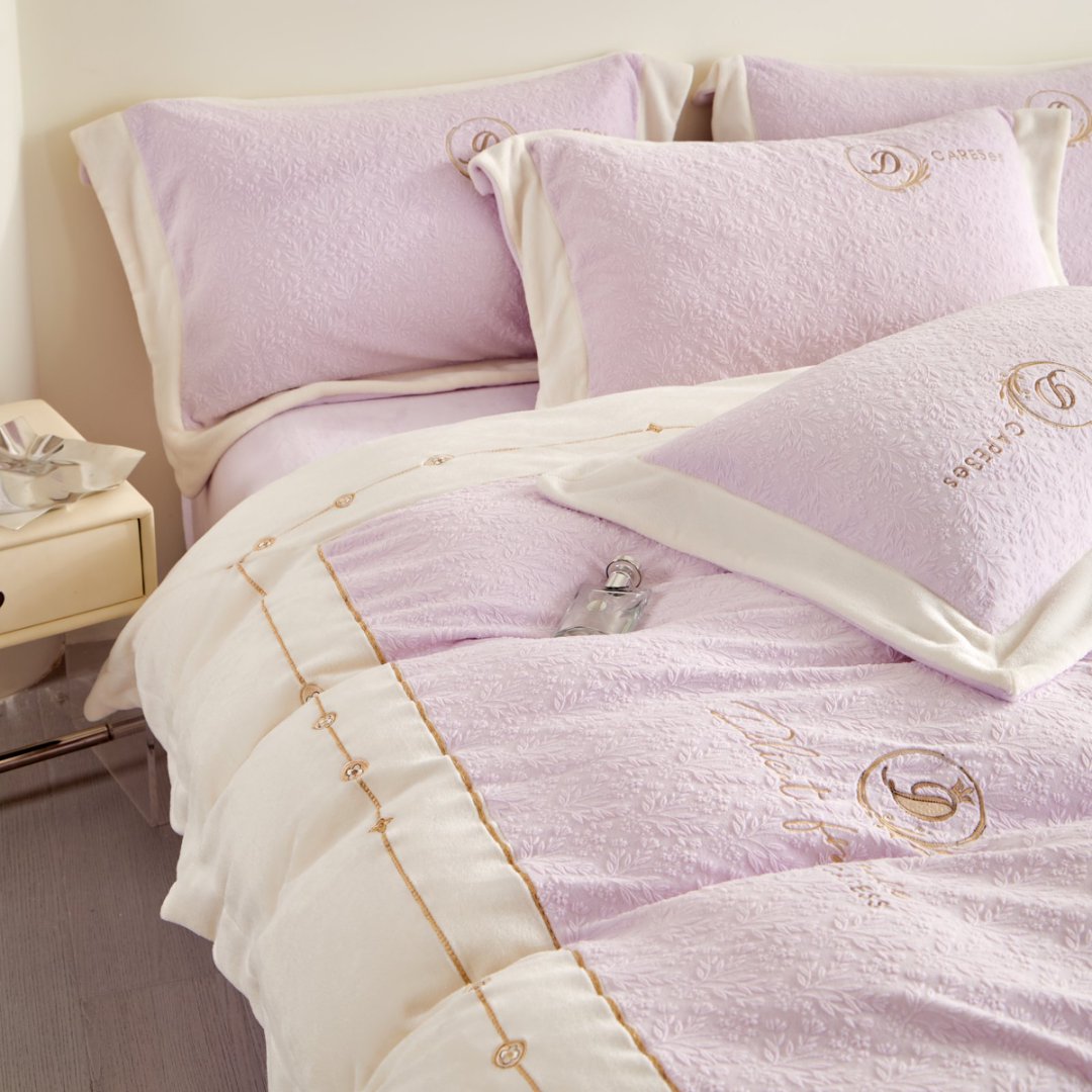 商品名称:七里香 2025新款雕花绒牛奶绒刺绣四件套-锦穗绒华系列 锦穗绒华-紫色