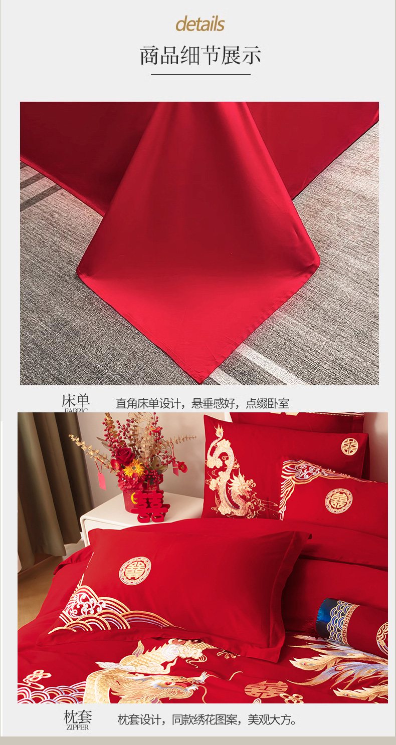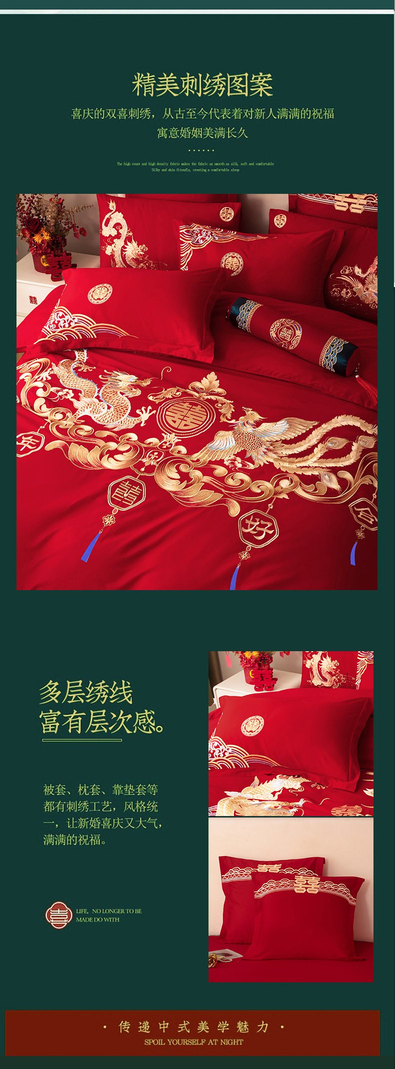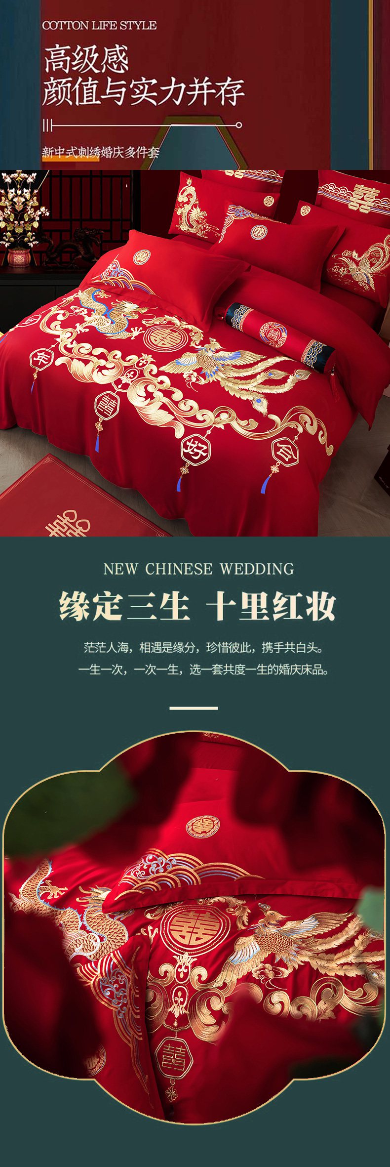 当前位置: 91家纺网 > 商品网购 > 床品套件 > 四件套 > 婚庆四件套 > 梵克保罗 2025秋冬新款全棉绣花婚庆四件套六件套靠垫 棉龙凤百年好合