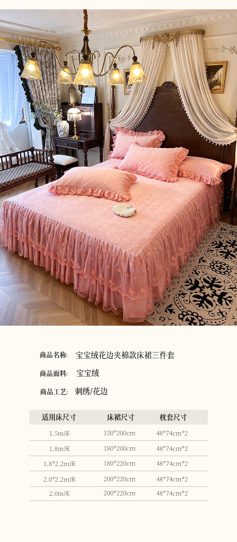 • 91家纺网 家纺一手货源 找家纺 (总)瑞宝 2025新款宝宝绒夹棉床裙三件套-香奢丽影,香奢丽影-高级灰,香奢丽影-豆沙,香奢丽影-奶油白,香奢丽影-胭脂红,香奢丽影-樱花粉,香奢丽影-中国红