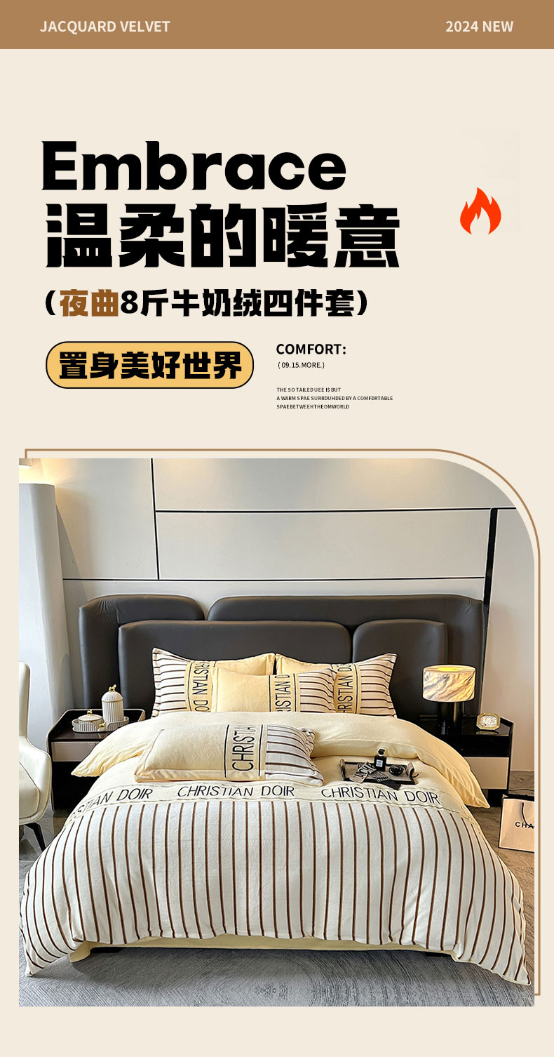 当前位置: 91家纺网 > 商品网购 > 床品套件 > 四件套 > 牛奶绒四件套 > 富宁家纺 2025新款亲肤舒适牛奶绒8斤四件套-夜曲 夜曲-靓丽黄