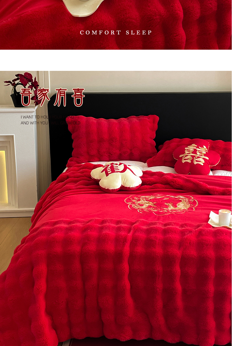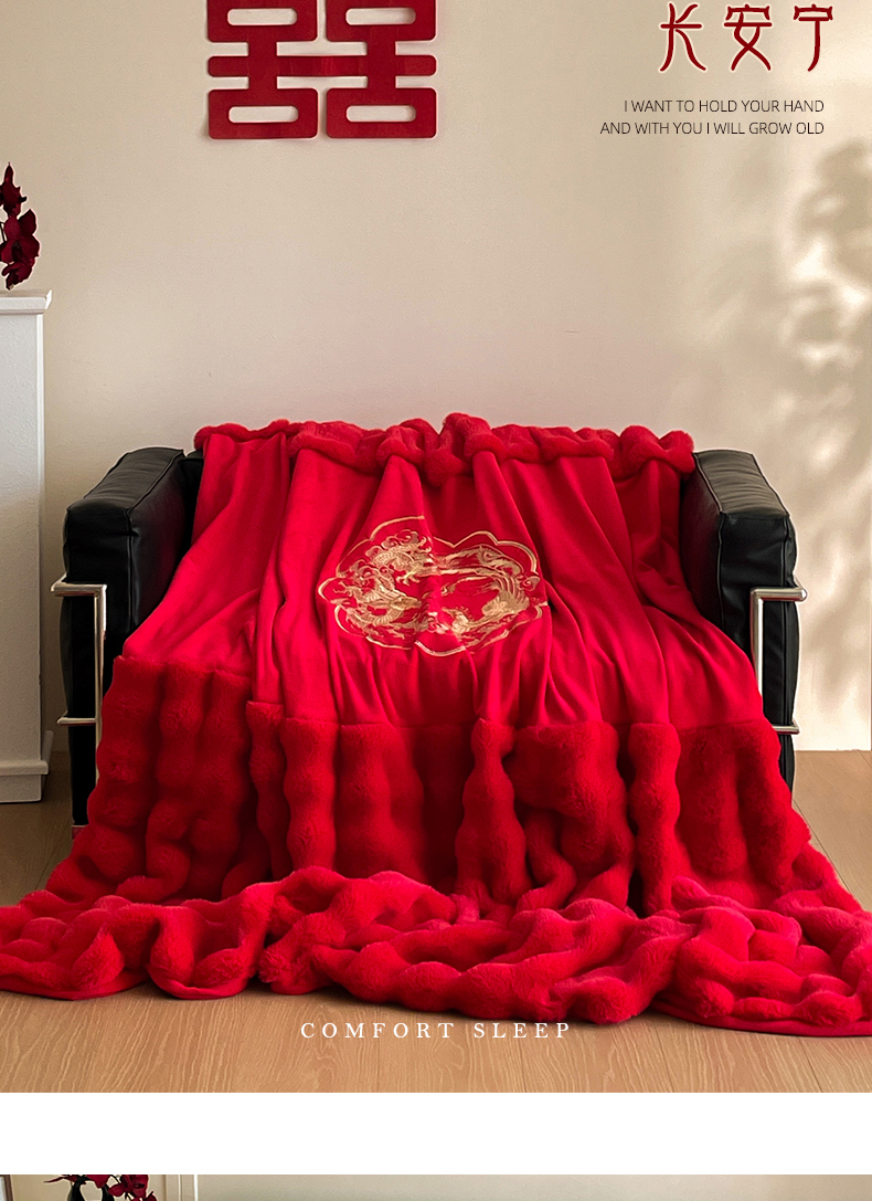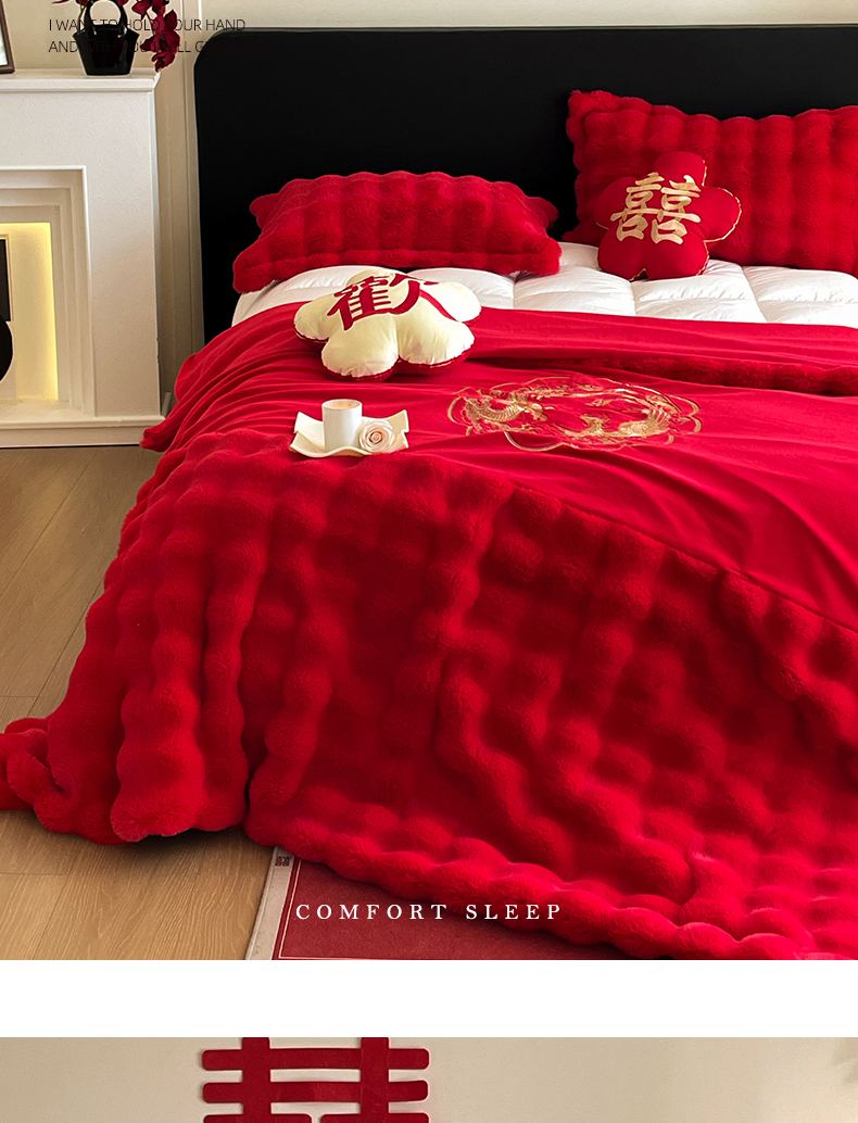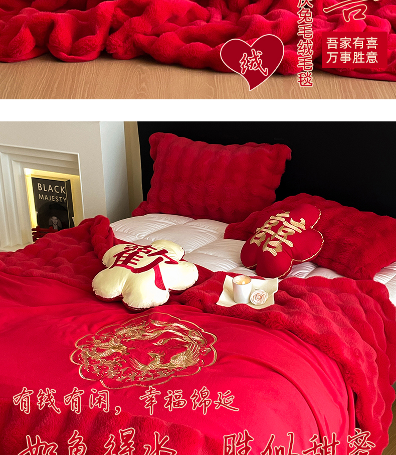 (总)玉雅家纺 2025新款兔毛绒多功能毛毯被套两用豆豆被被子被芯,婚庆毛毯-双喜临门,婚庆毛毯-龙凤团圆,婚庆毛毯-相爱一生