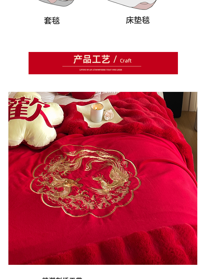商品名称:玉雅家纺 2025新款兔毛绒多功能毛毯被套两用豆豆被被子被芯 婚庆毛毯-龙凤团圆