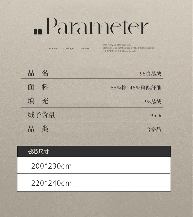 220x240cm 填充1600克95白鹅绒 厚冬被