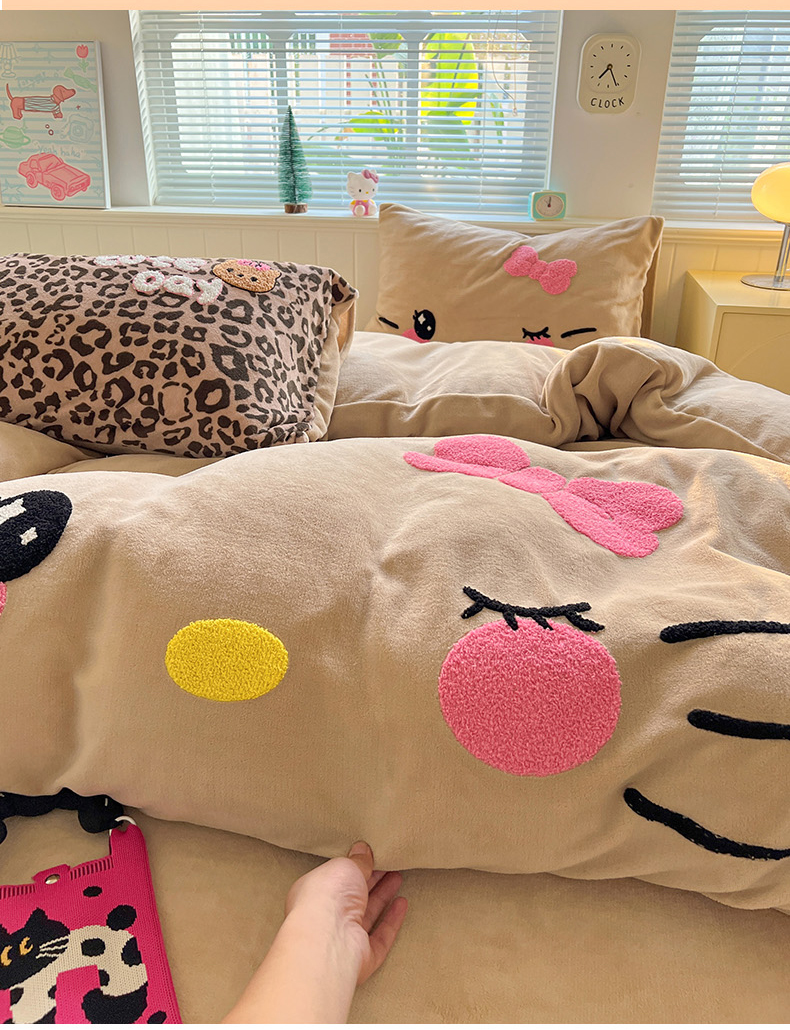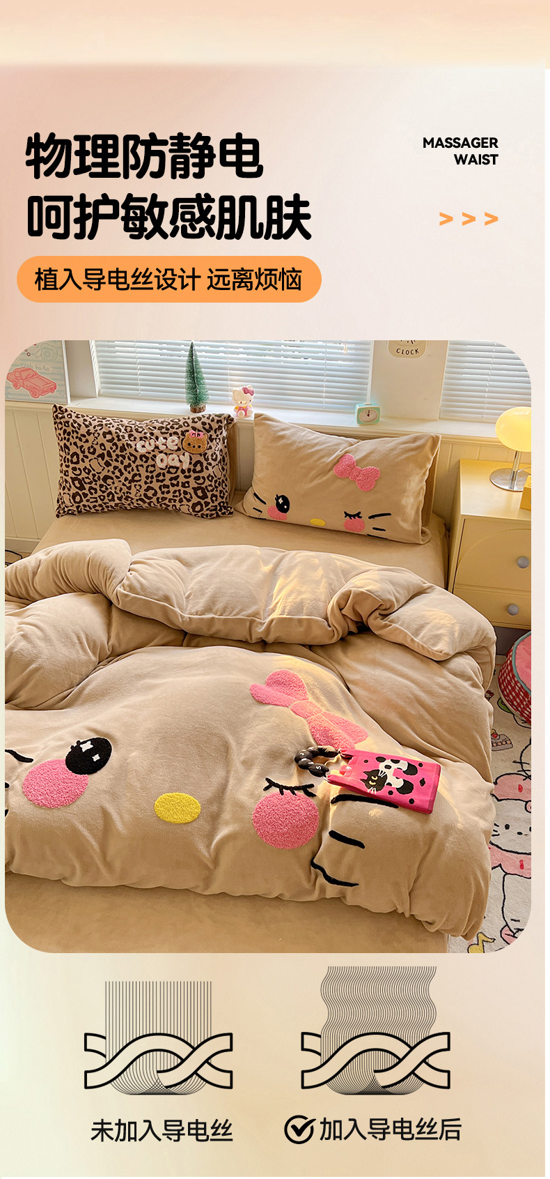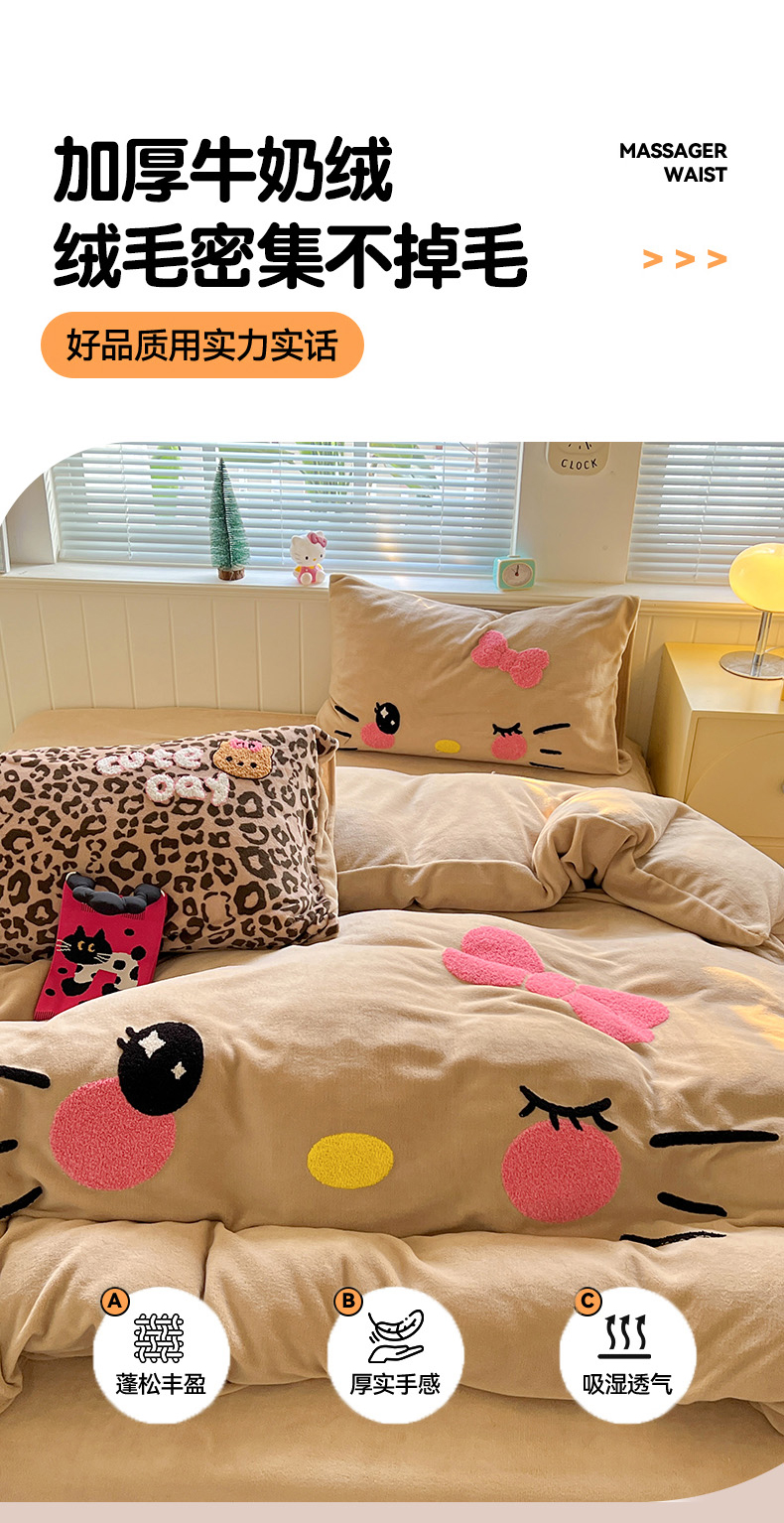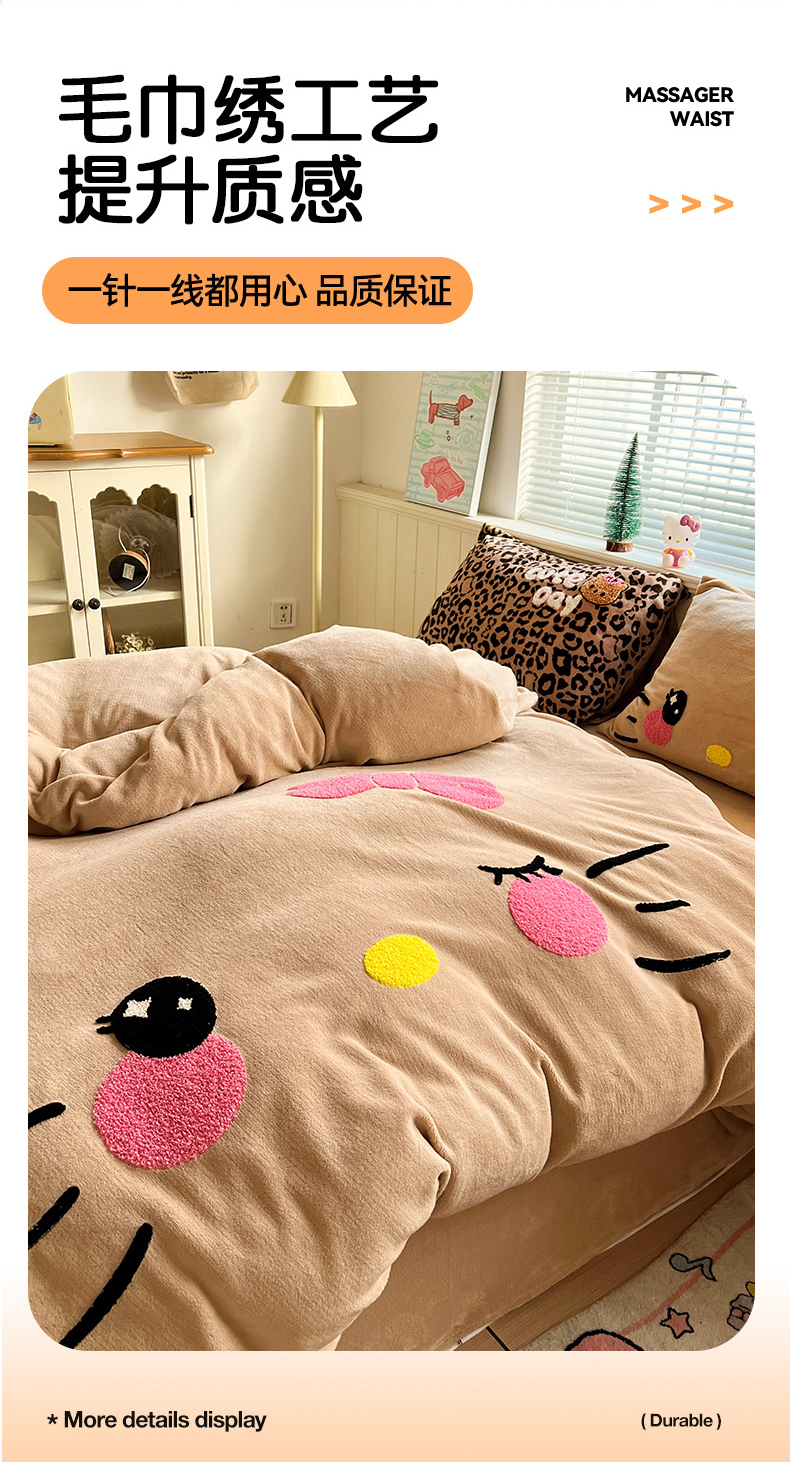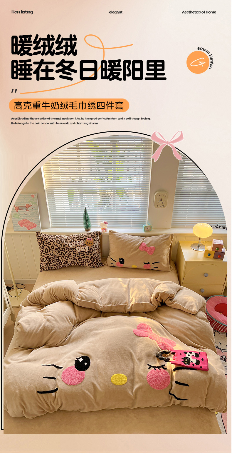 当前位置: 91家纺网 > 商品网购 > 床品套件 > 四件套 > 牛奶绒四件套 > 优选 2025新款高克重200g牛奶绒数码印花毛巾绣卡通四件套直播爆款电商爆款 咖色表情猫