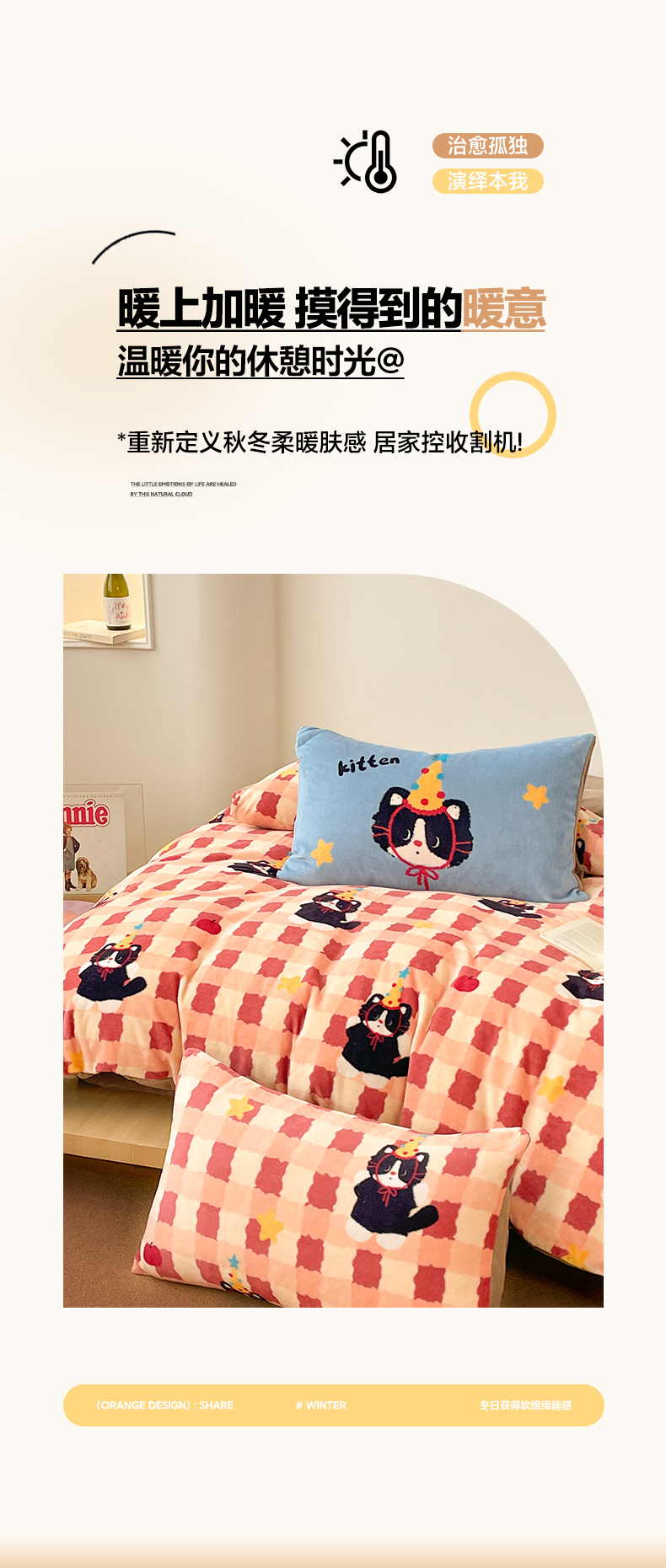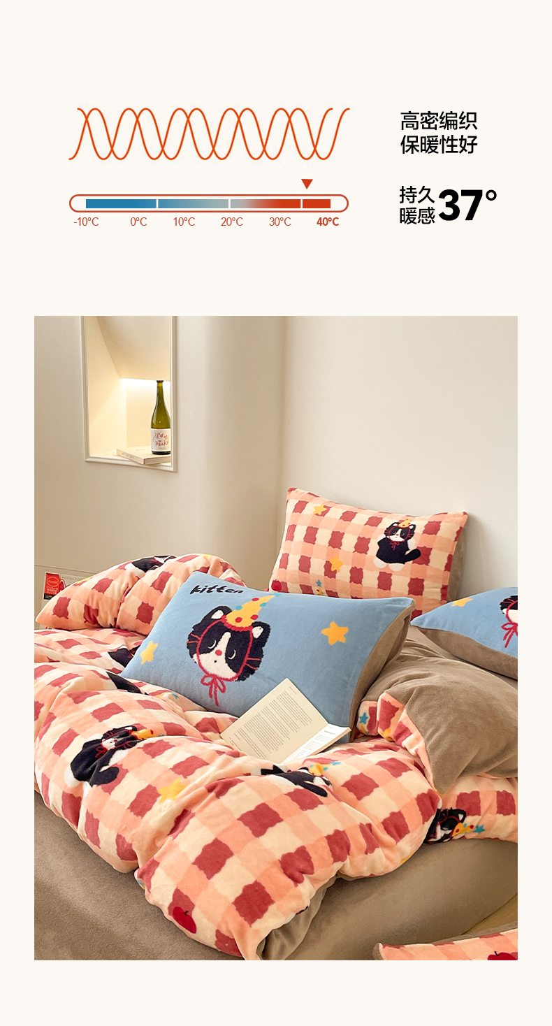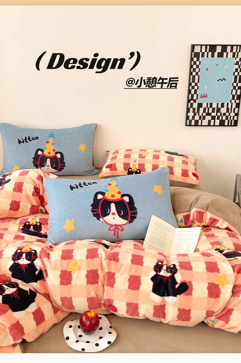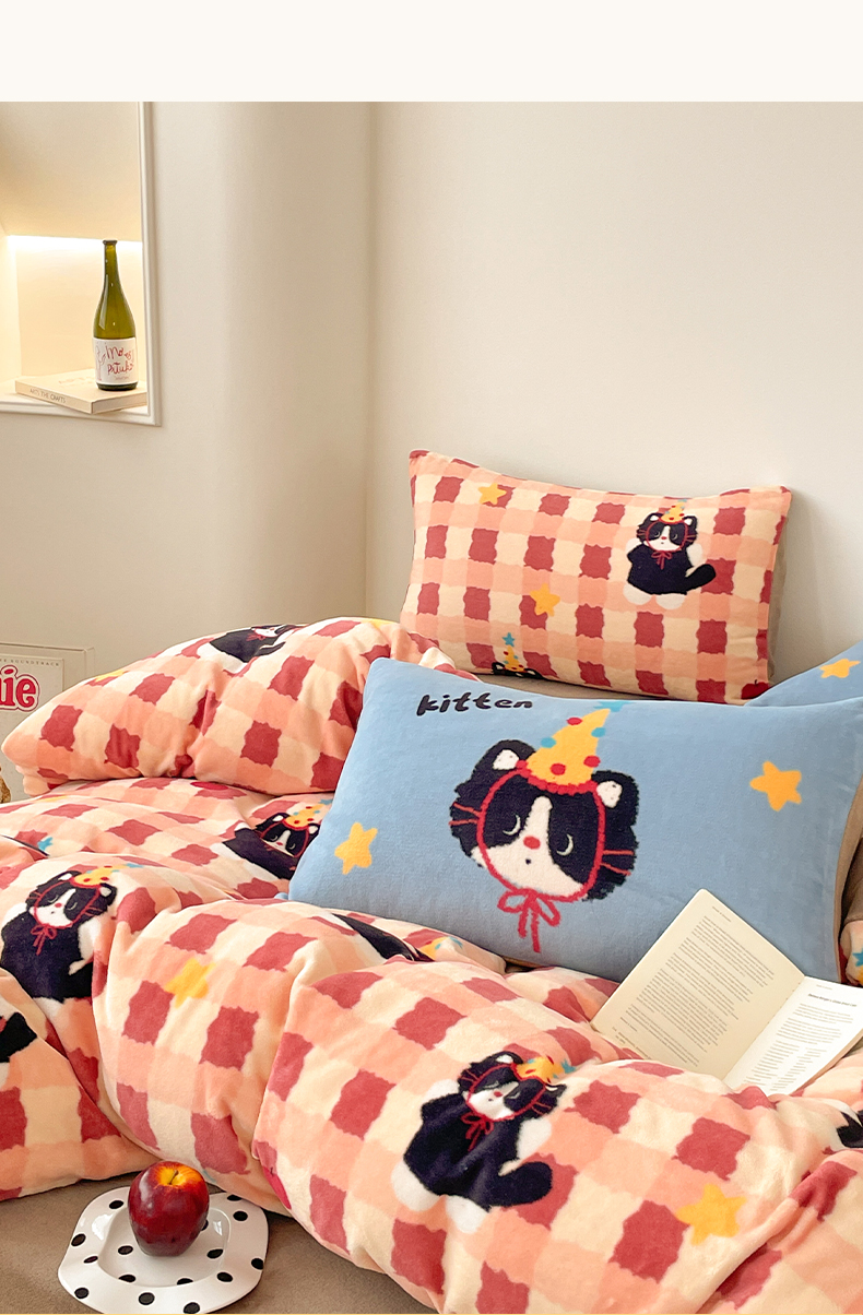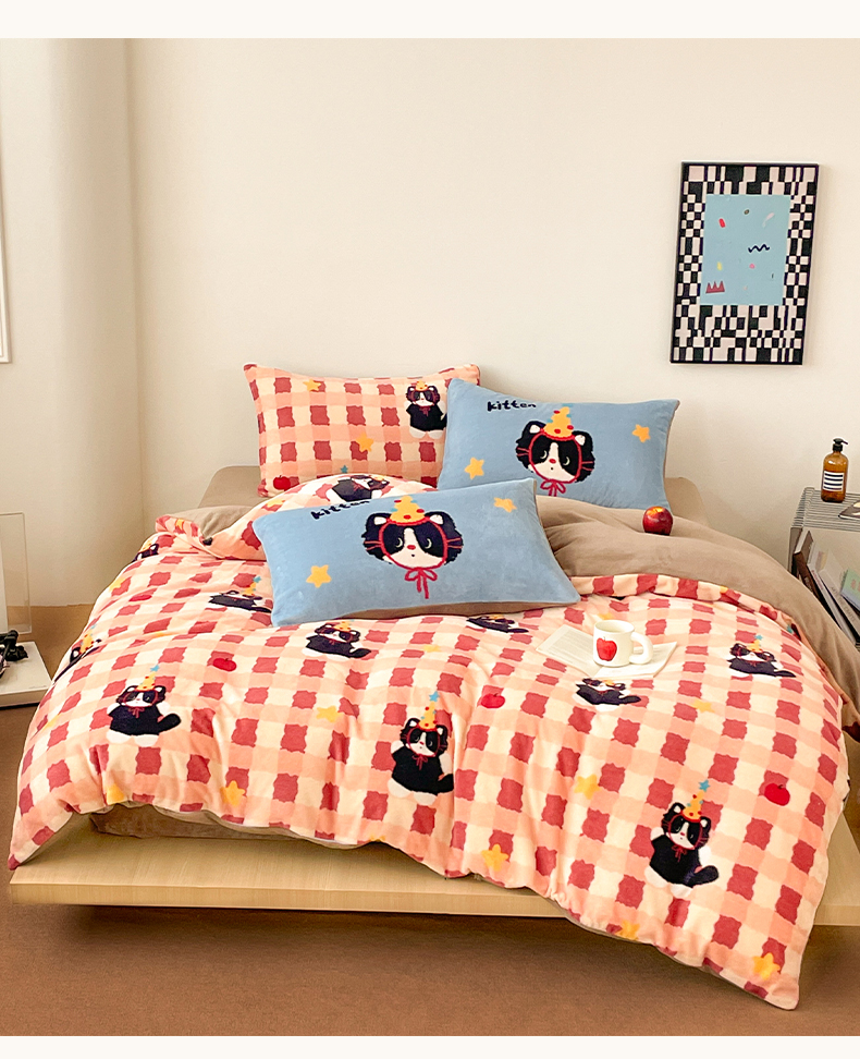 当前位置: 91家纺网 > 商品网购 > 床品套件 > 四件套 > 牛奶绒四件套 > 摩妮卡 2025新款牛奶绒枕套混搭卡通复古四件套 生日小猫