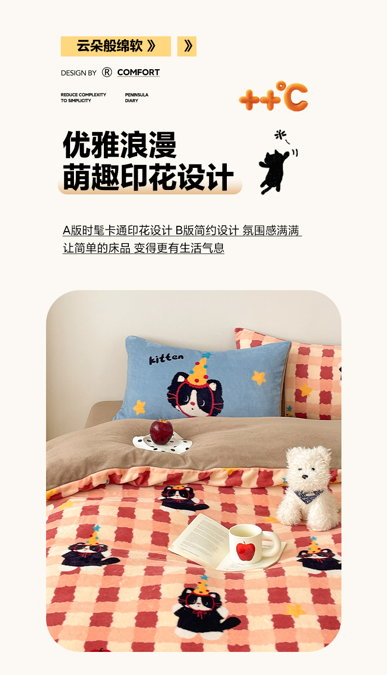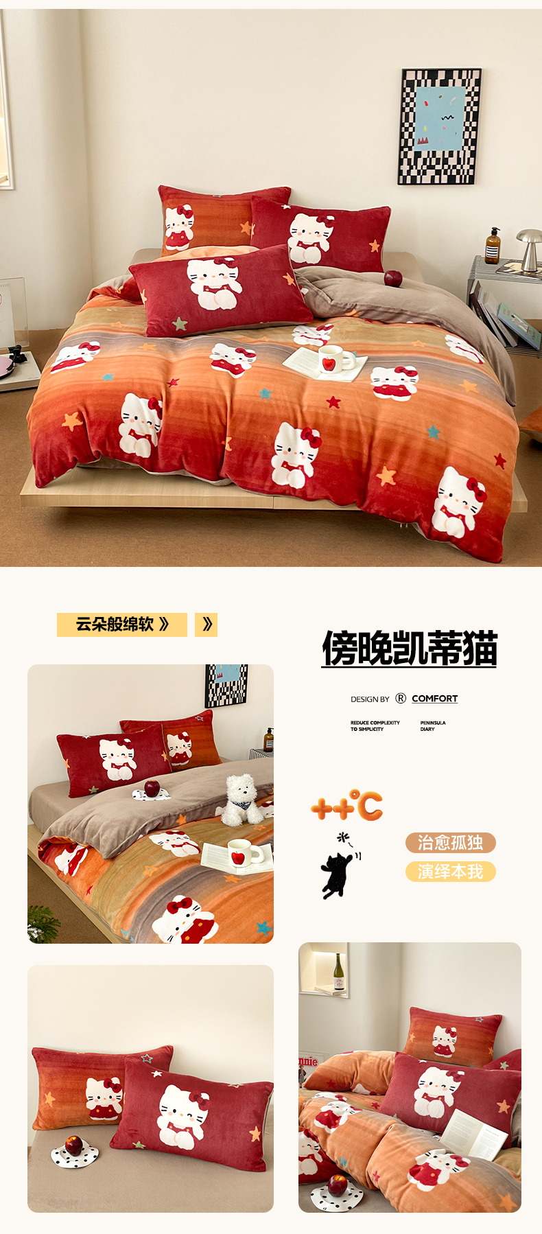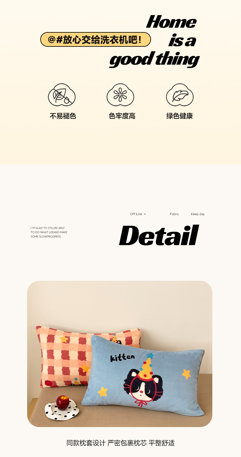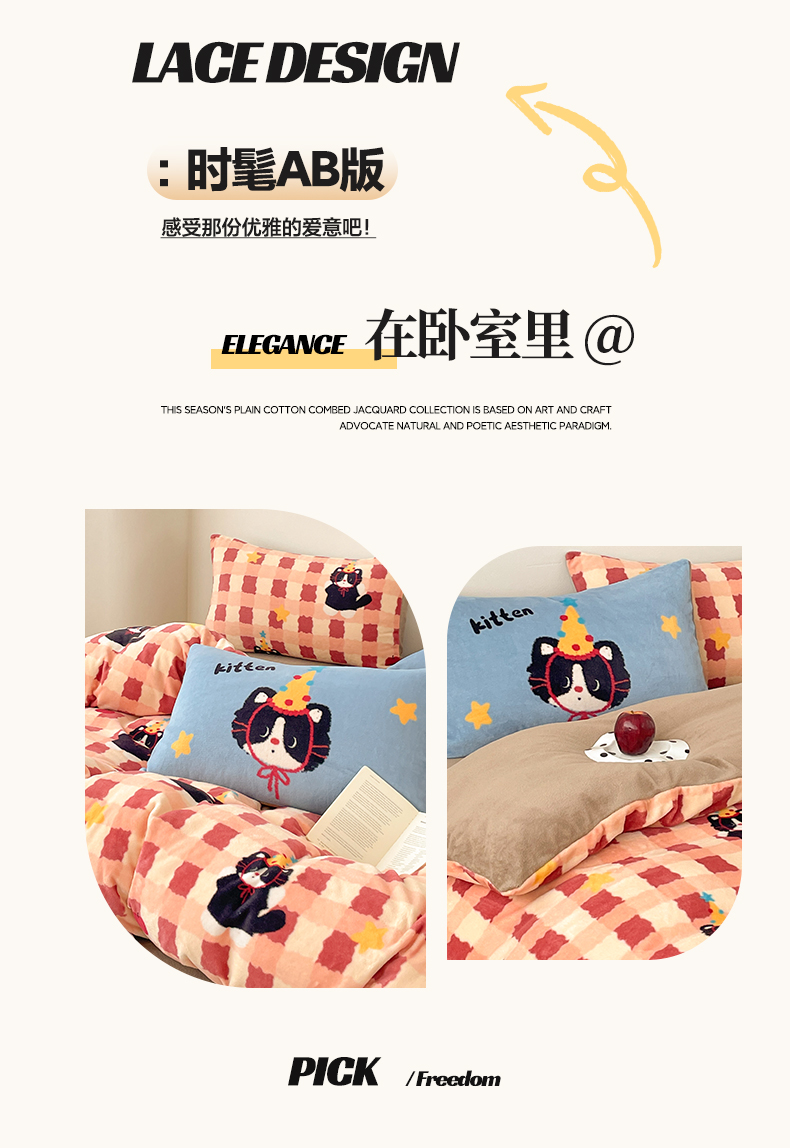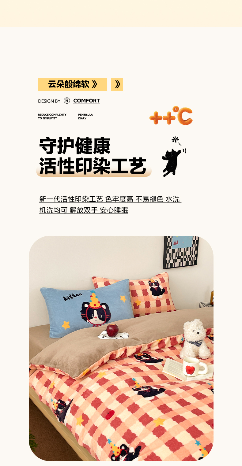 当前位置: 91家纺网 > 商品网购 > 床品套件 > 四件套 > 牛奶绒四件套 > 摩妮卡 2025新款牛奶绒枕套混搭卡通复古四件套 生日小猫