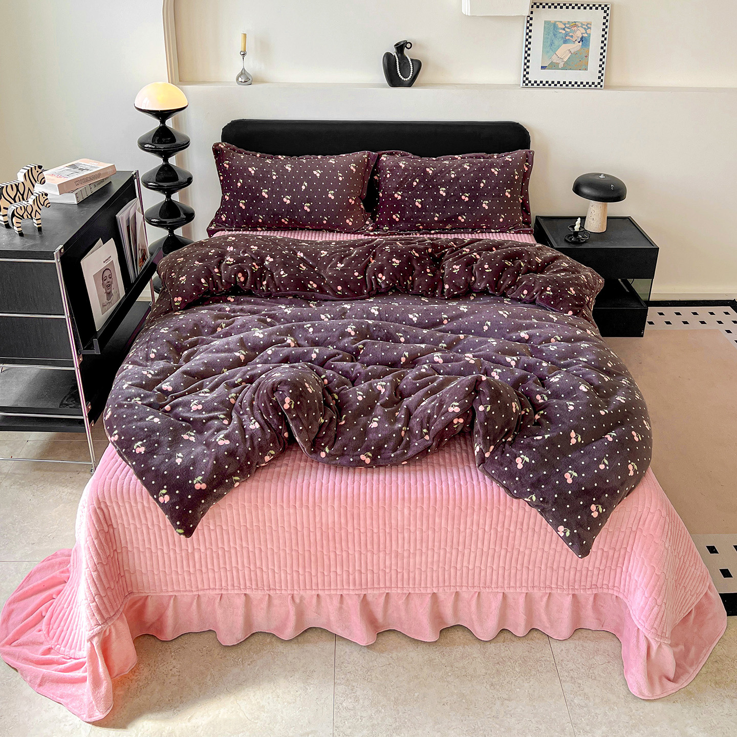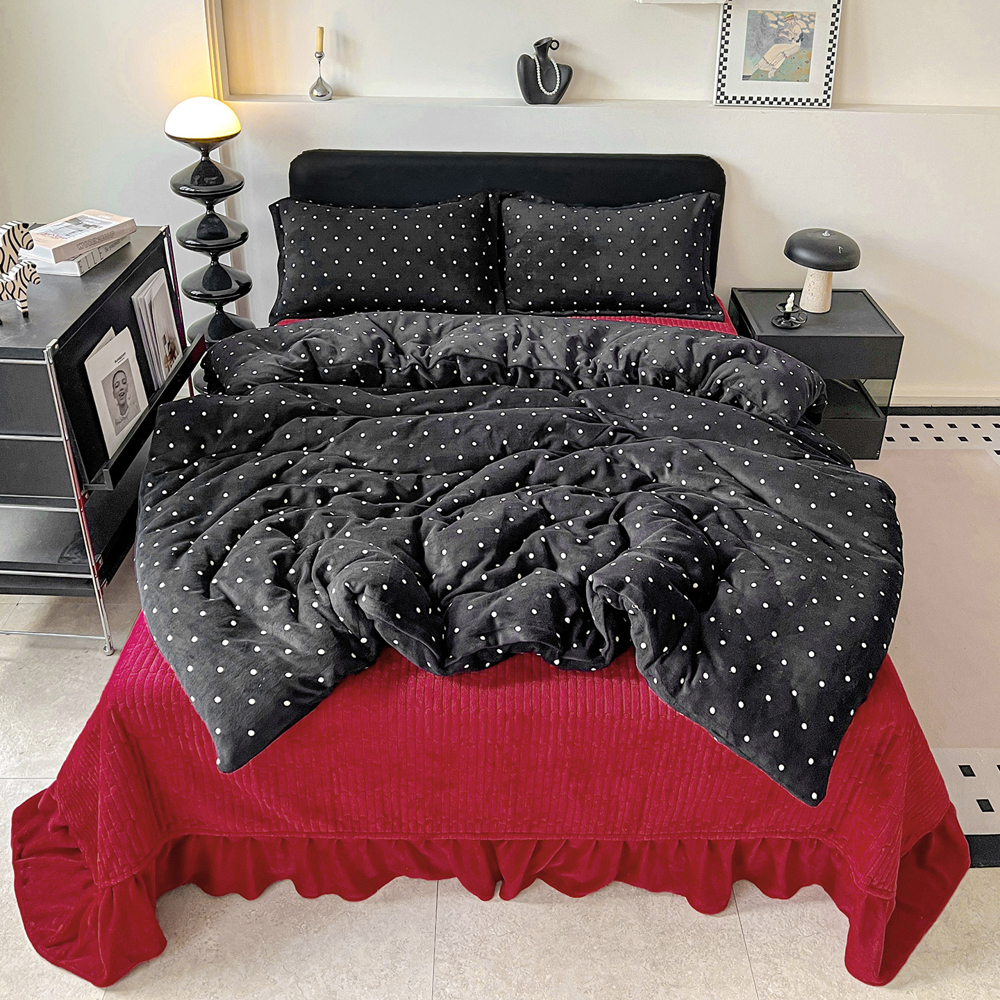 (总)梦莱斯 2025新款加厚保暖双面牛奶绒四件套-黑色花边款,爱丽丝花园,爱心点点,暗香,布偶兔兔,彩虹波点,春不晚,蝶舞,繁花,粉红蝴蝶结,粉色猫,格子爱心咖,格子猫,格子樱桃,黑巧樱桃,黑糖珍珠,蝴蝶结,花里梦,快乐女孩,玫瑰之约 - 白,玫瑰之约 - 黑,米亚,桃之夭夭,心动-灰,心动-紫,紫花萌境