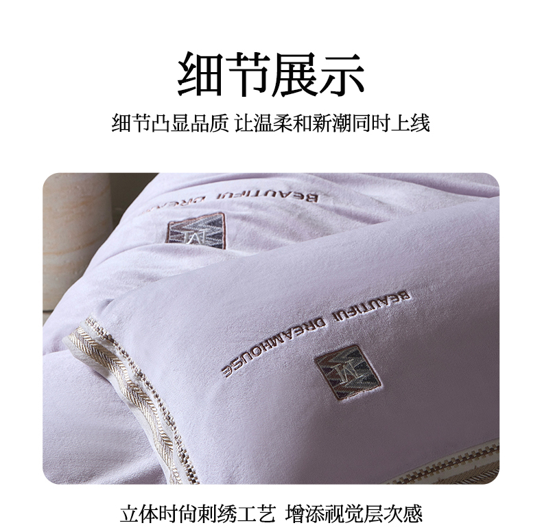 优悦生活馆 2025新款纯色高克重牛奶绒刺绣四件套-理享家 理享家-紫