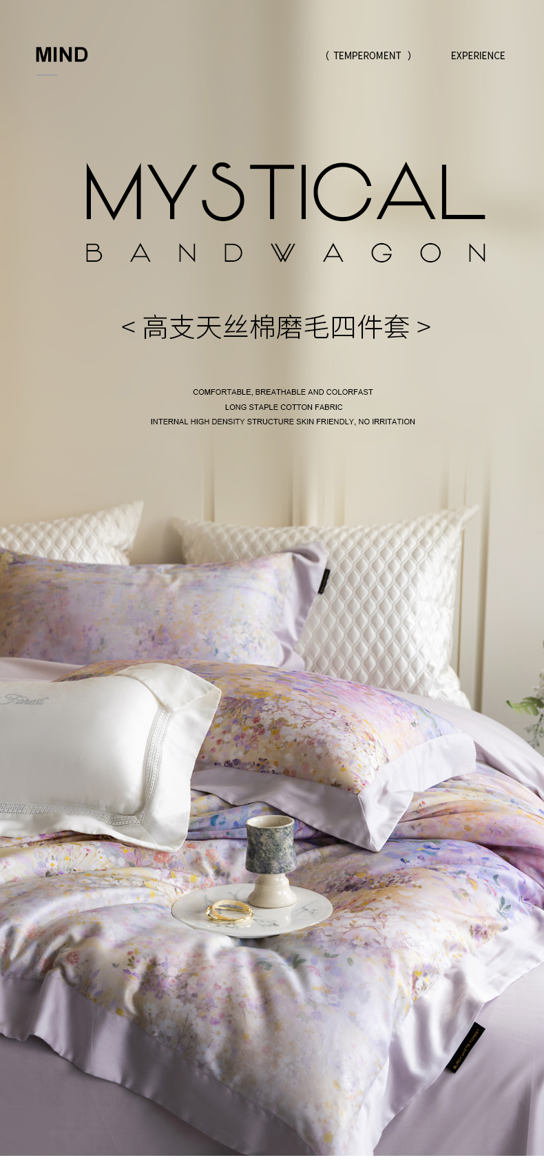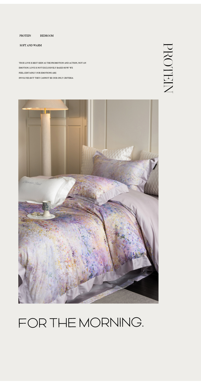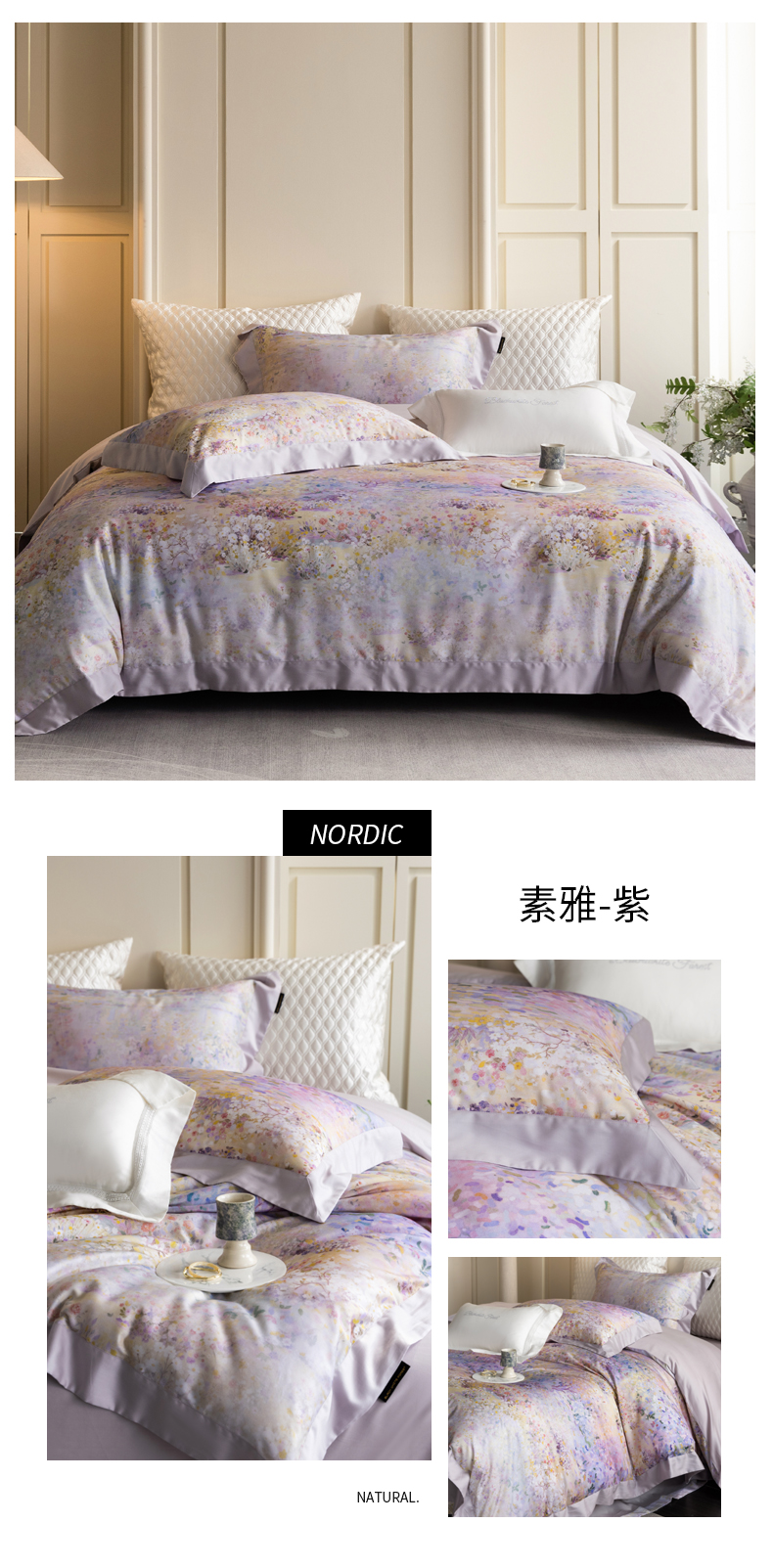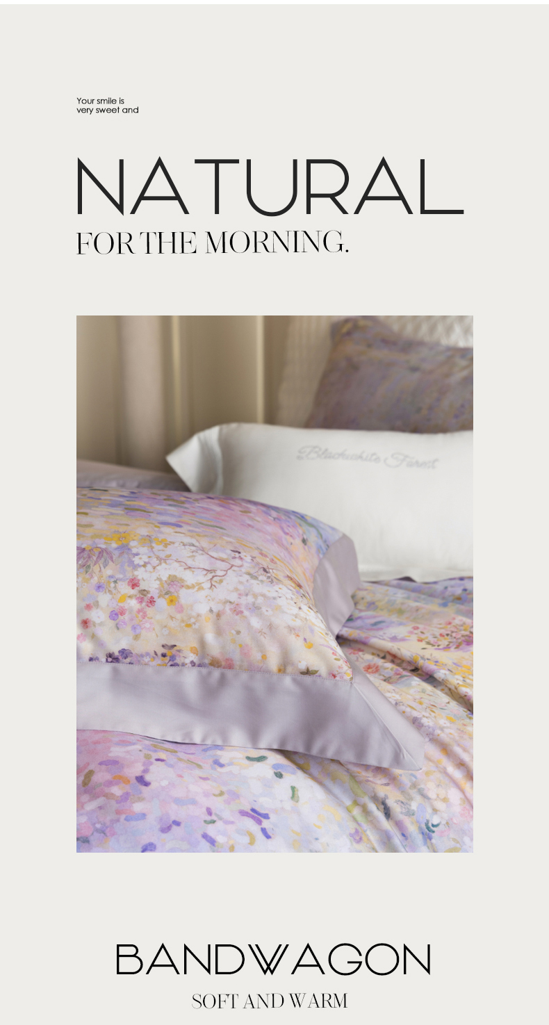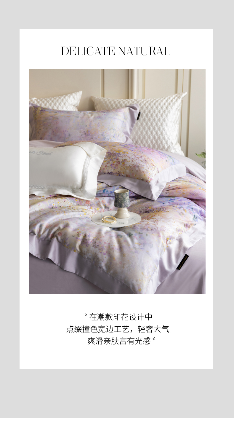 商品名称:黑白森林 2025新款高支天丝棉磨毛数码印花四件套 素雅-紫