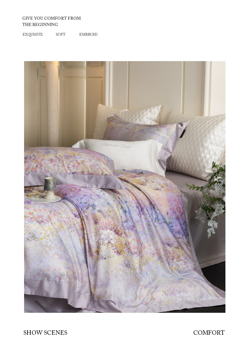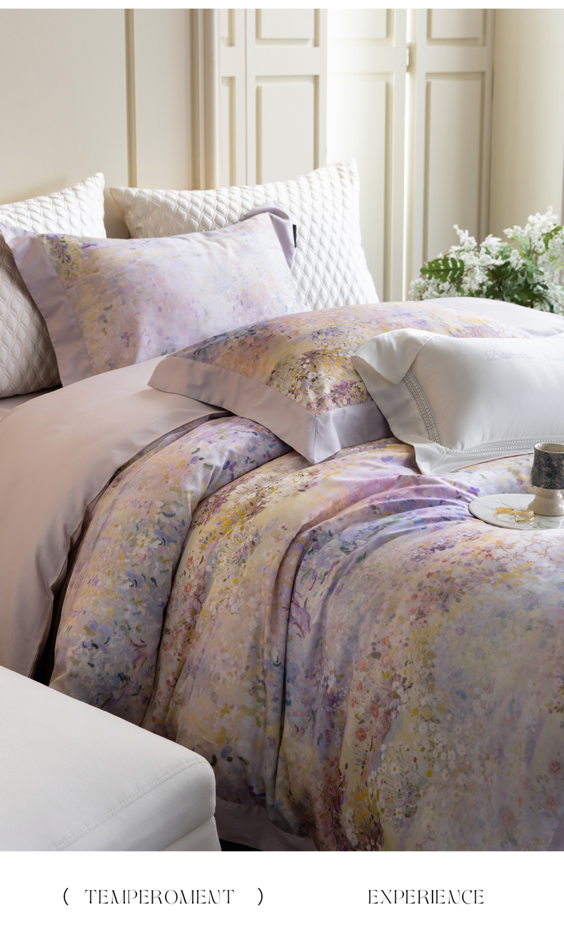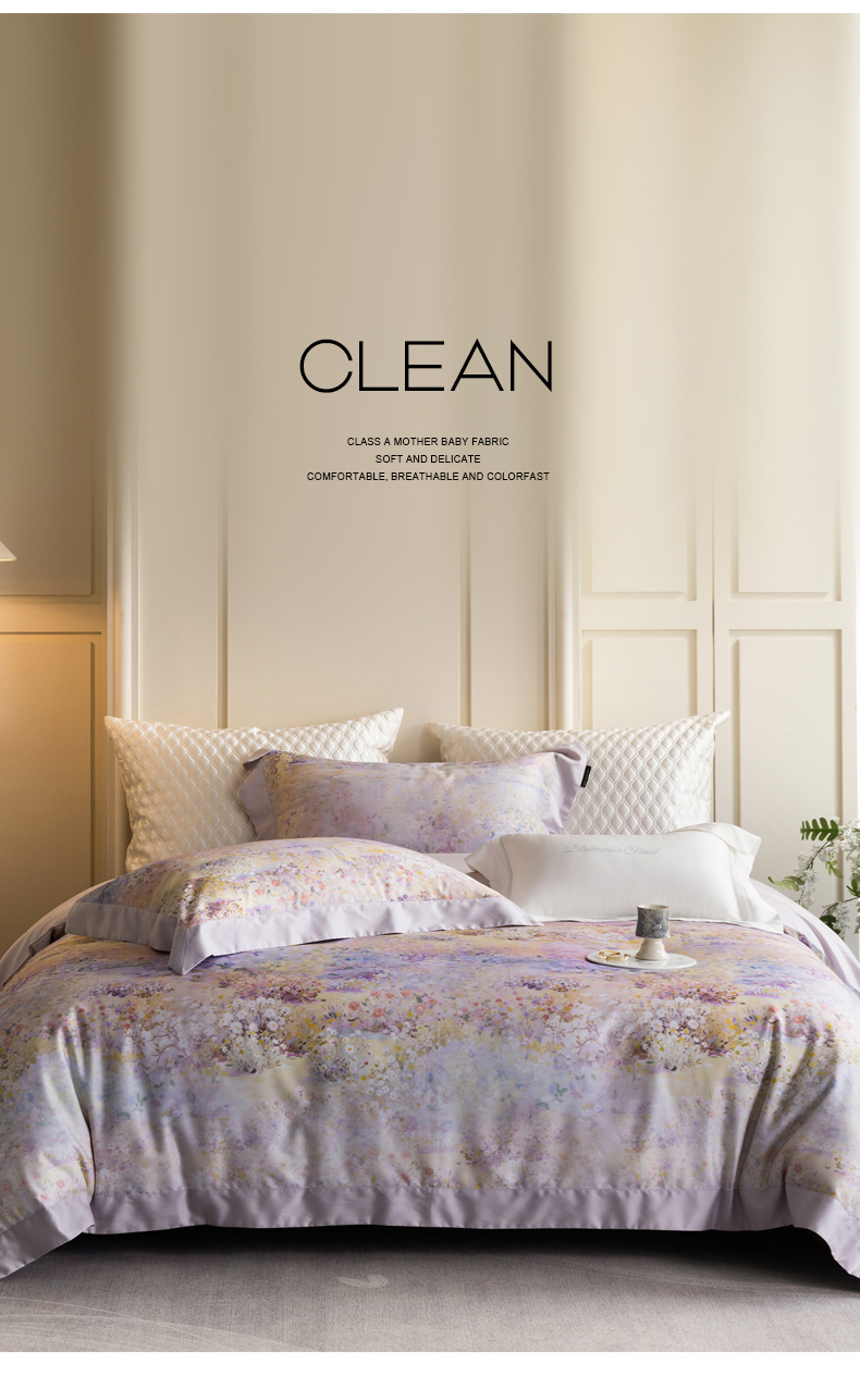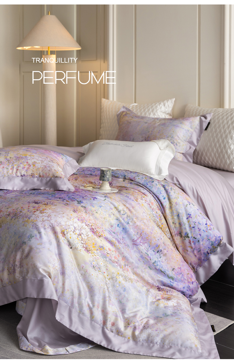 黑白森林 2025新款高支天丝棉磨毛数码印花四件套 素雅-紫