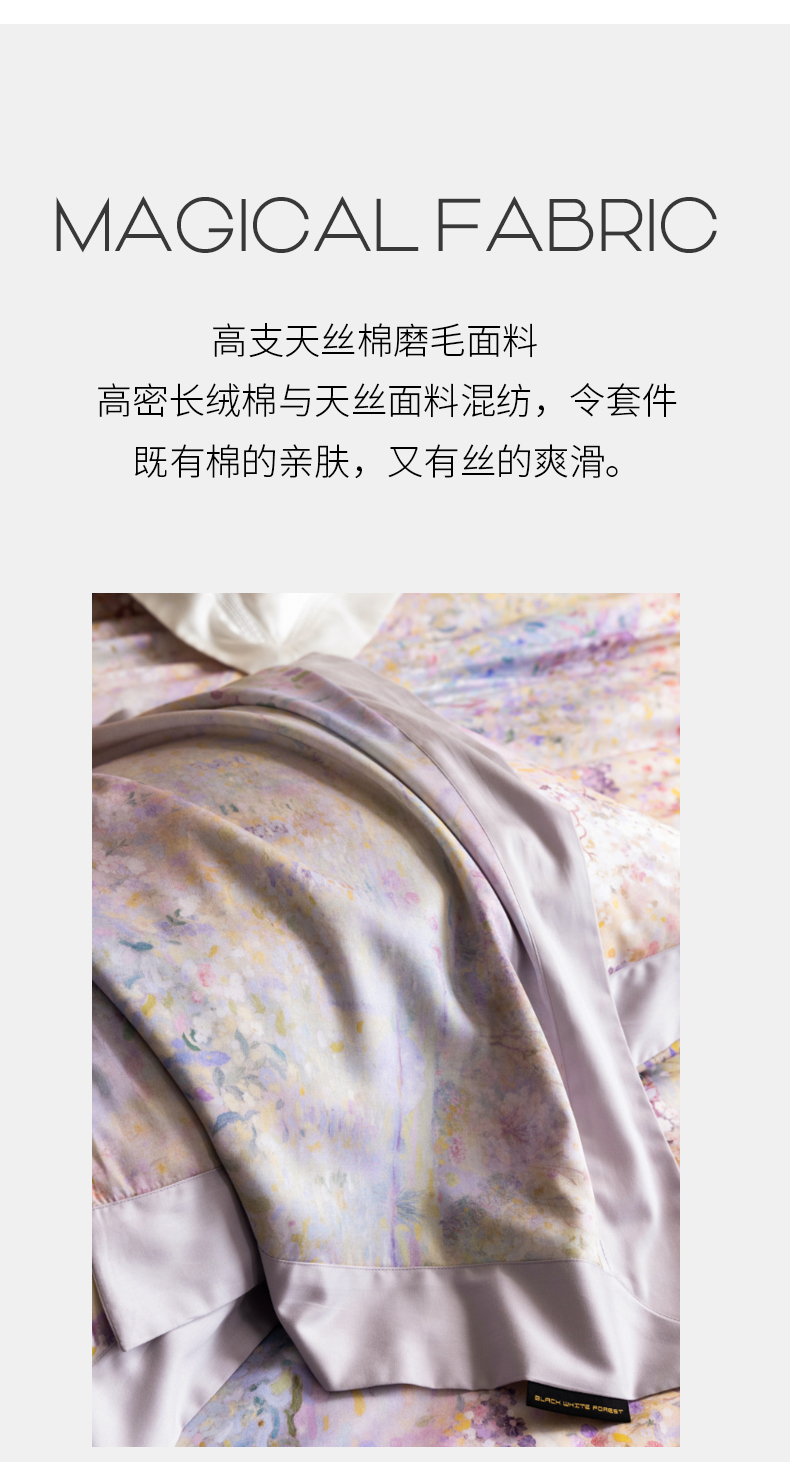 黑白森林2024款 60S支兰精天丝数码印花四件套,朝颜,木槿,玉茗,春浅,京墨,半夏,丹若,繁缕,青黛,德琳-粉,德琳-绿,蒂娜-灰,蒂娜-紫,慧莉-粉,慧莉-绿,欧瑞,夏夜