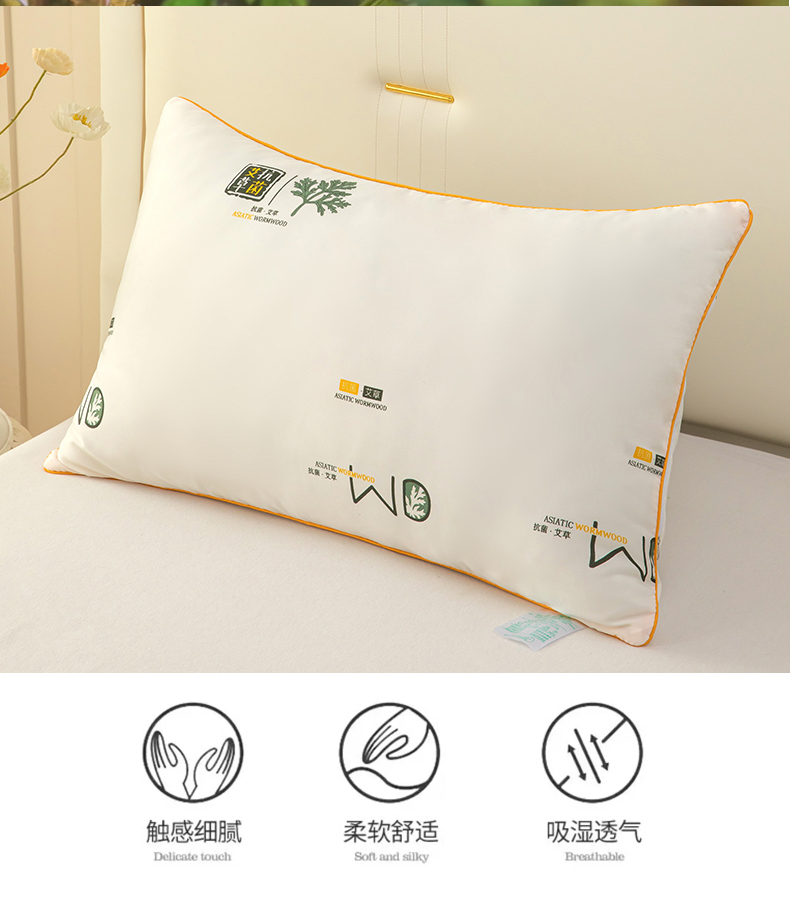 奕宸居 2025新款艾草眠眠抗菌枕头枕芯 米白,米白