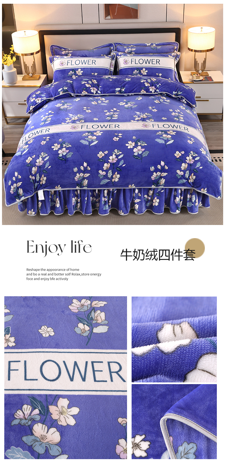 商品名称:栩裕纺织 2025新款230高克重牛奶绒法莱绒印花四件套-直播热款8斤半 萌兔