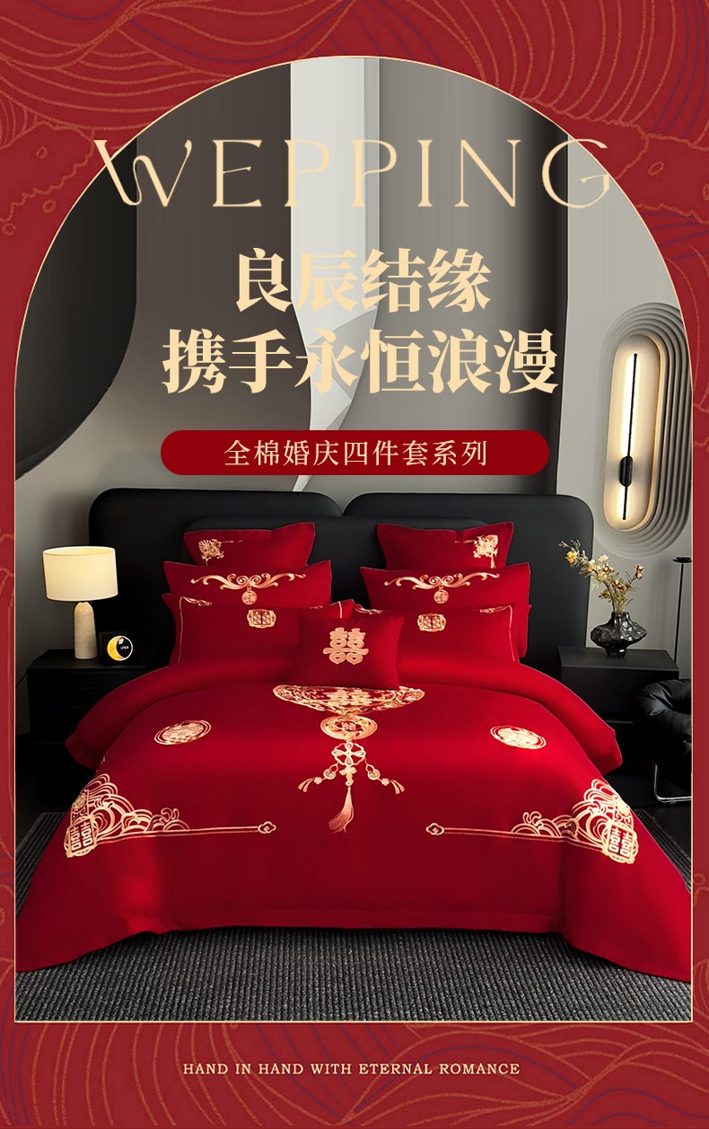 (总)娇伊诗婚庆 2025新款刺绣工艺全棉婚庆四件套系列,爱情故事,喜结良缘,福满姻缘,幸福美满金,龙凤贺喜,幸福美满红,龙章凤姿