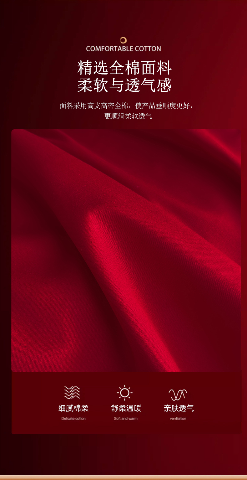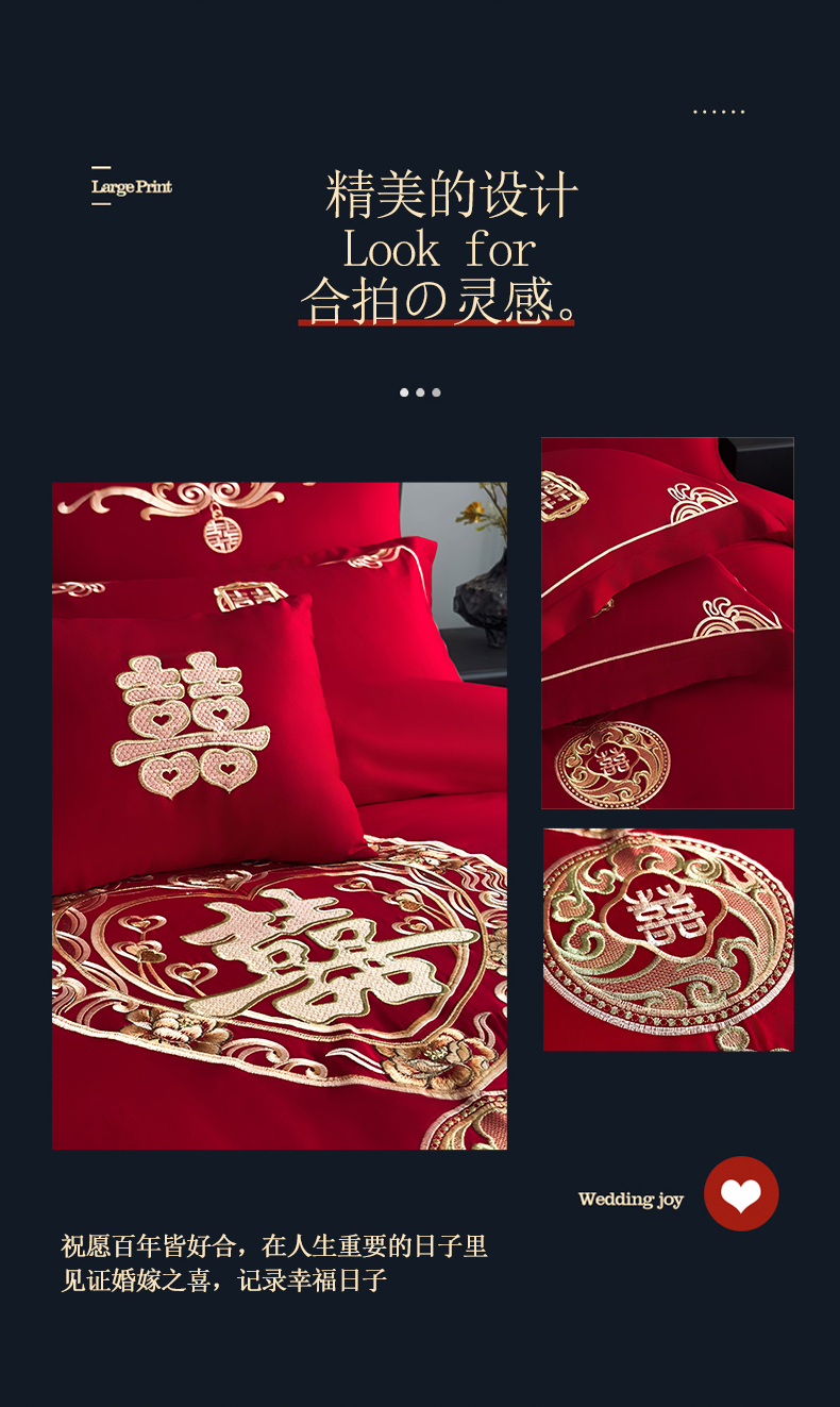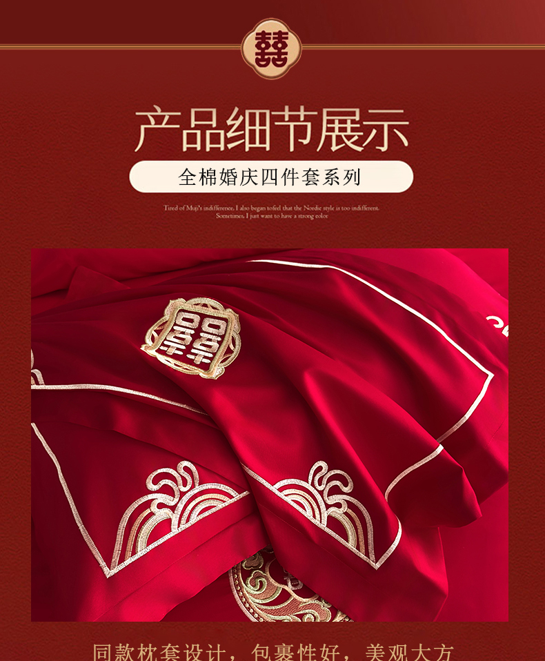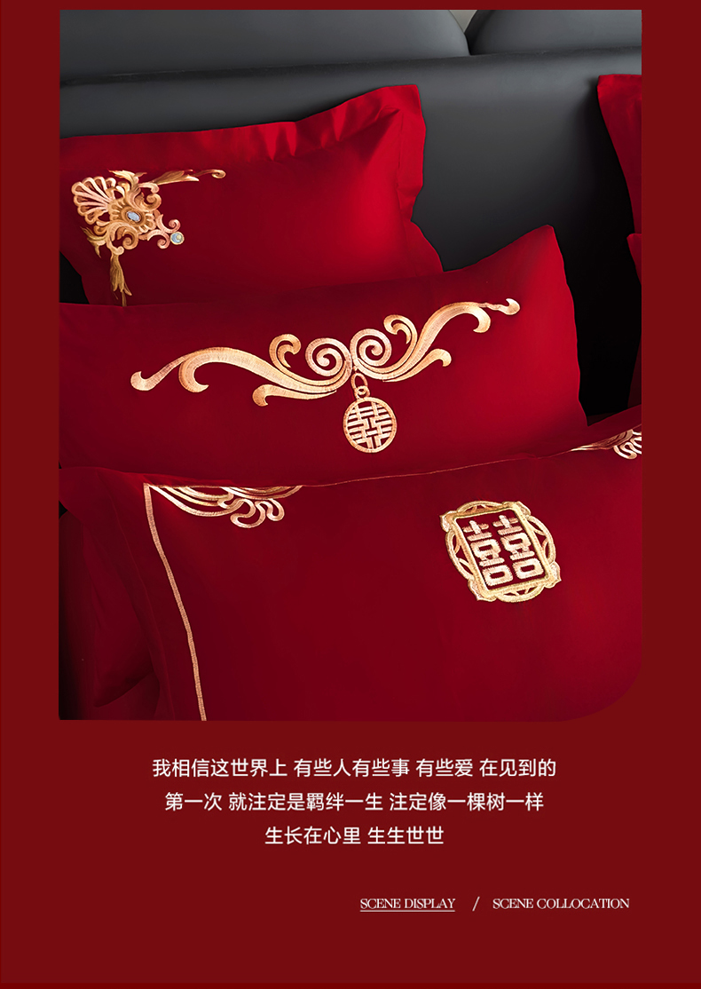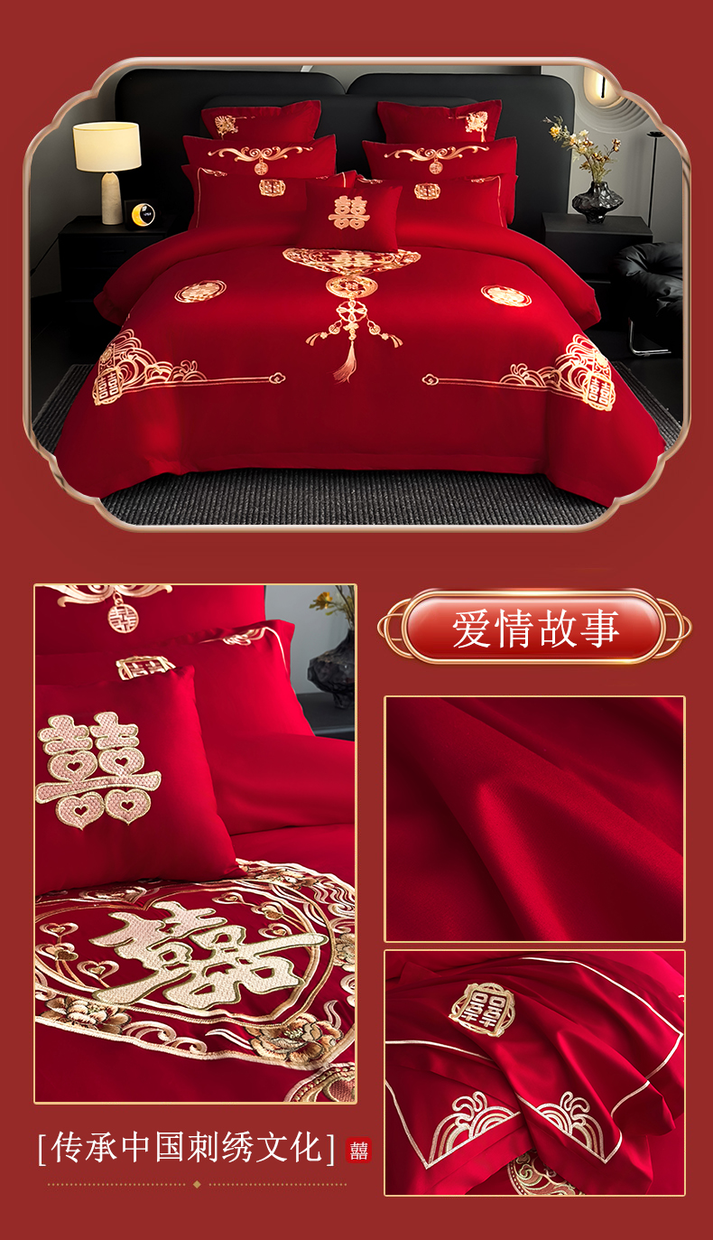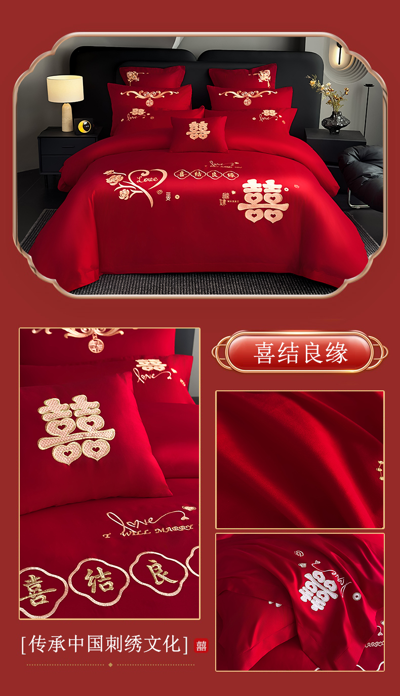 娇伊诗婚庆 2025新款刺绣工艺全棉婚庆四件套系列 幸福美满红,幸福美满红