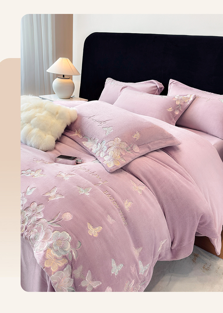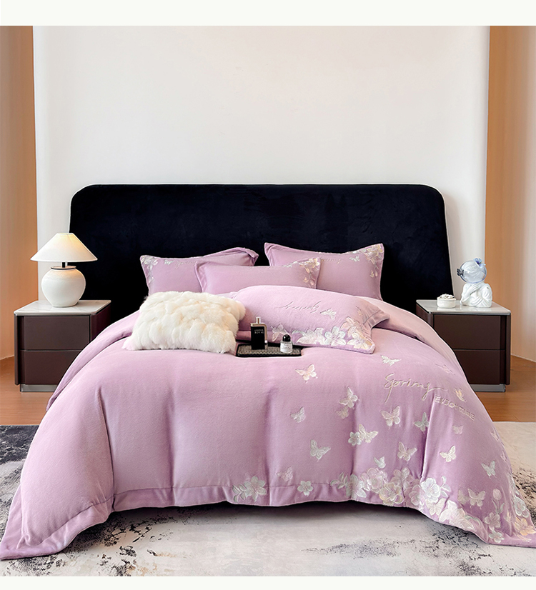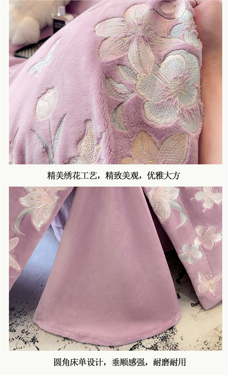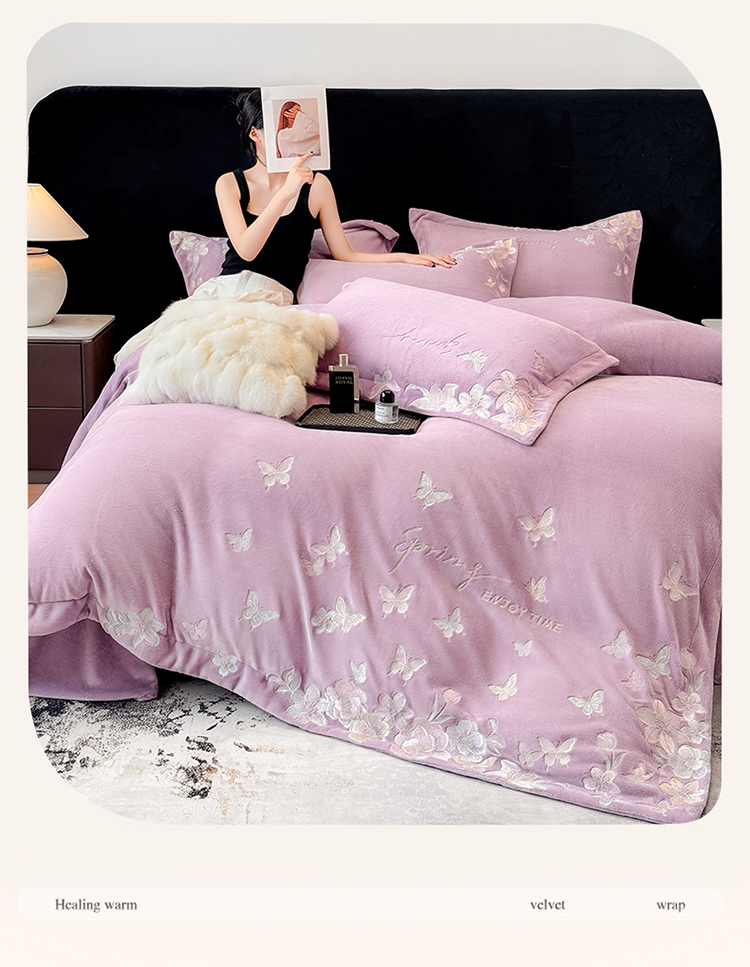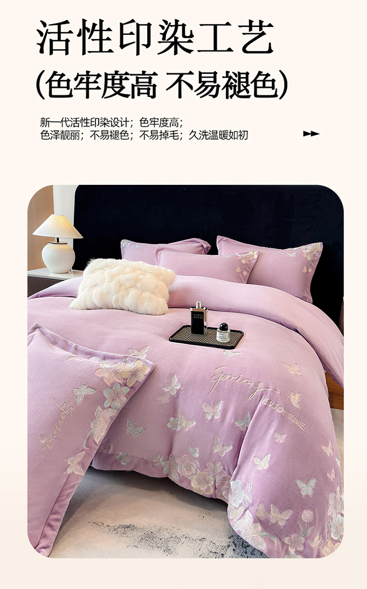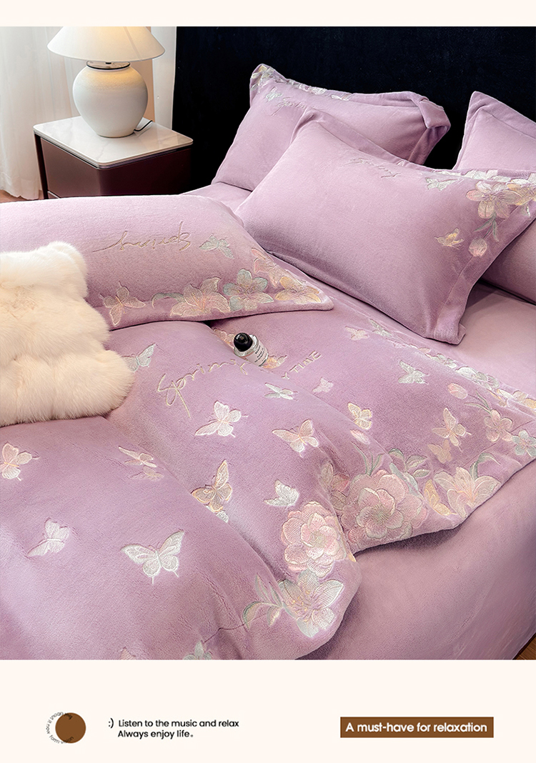 当前位置: 91家纺网 > 商品网购 > 床品套件 > 四件套 > 牛奶绒四件套 > 高档手提包9斤重超厚绵密慕斯有肌氧绒刺绣四件套秋冬加厚保暖牛奶绒宝宝绒床上用品 豆沙紫-绒蝶屿-A类绵密慕斯有肌氧绒