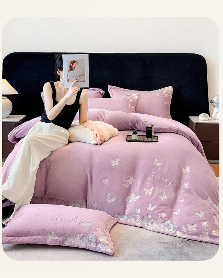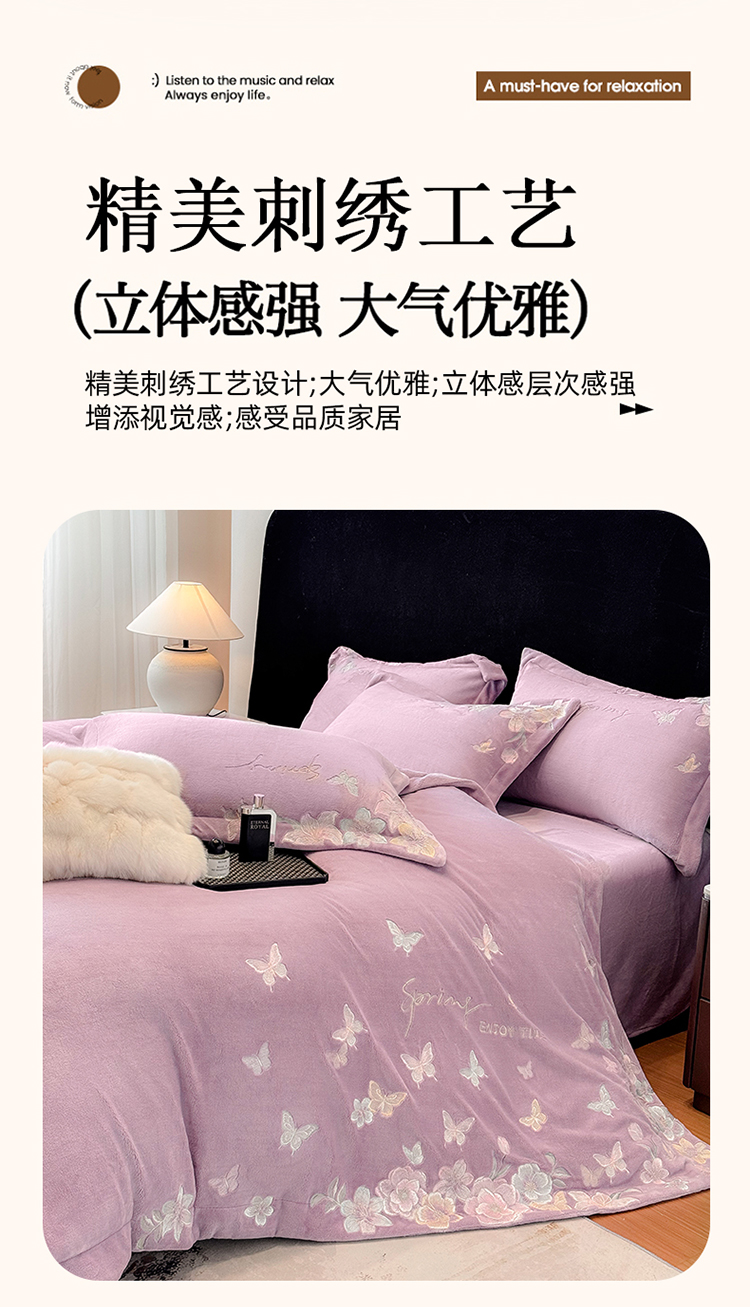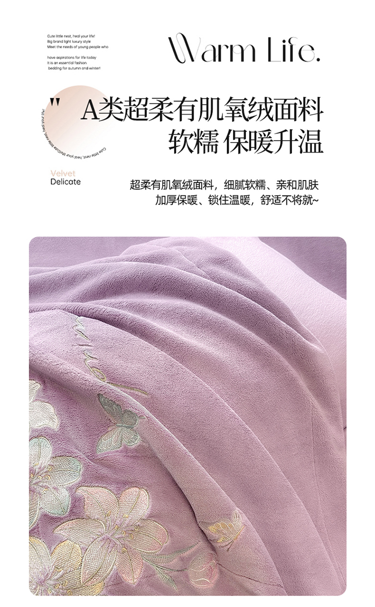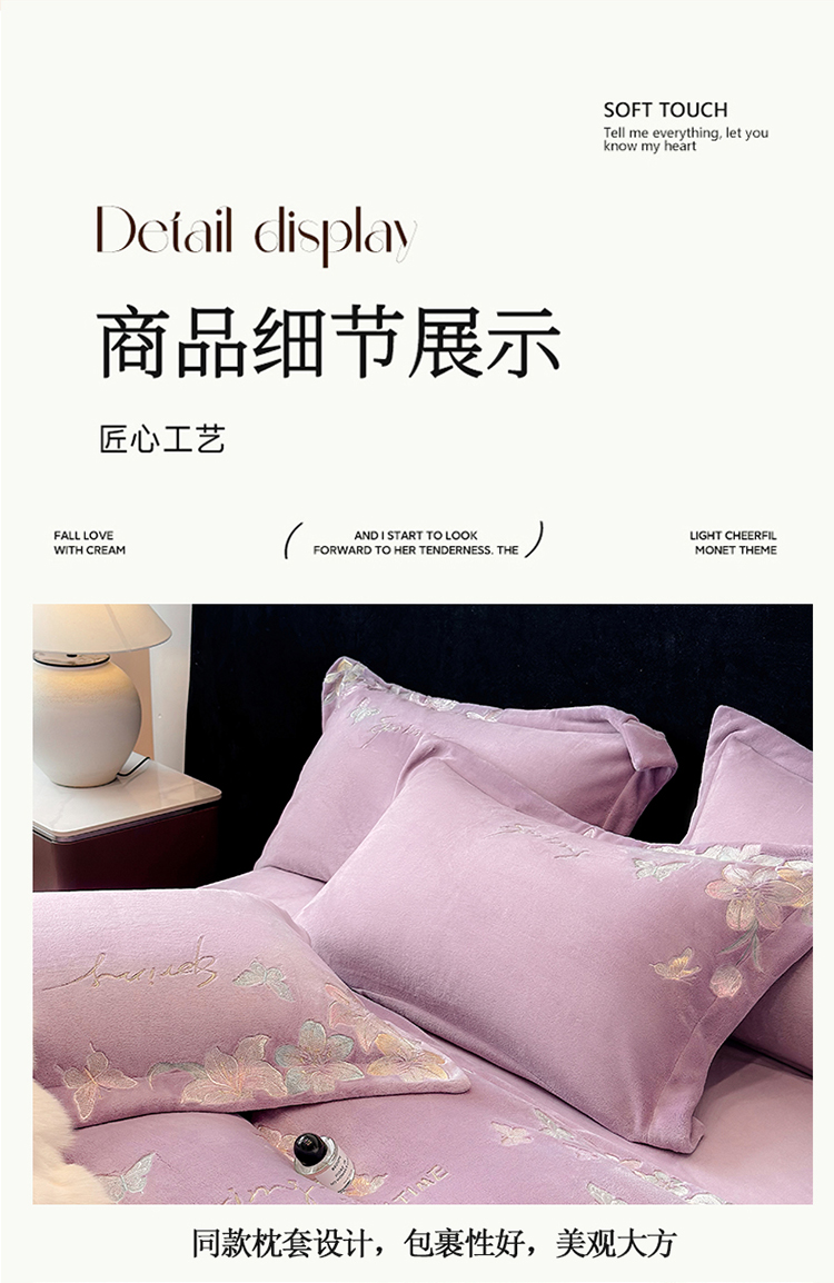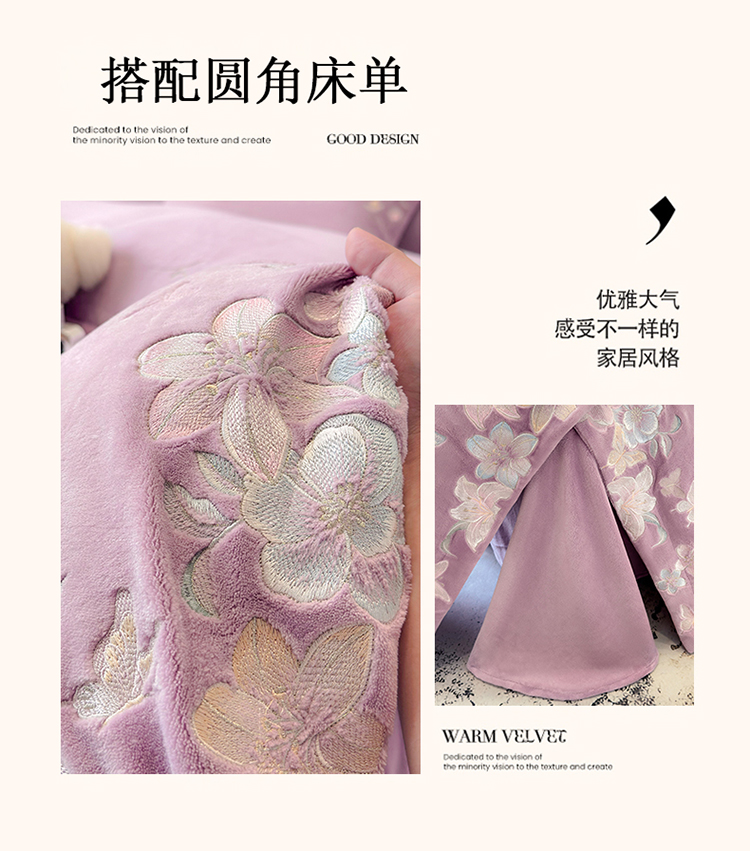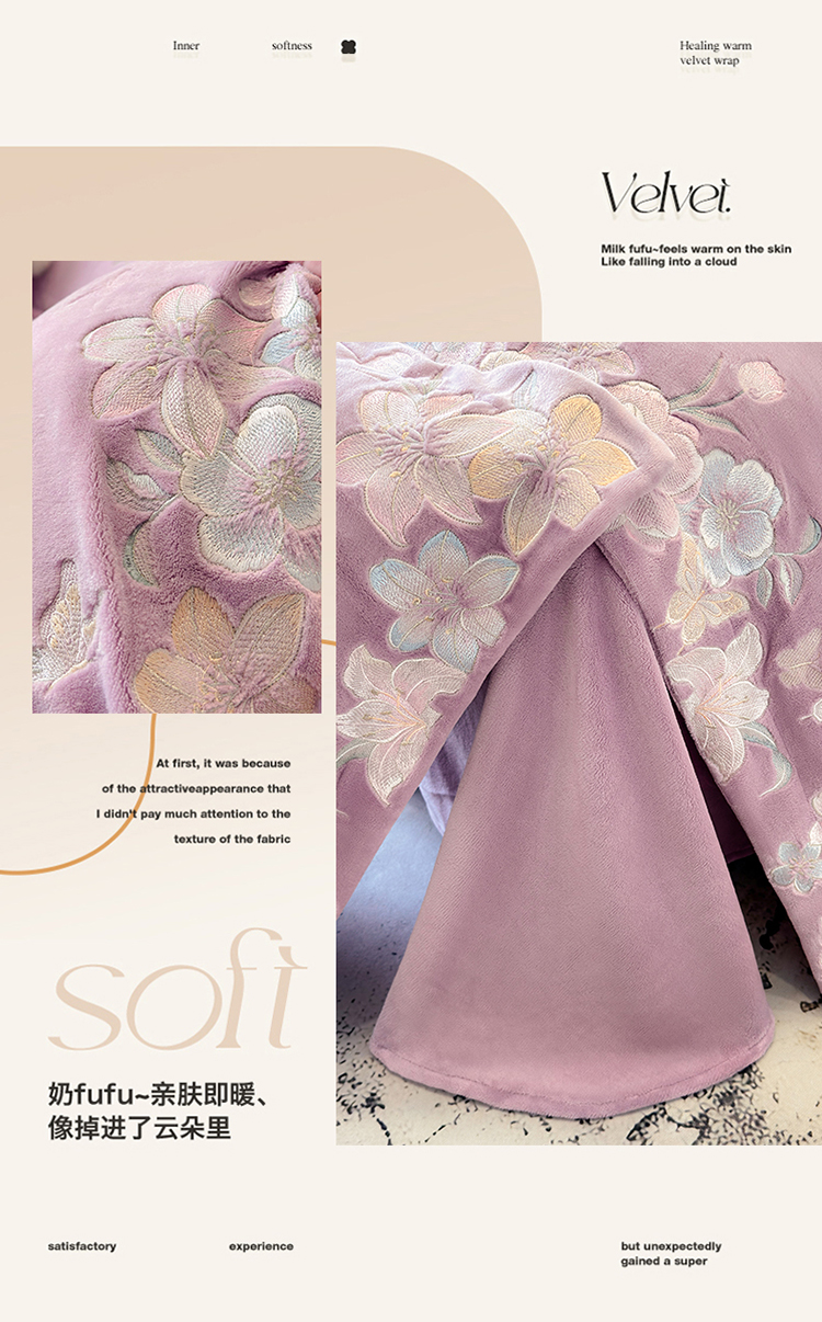 当前位置: 91家纺网 > 商品网购 > 床品套件 > 四件套 > 牛奶绒四件套 > 高档手提包9斤重超厚绵密慕斯有肌氧绒刺绣四件套秋冬加厚保暖牛奶绒宝宝绒床上用品 豆沙紫-绒蝶屿-A类绵密慕斯有肌氧绒